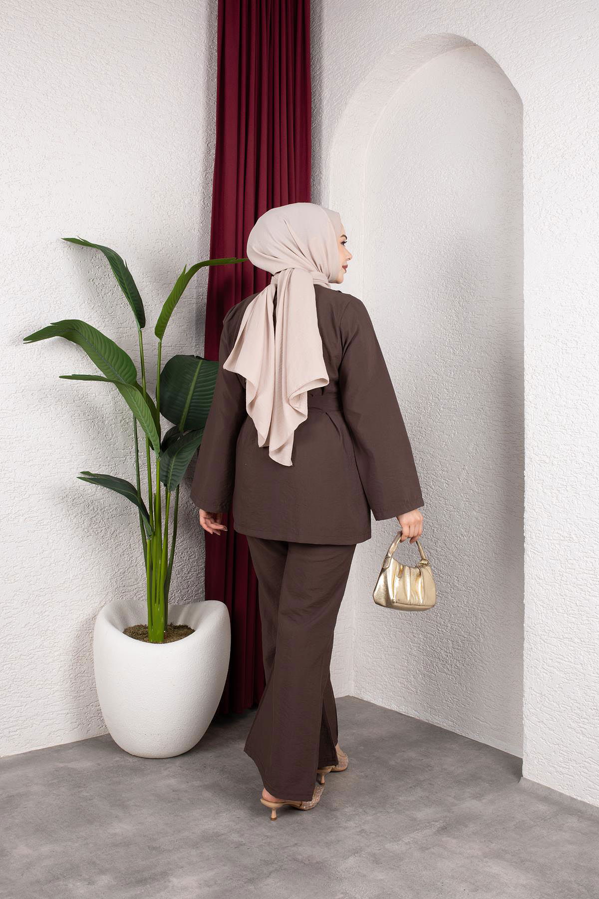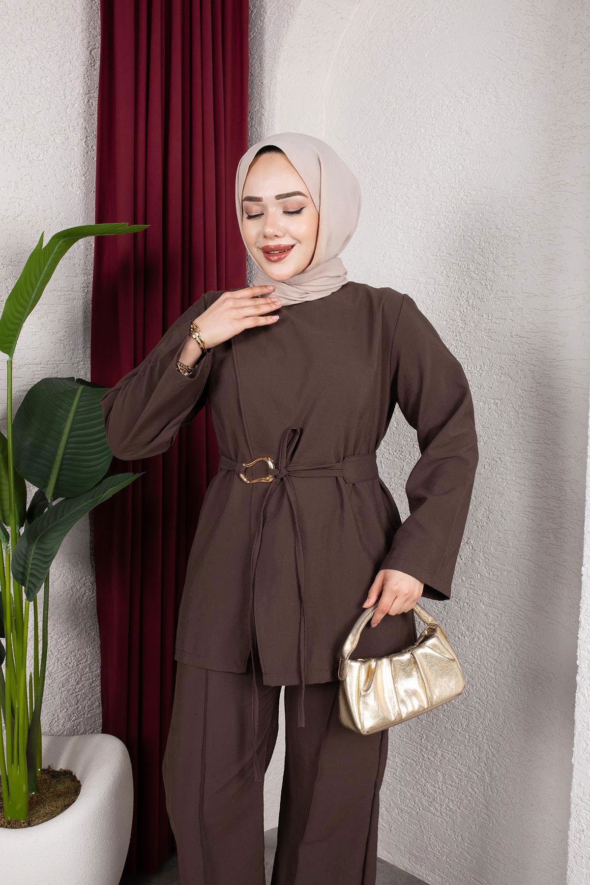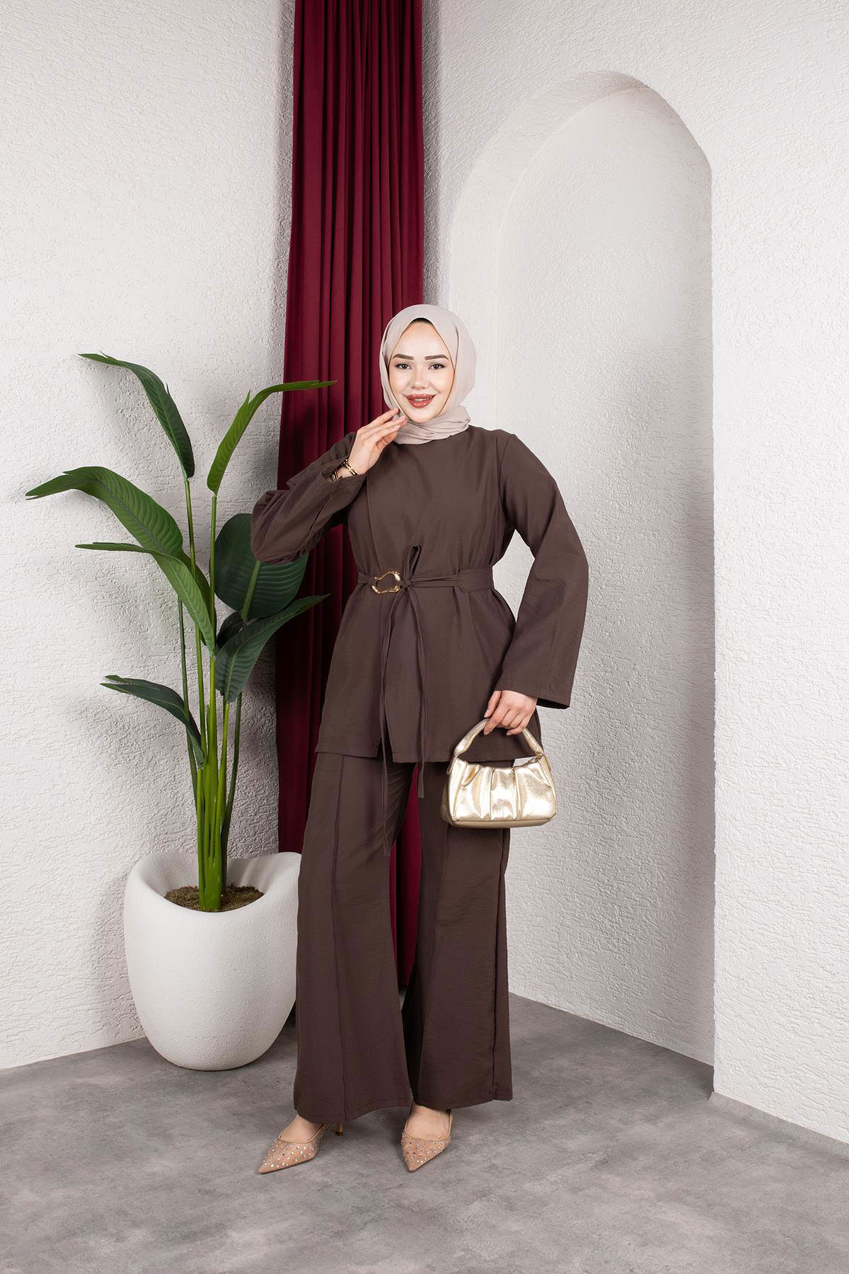 Asimetrik Kesim Kuşaklı İkili Takım- 8255 Kahve