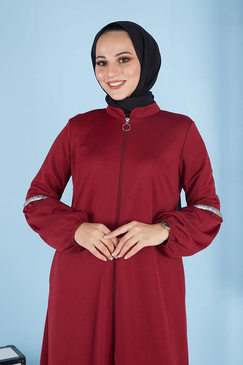 Balon Kol Sim Detaylı Ferace-3088 Bordo