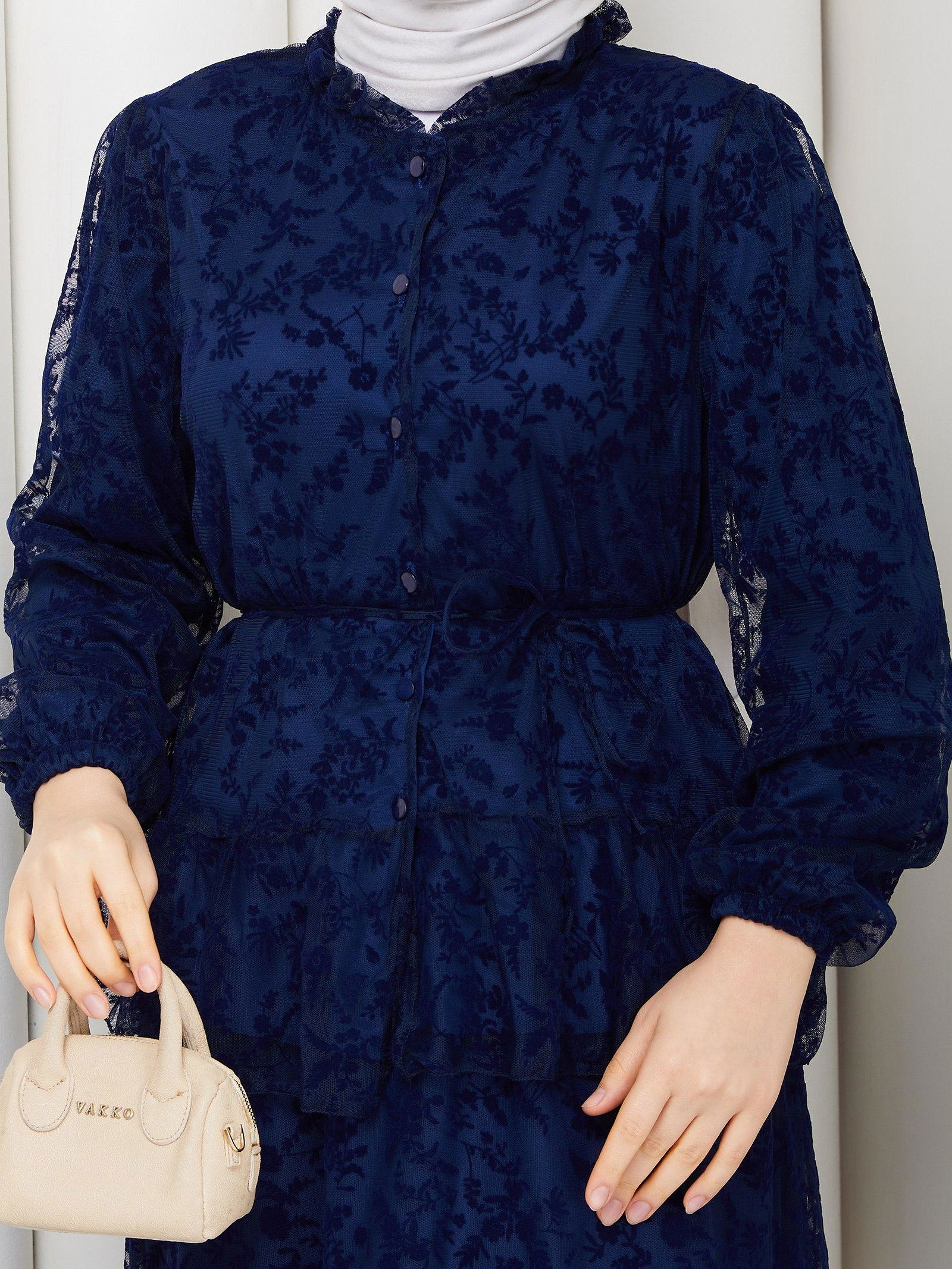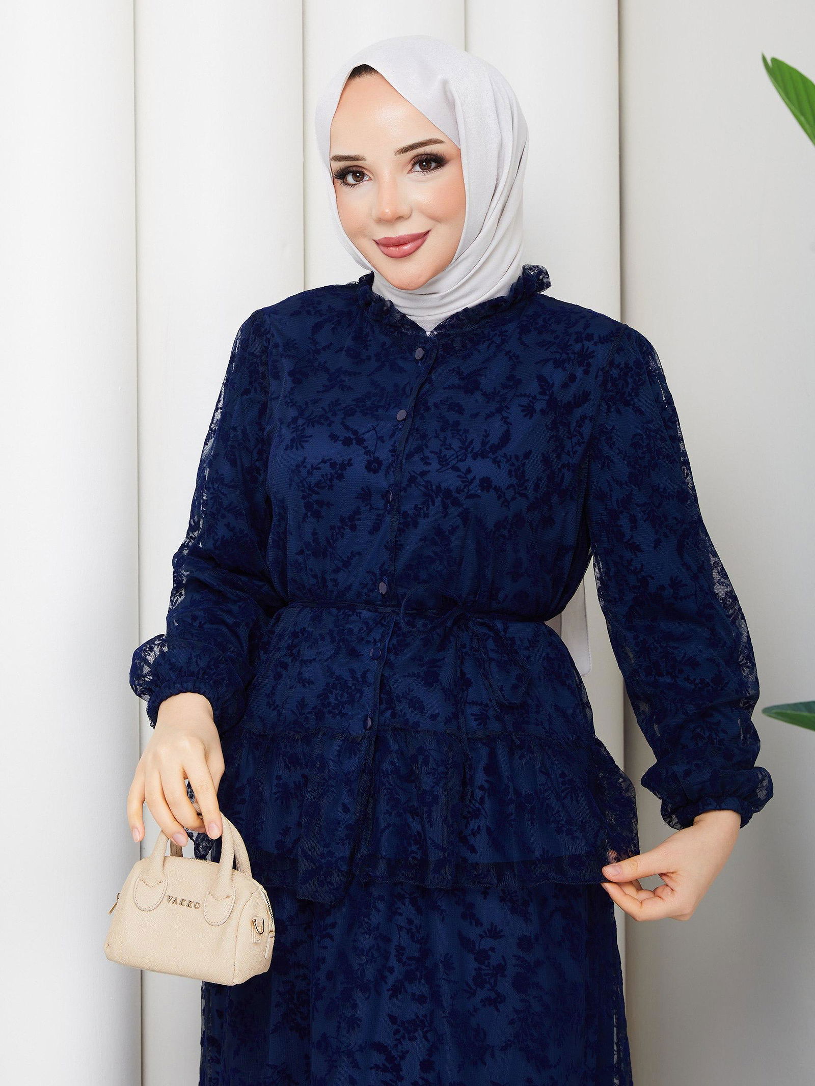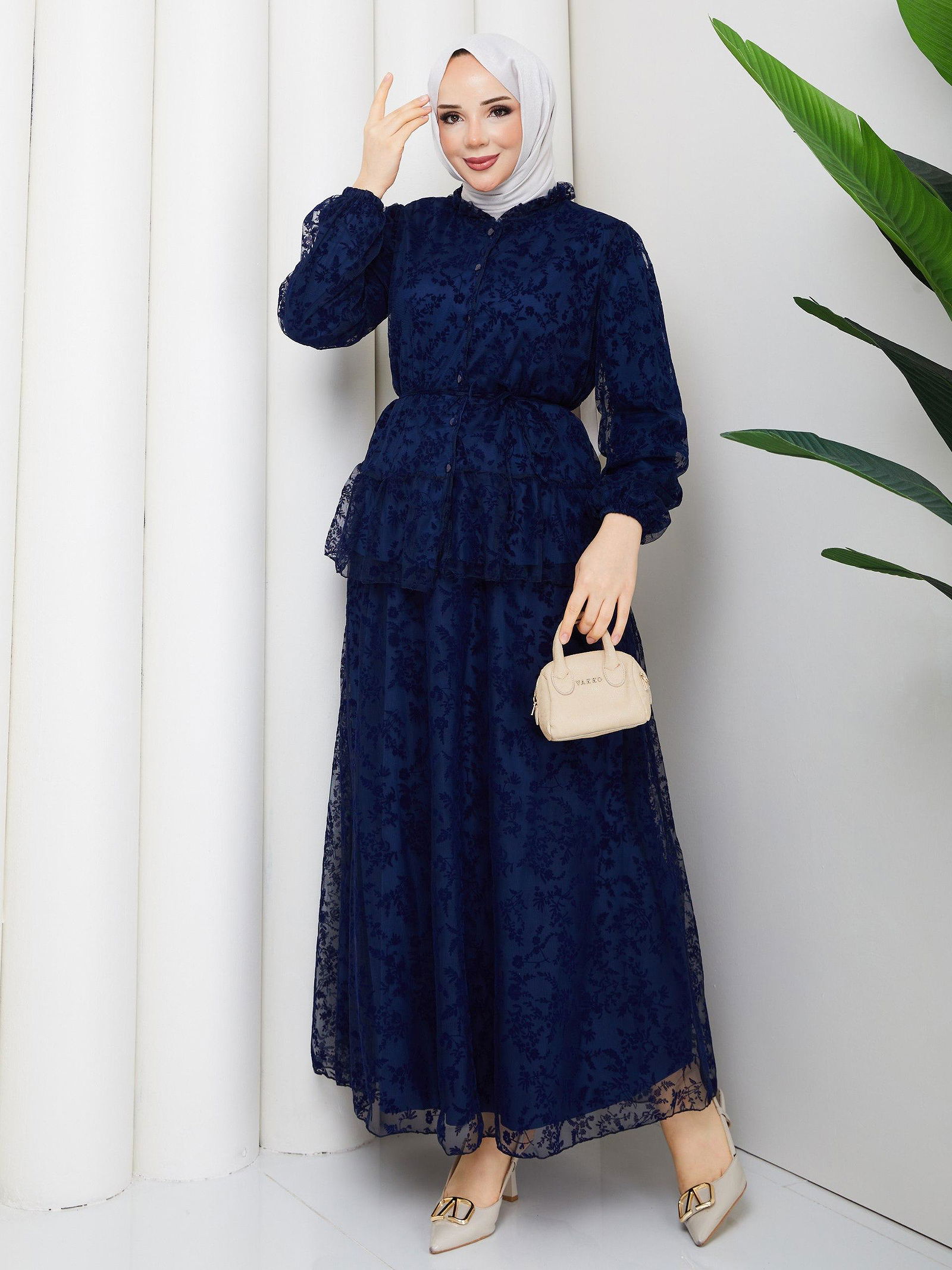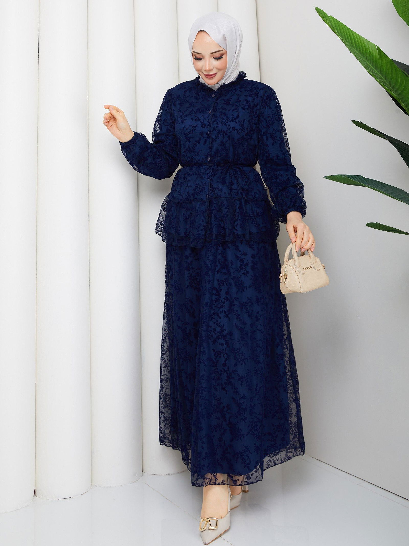 Baskı Detaylı Etekli İkili Takım-5100 Lacivert