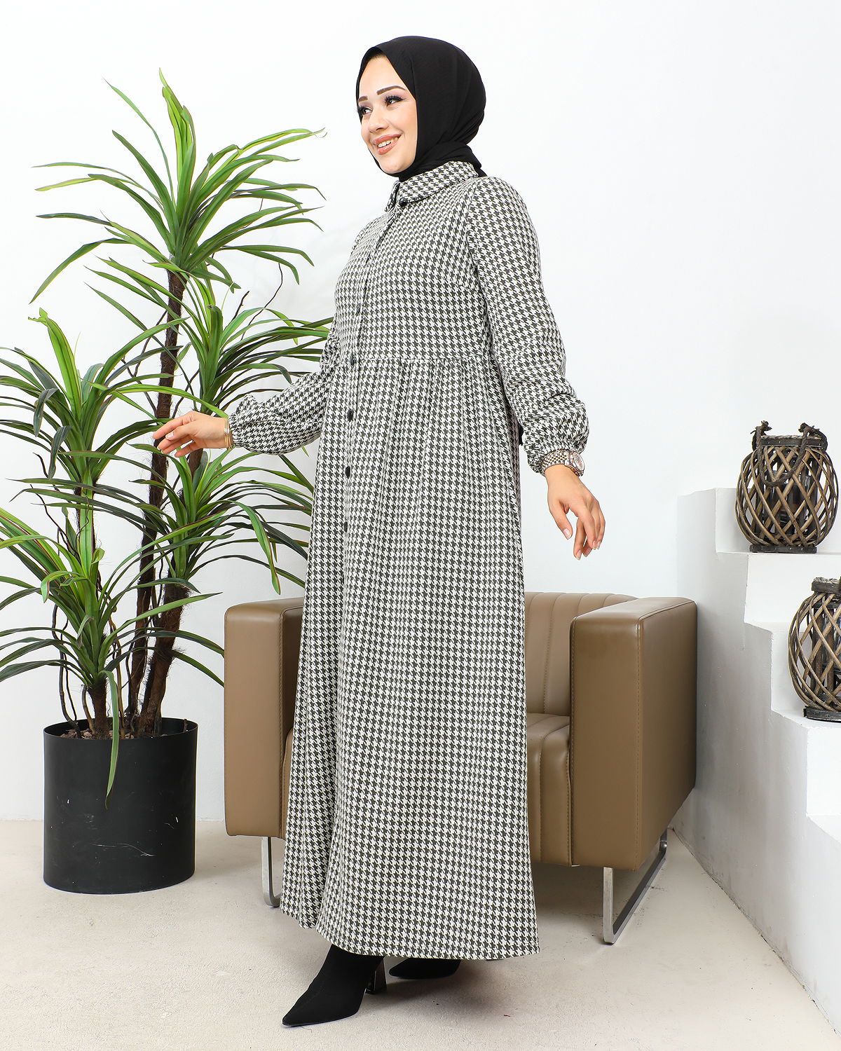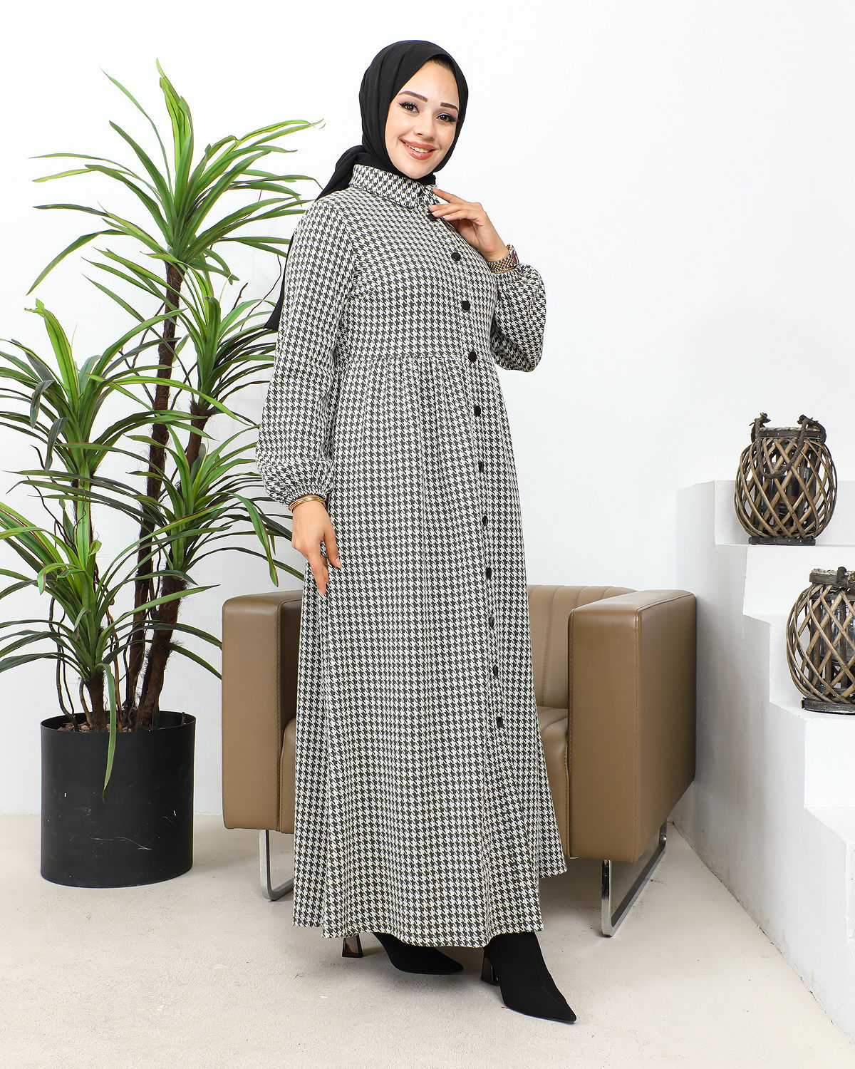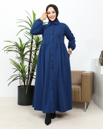 Bebe Yaka Cepli Tesettür Elbise-3166 Haki yeşili
