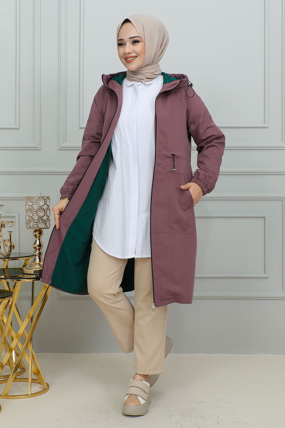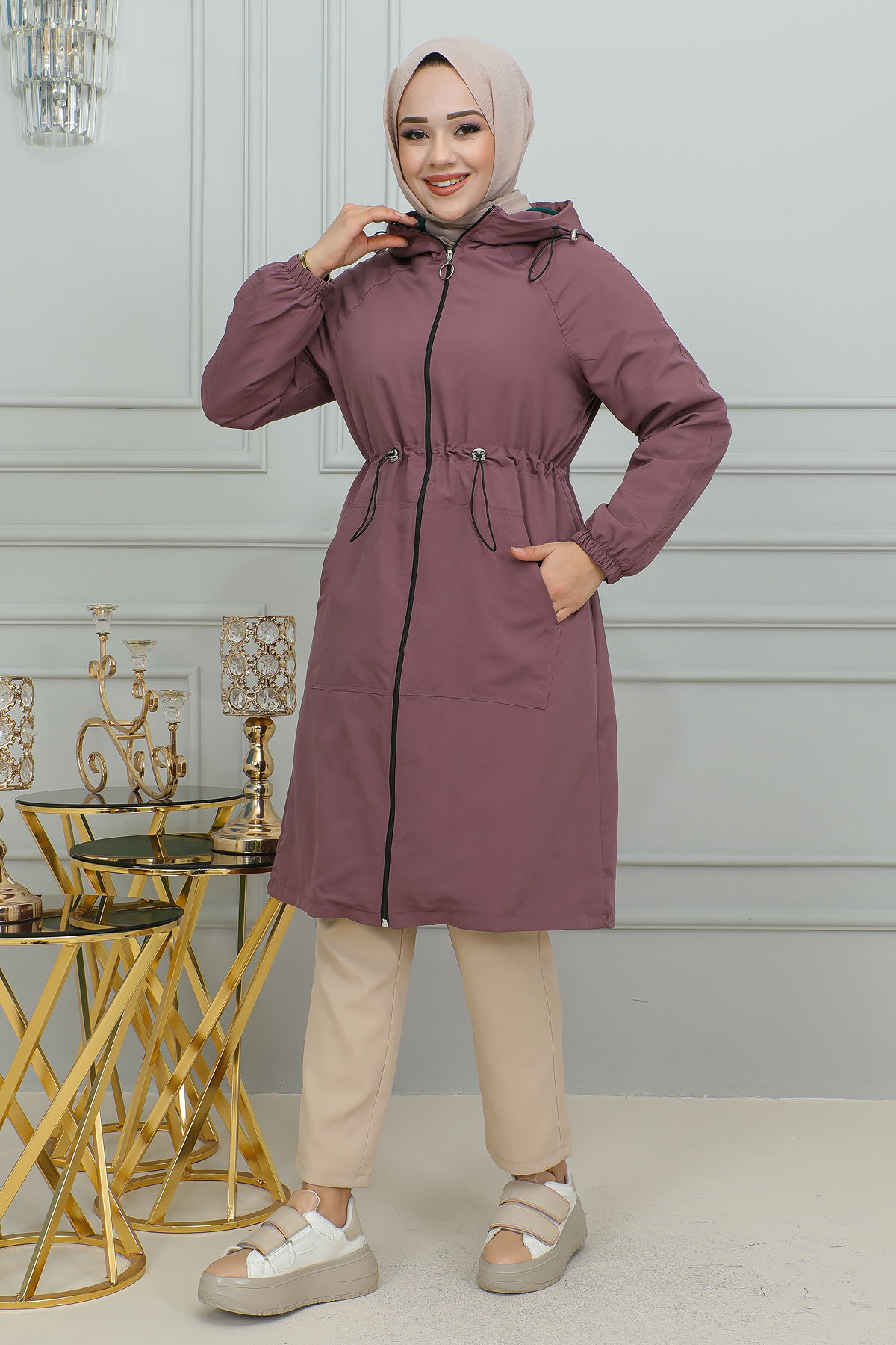 Ürün Özelliği : Yeni sezon tesettür moda ürünüdür.Astarlıdır.Belden bağlamalı, aktif cepleri mevcuttur.Kapşonu yapışıktır.Ürün renginde konsept çekimlerinden dolayı ton farklılığı olabilir.