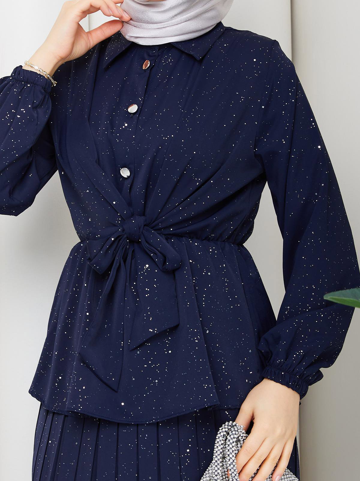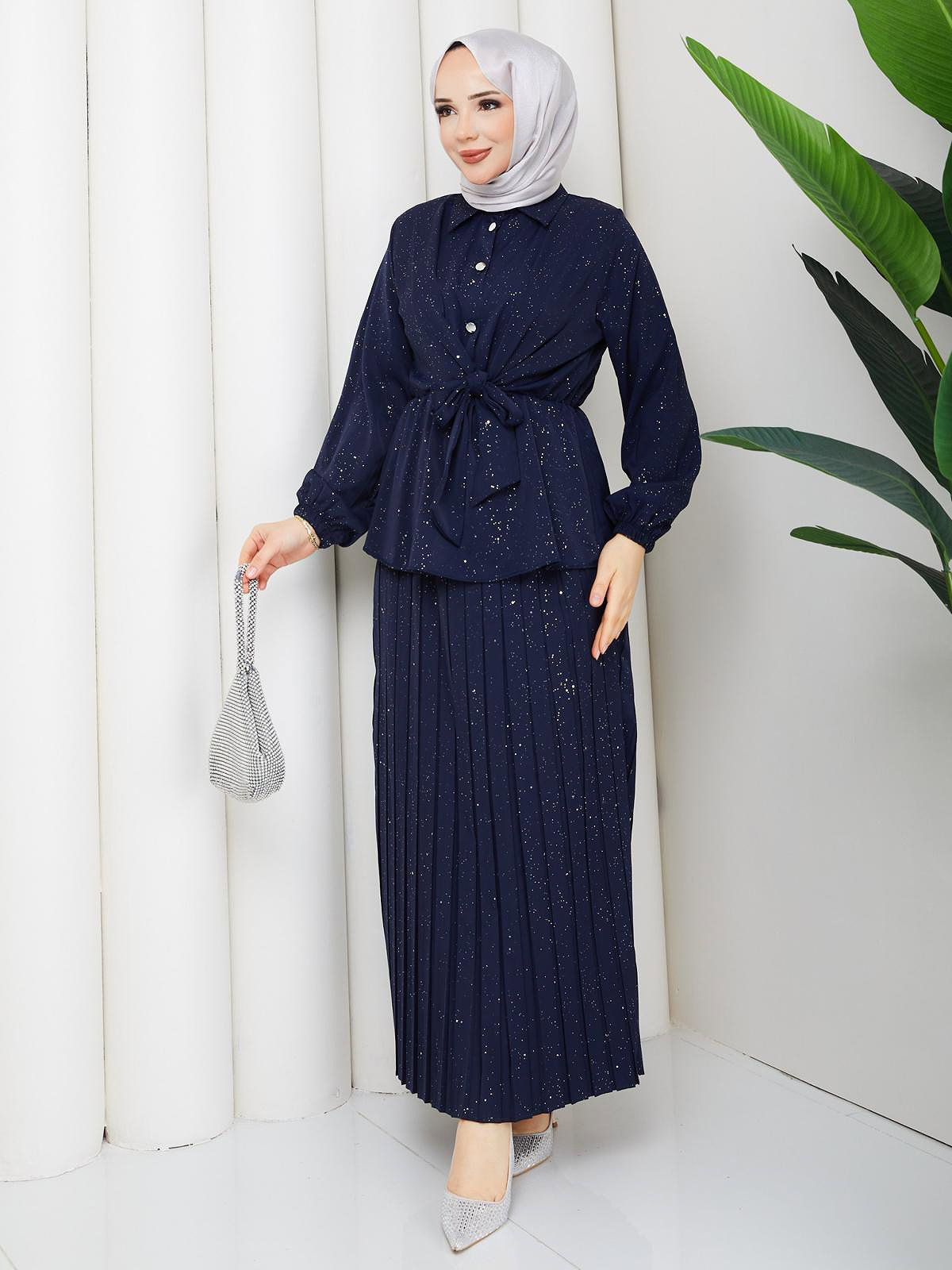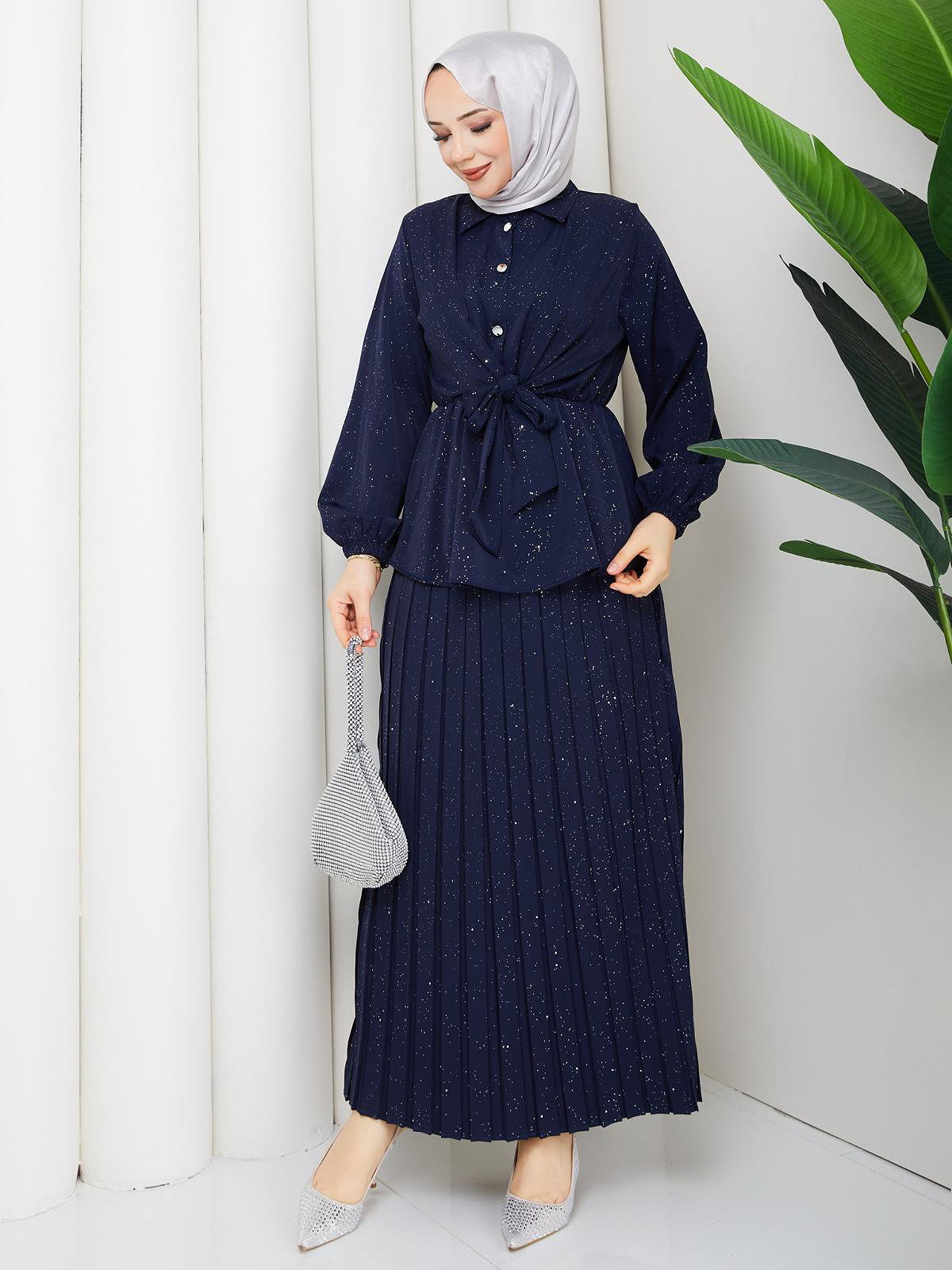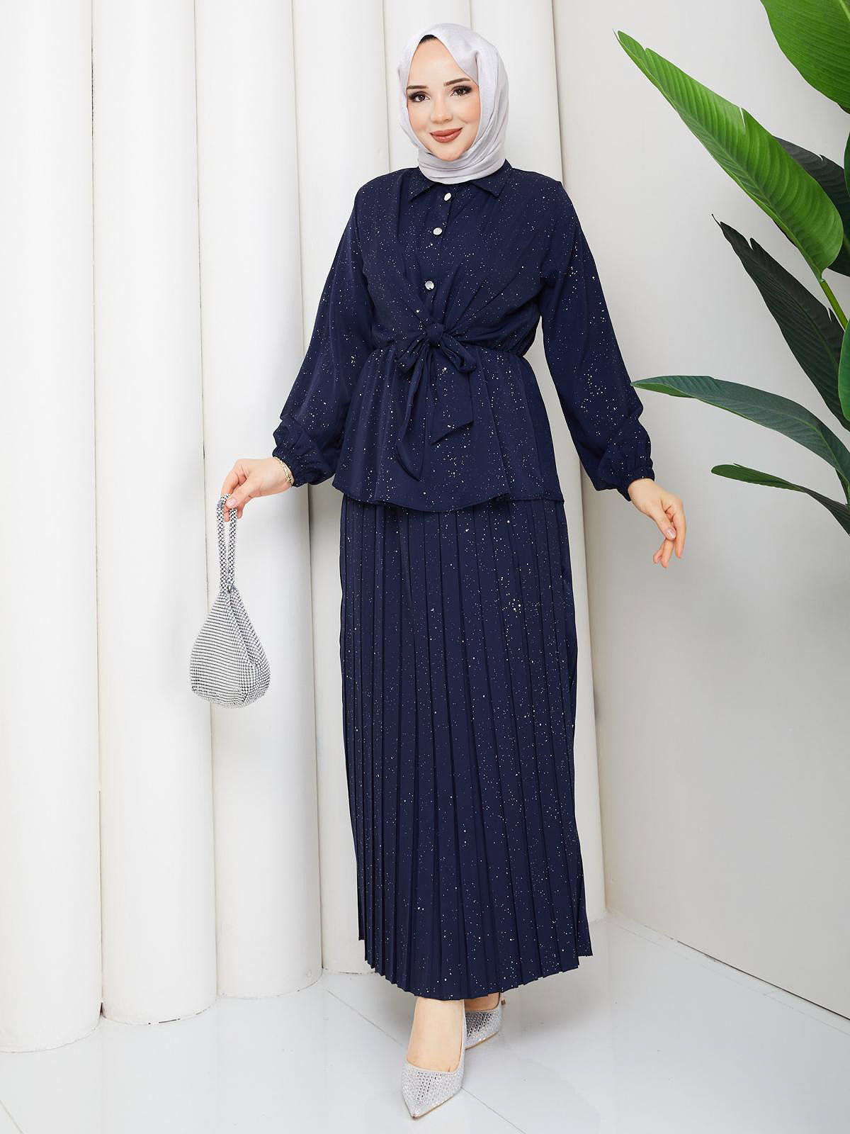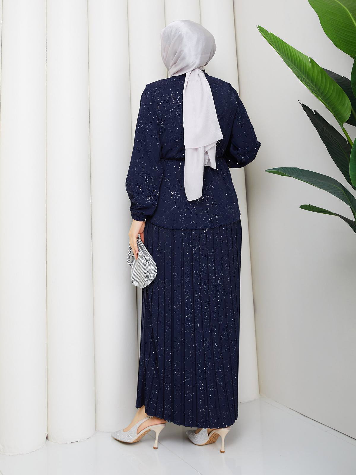 Beli Lastikli Etekli İkili Takım-5169 Lacivert