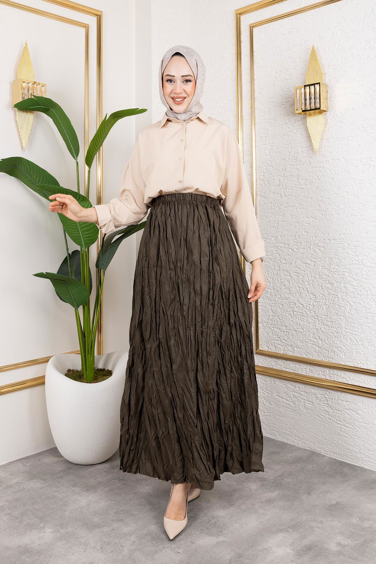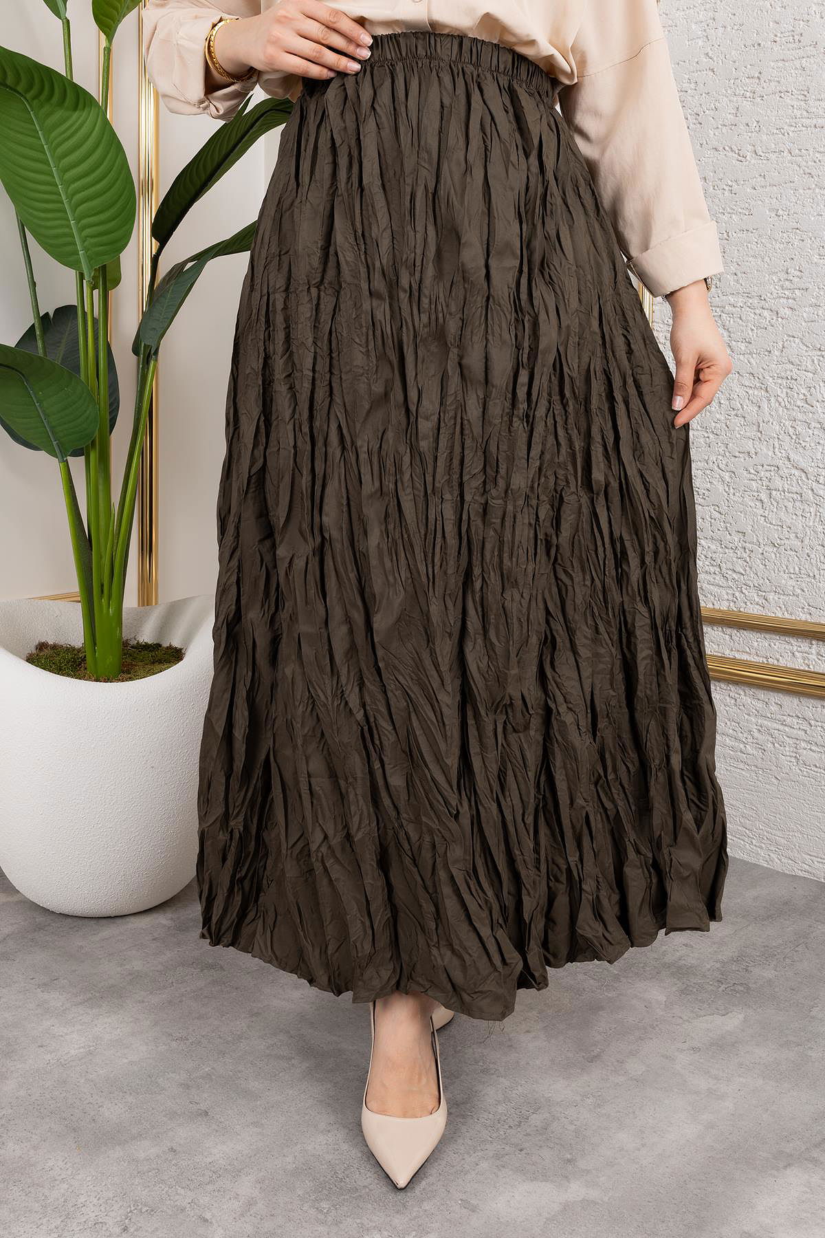 Beli Lastikli Kraş Etek-2040 Haki yeşili