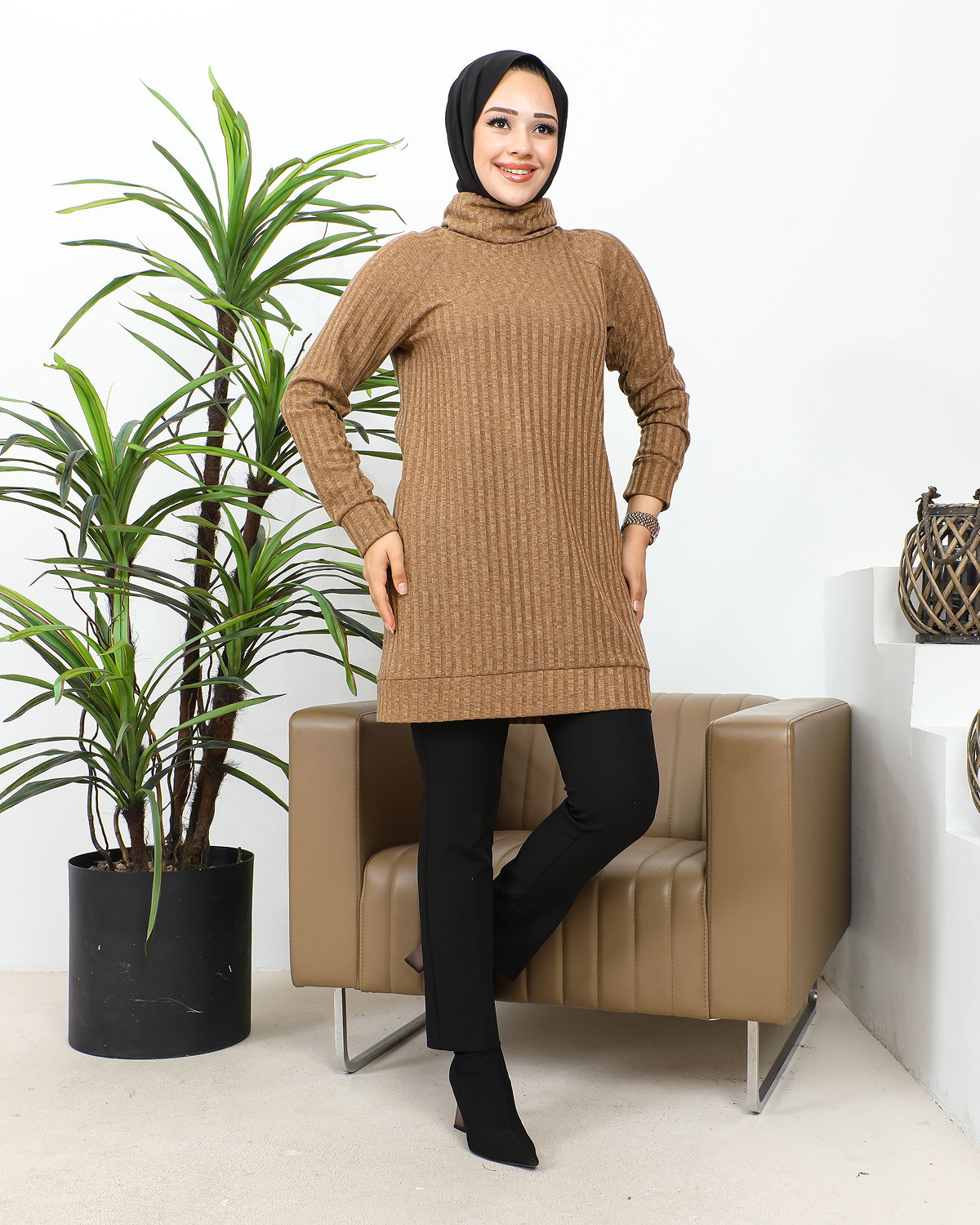 Boğazlı Tunik-3167 Vizon