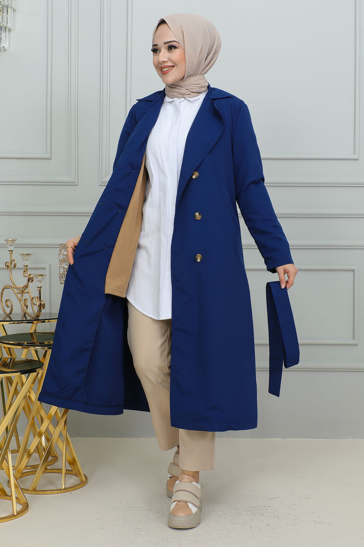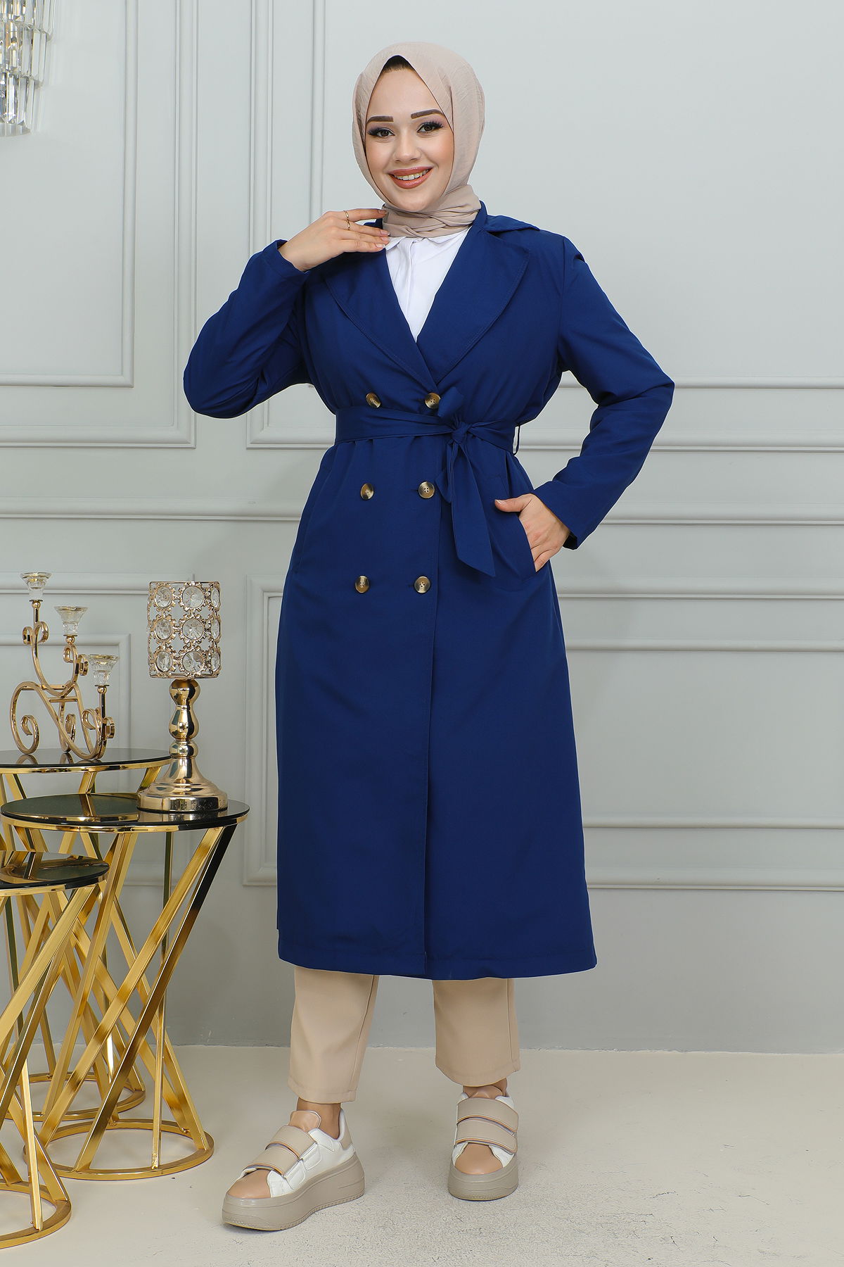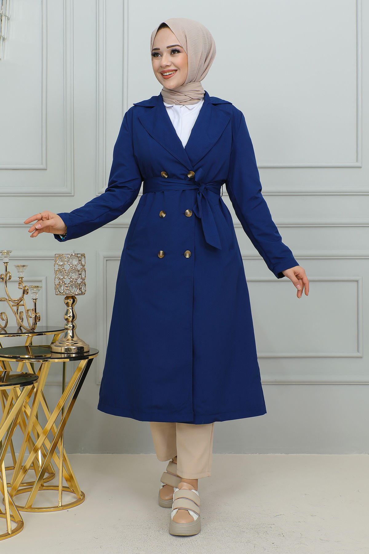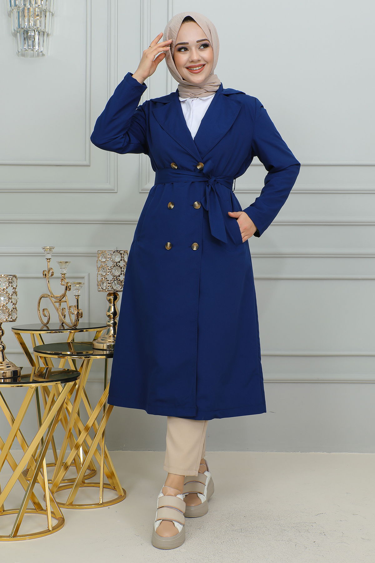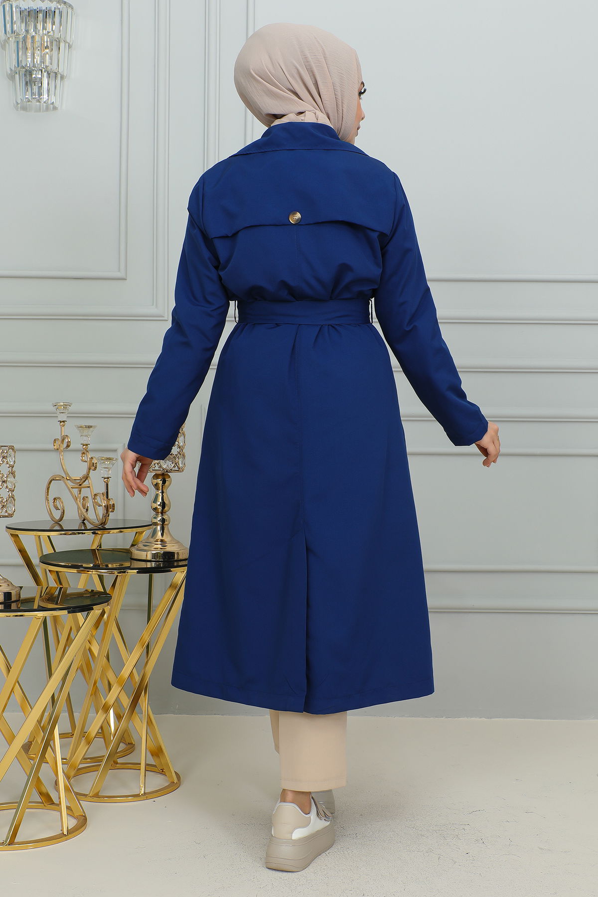 Ceket Yaka Düğmeli Trençkot-1904 İndigo