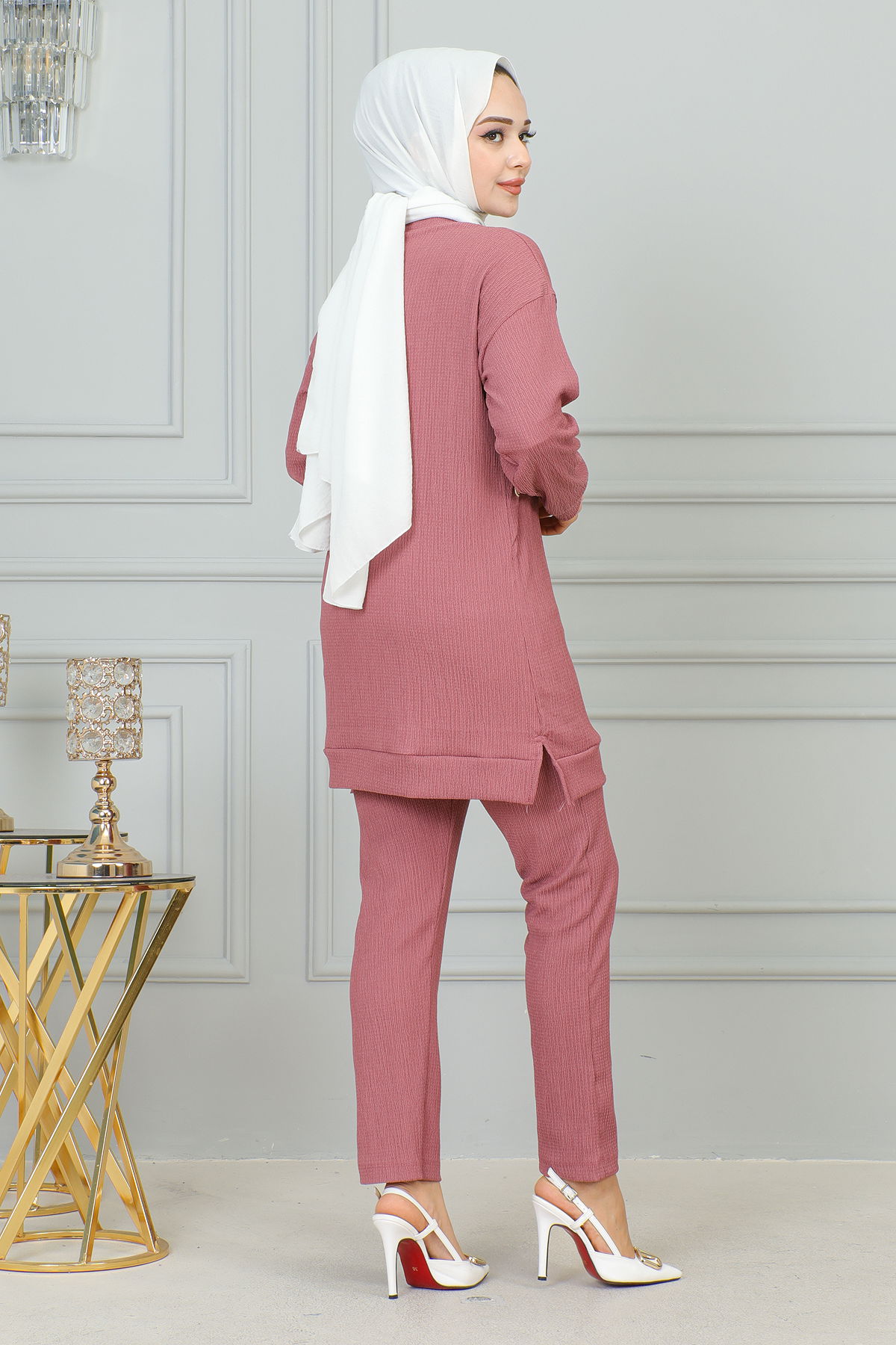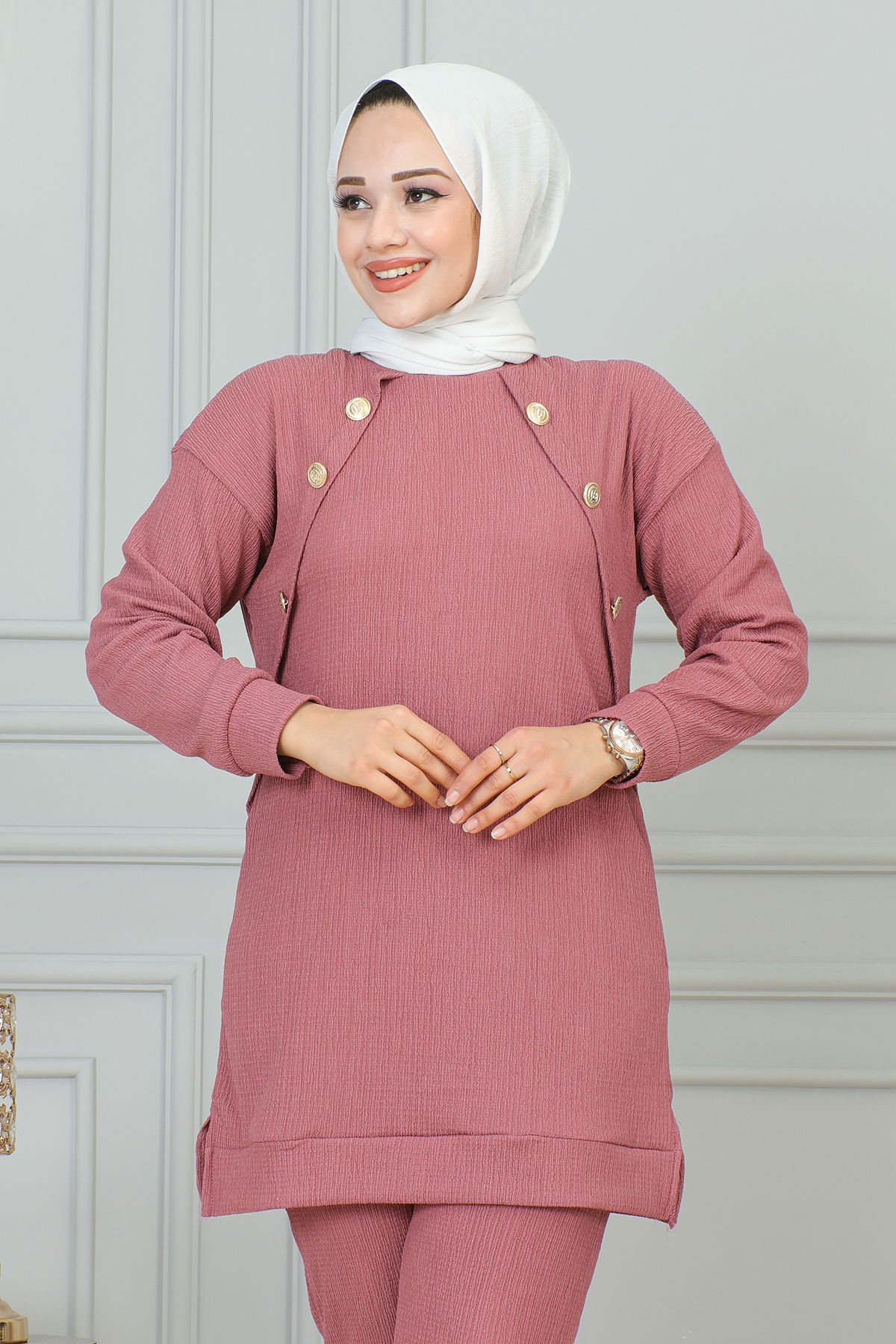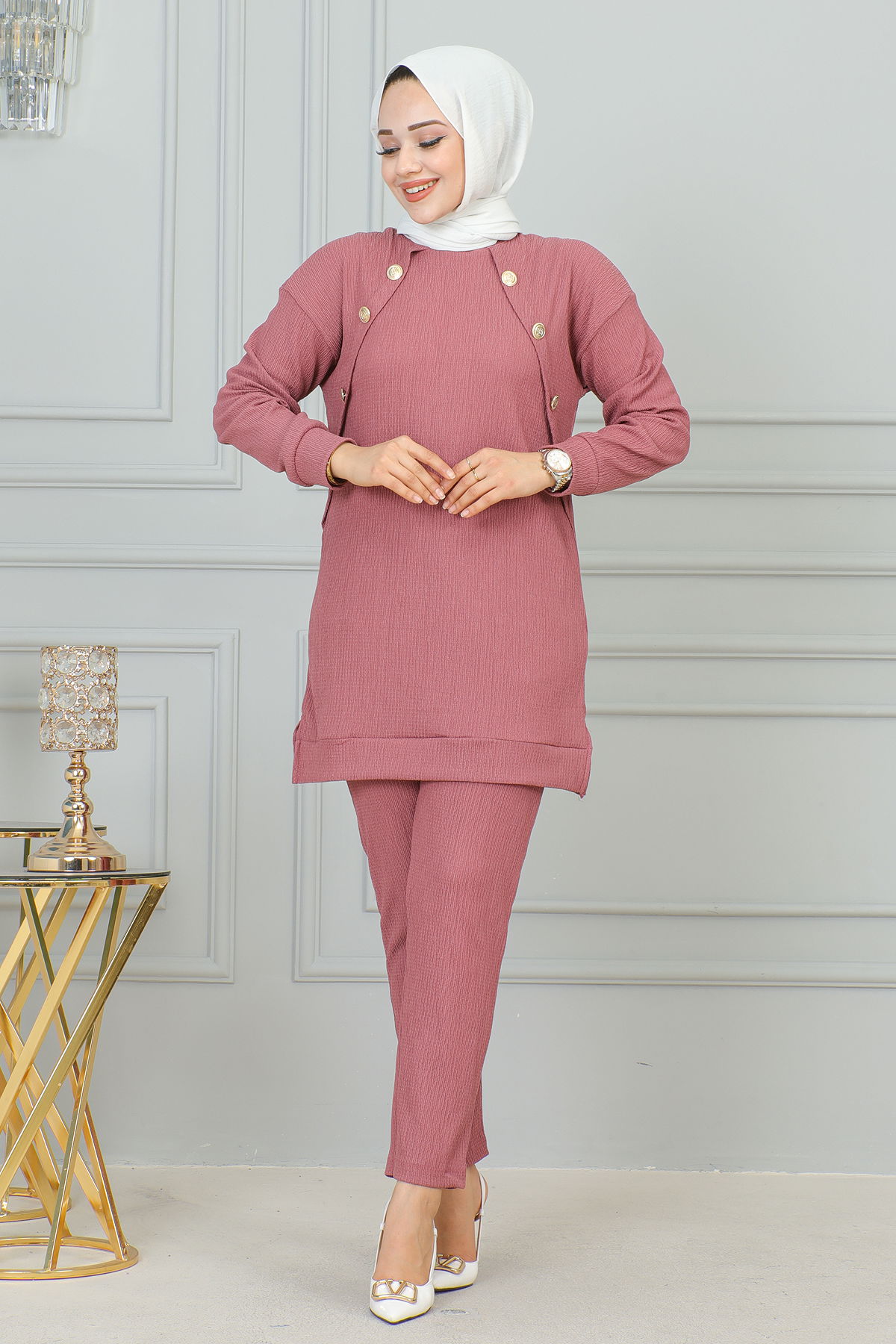 Düğme Detaylı İkili Bürümcük Takım-4008 Gülkurusu