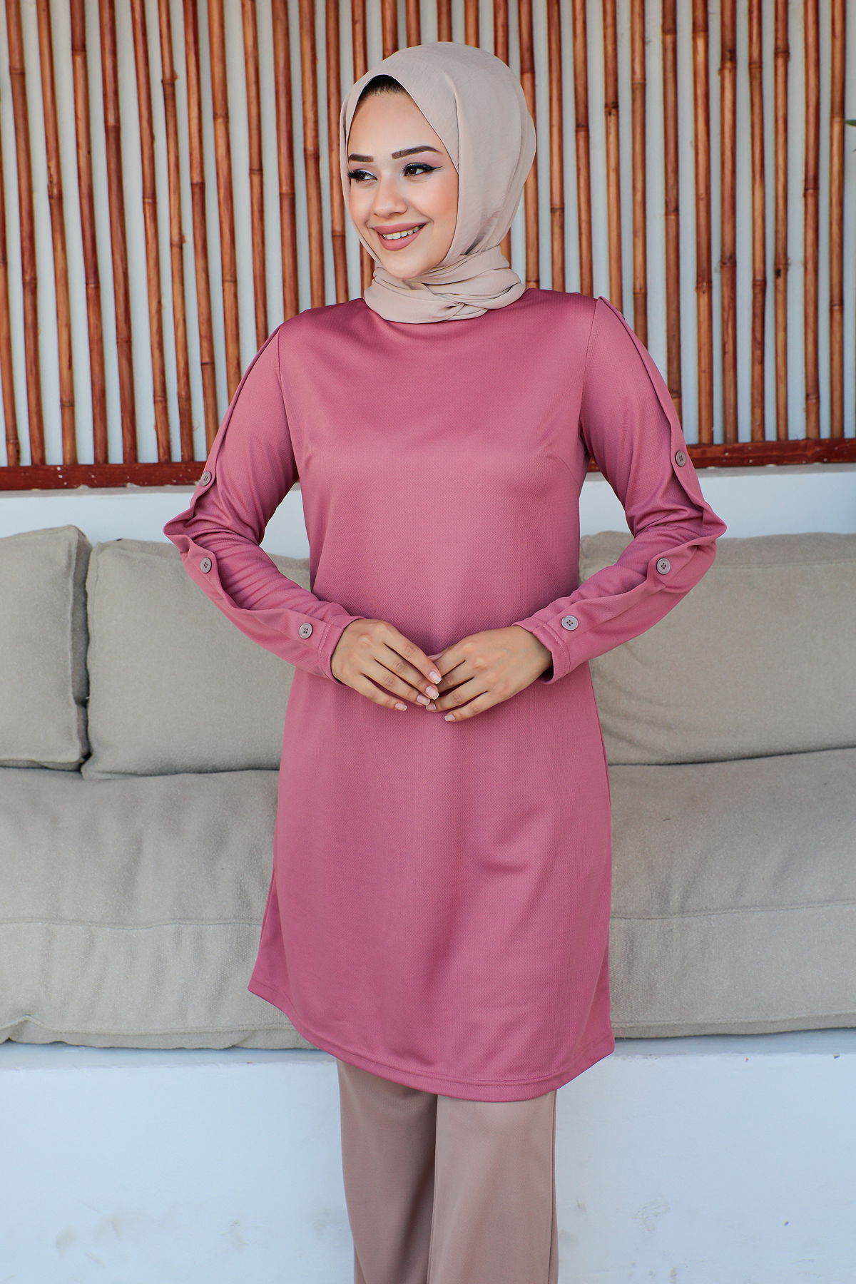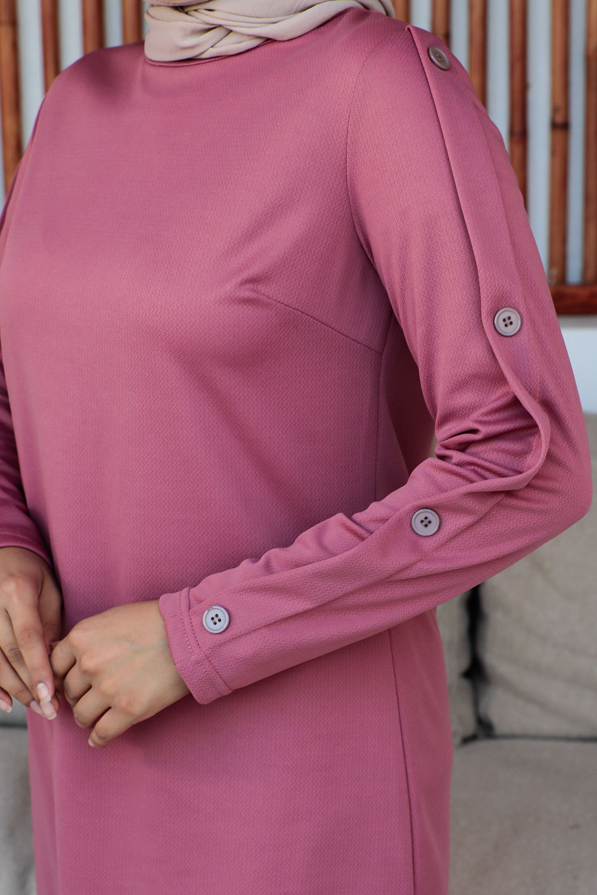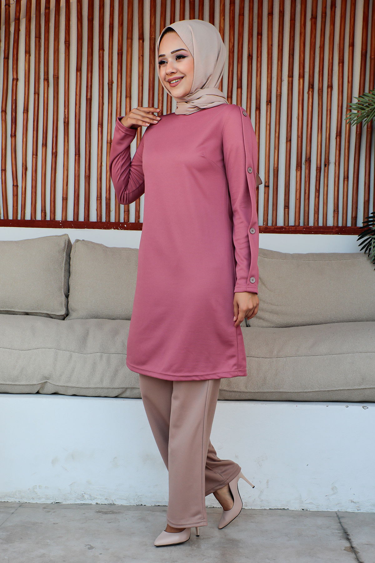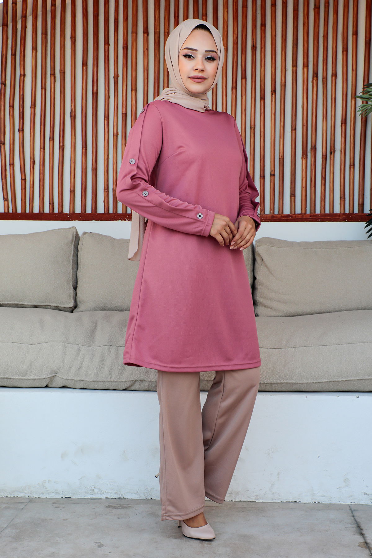 Düğme Detaylı İkili Tesettür Takım-3150 Gülkurusu