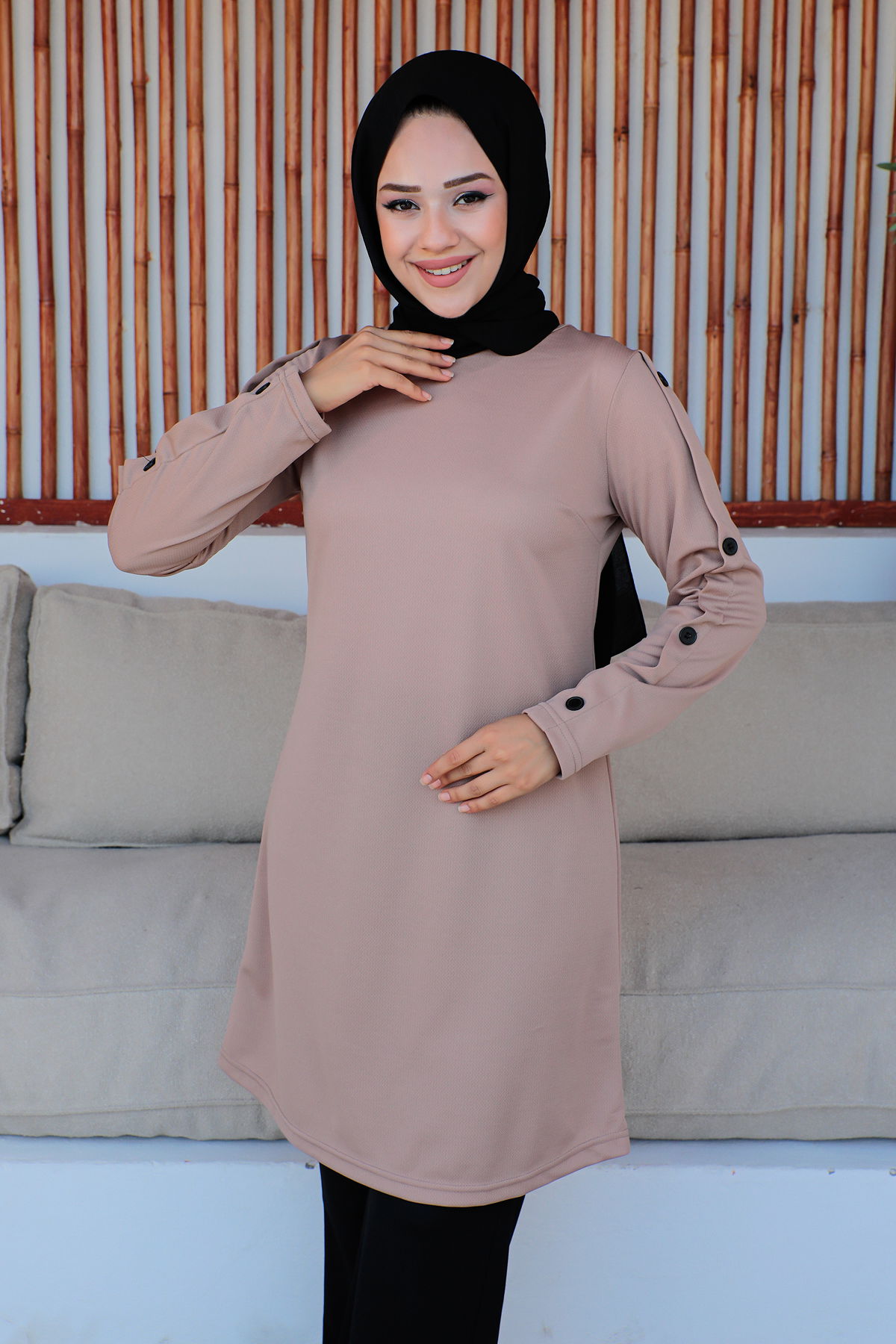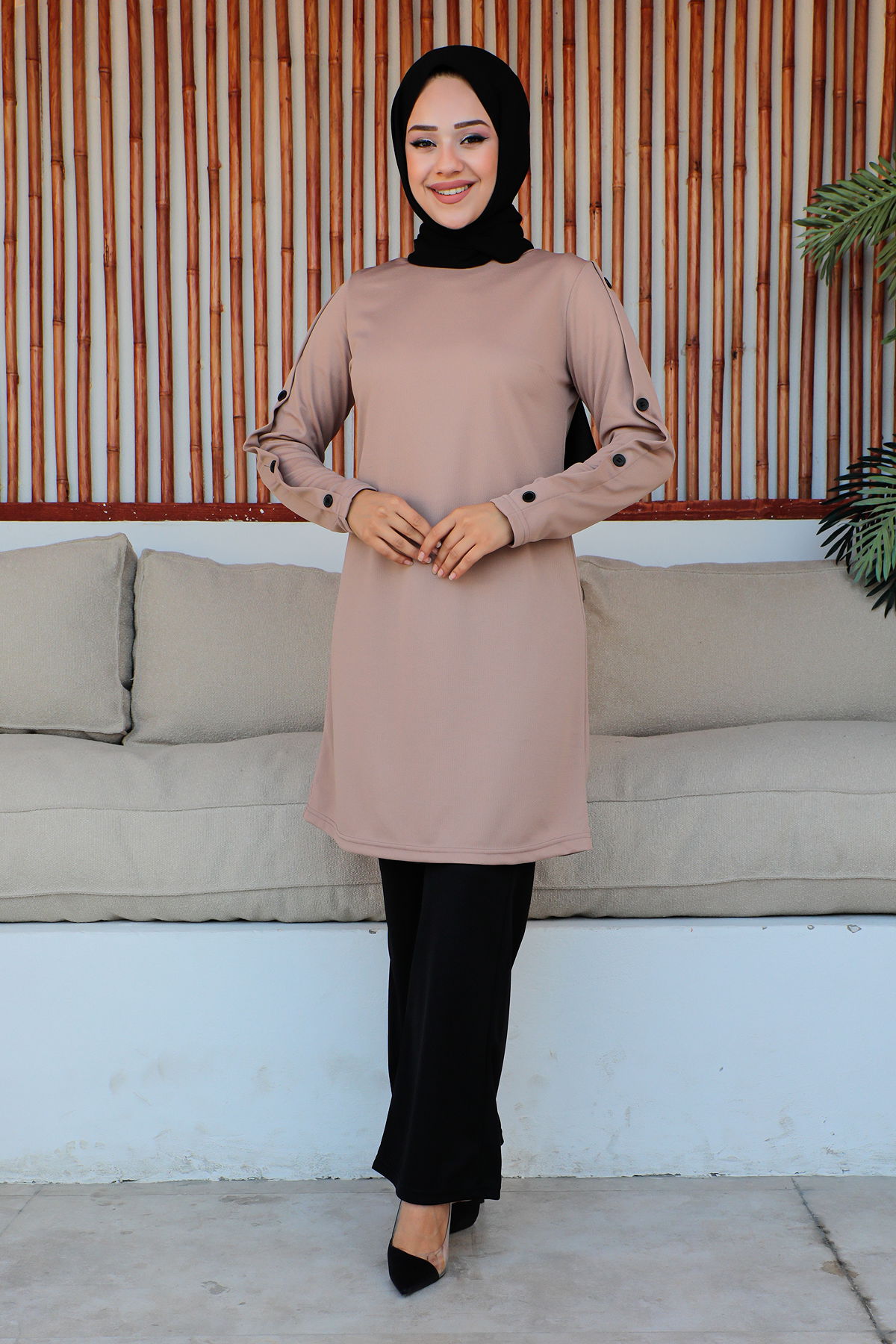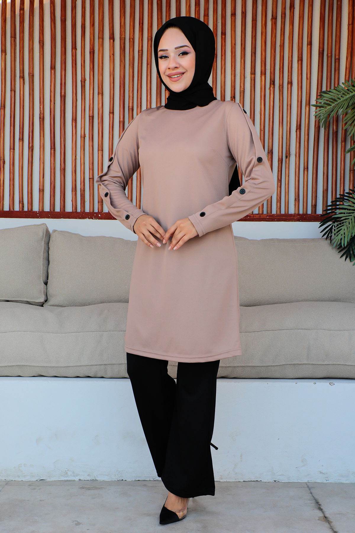Düğme Detaylı İkili Tesettür Takım-3150 Vizon