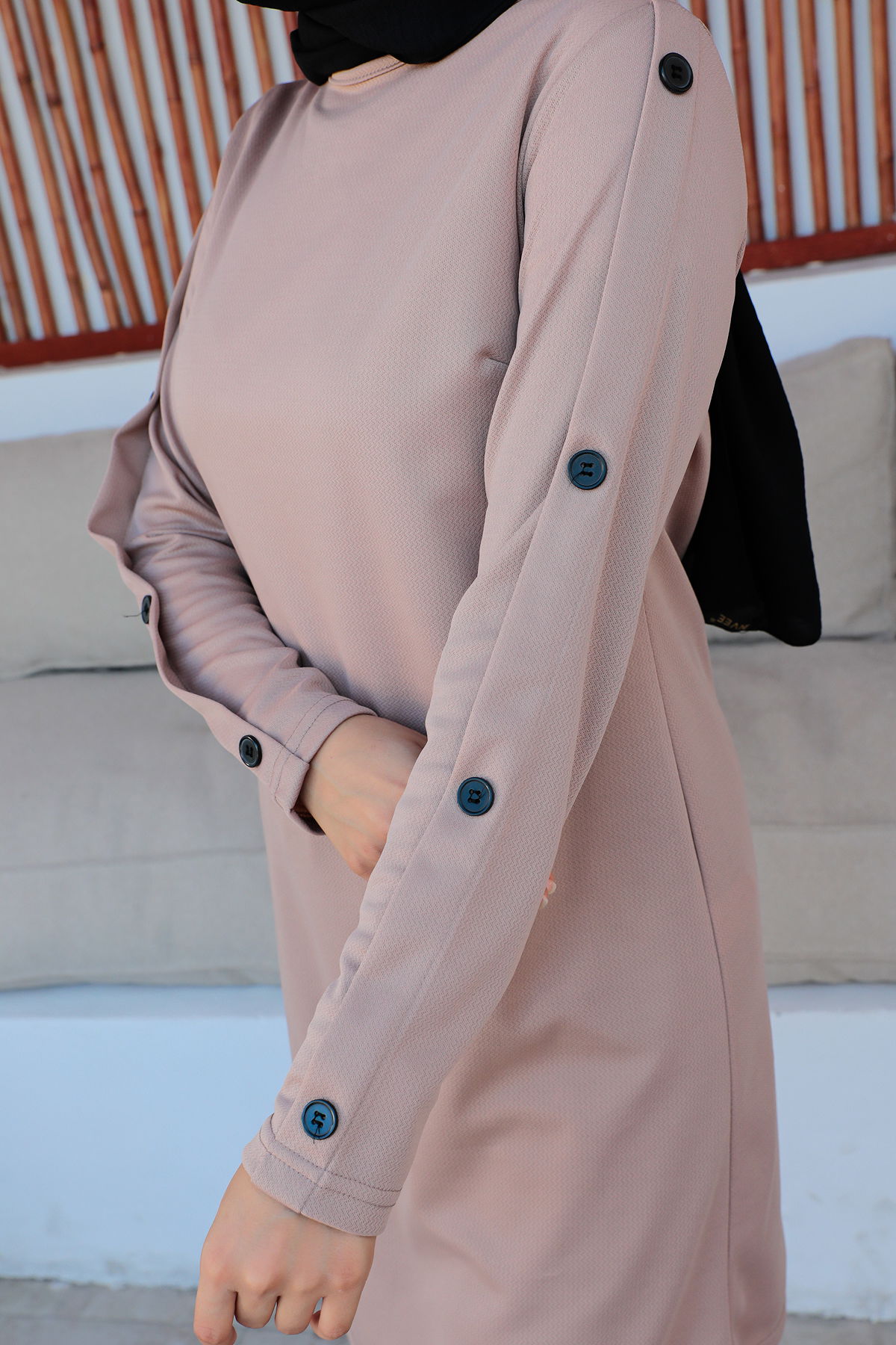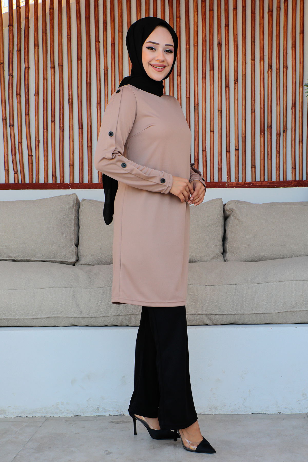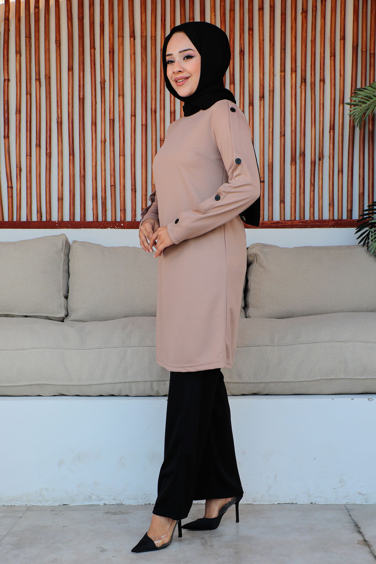 Düğme Detaylı İkili Tesettür Takım-3150 Vizon