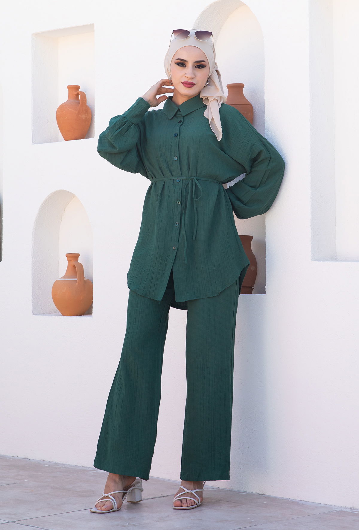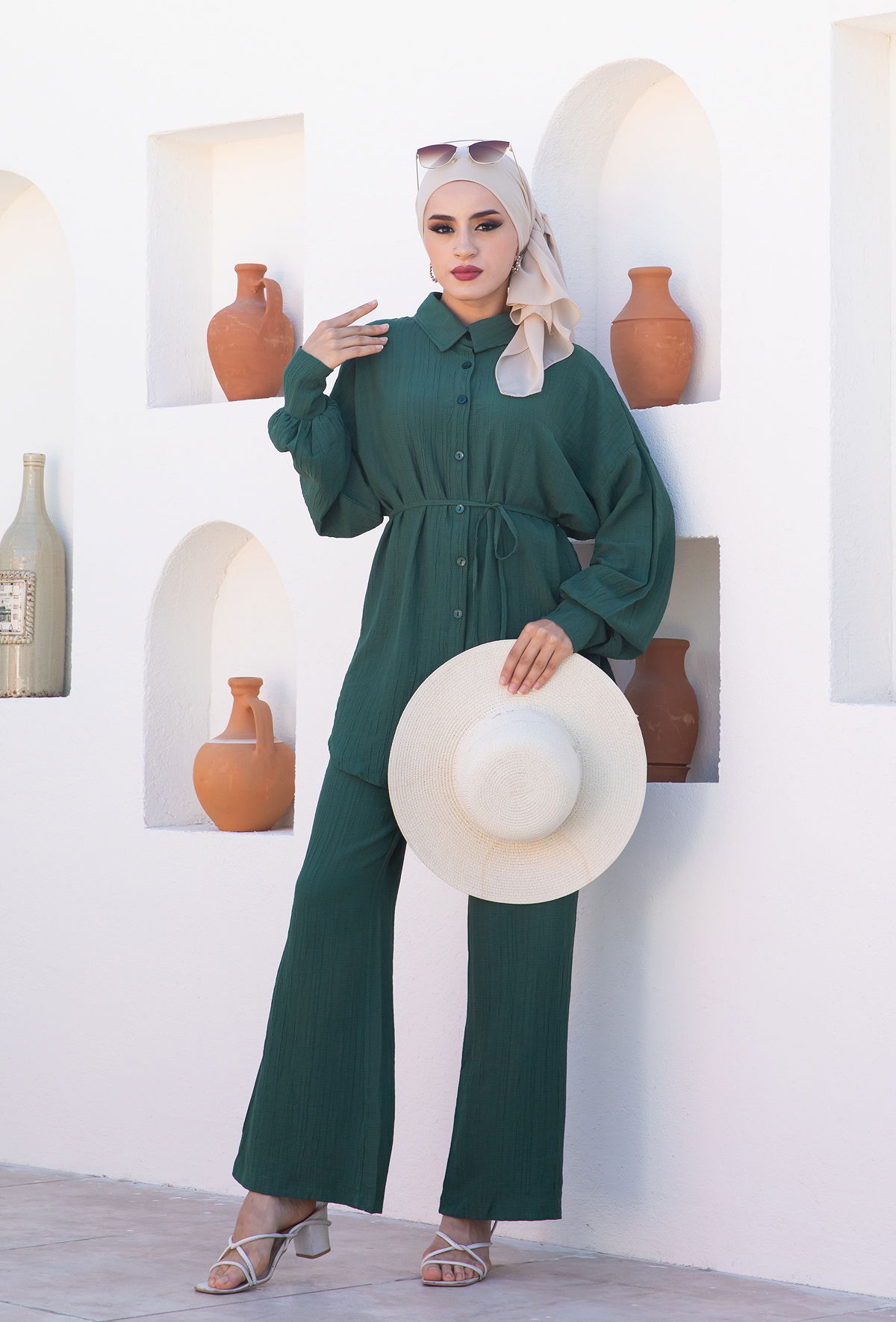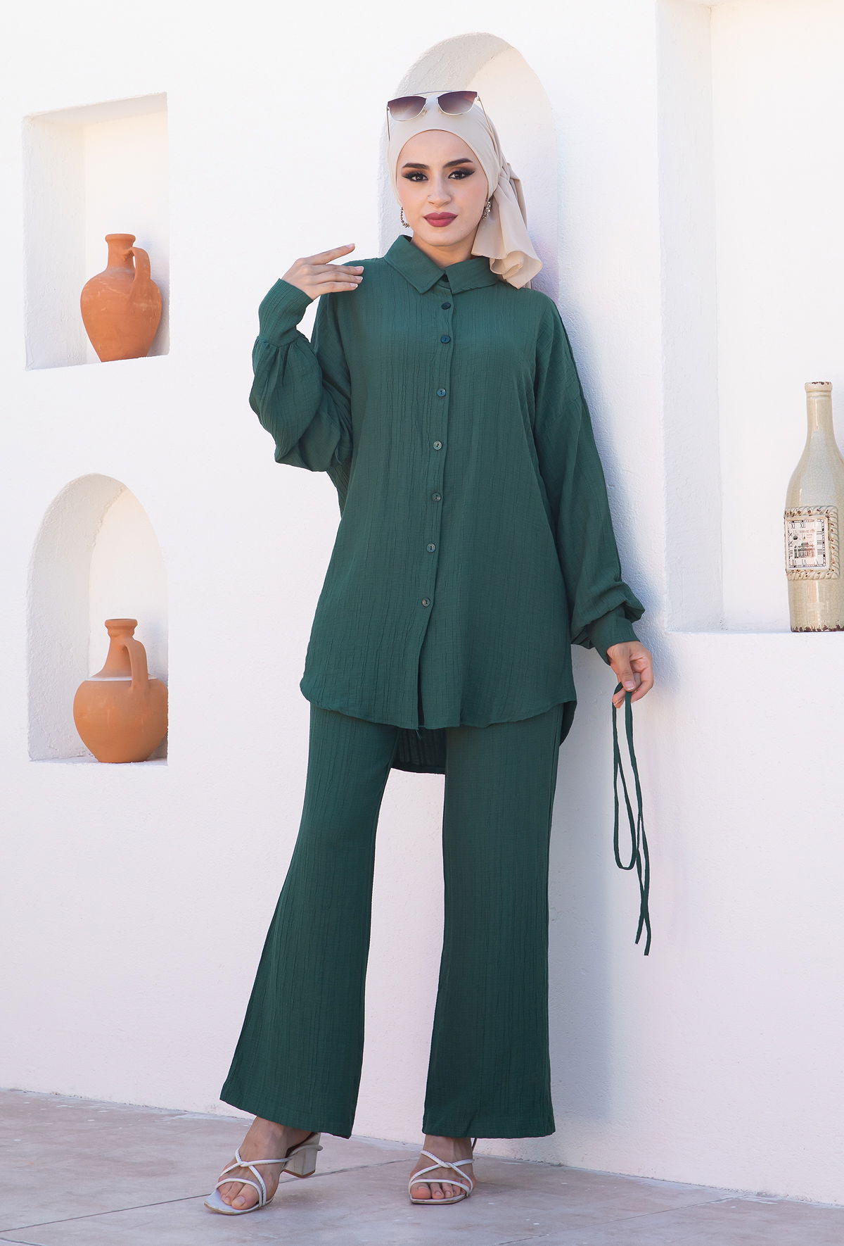 Düşük Kol Lara Kumaş İkili Takım-3140 Zümrüt yeşil