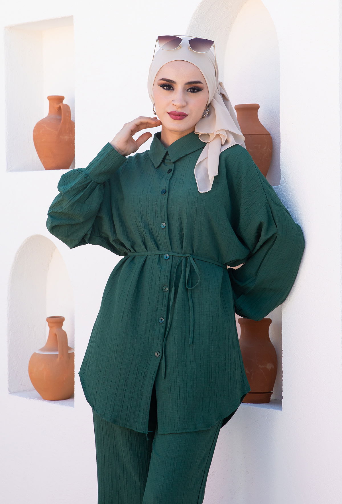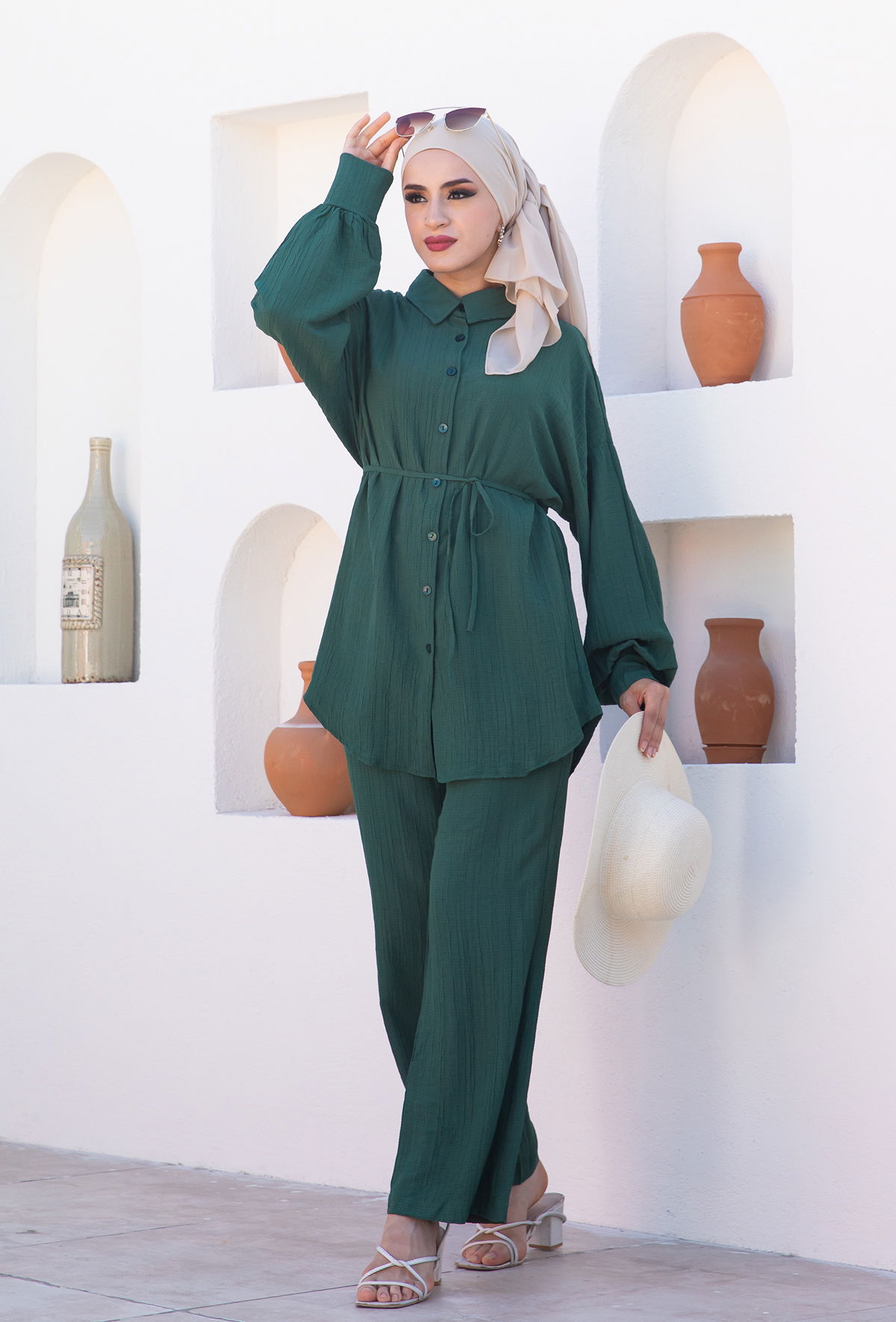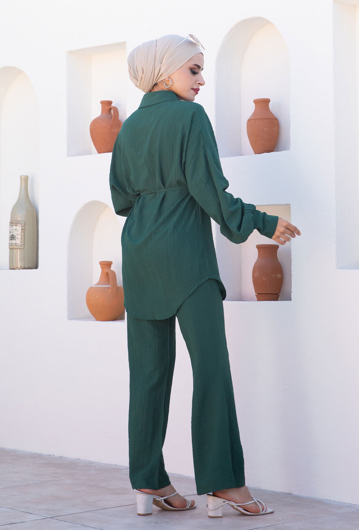 Düşük Kol Lara Kumaş İkili Takım-3140 Zümrüt yeşil