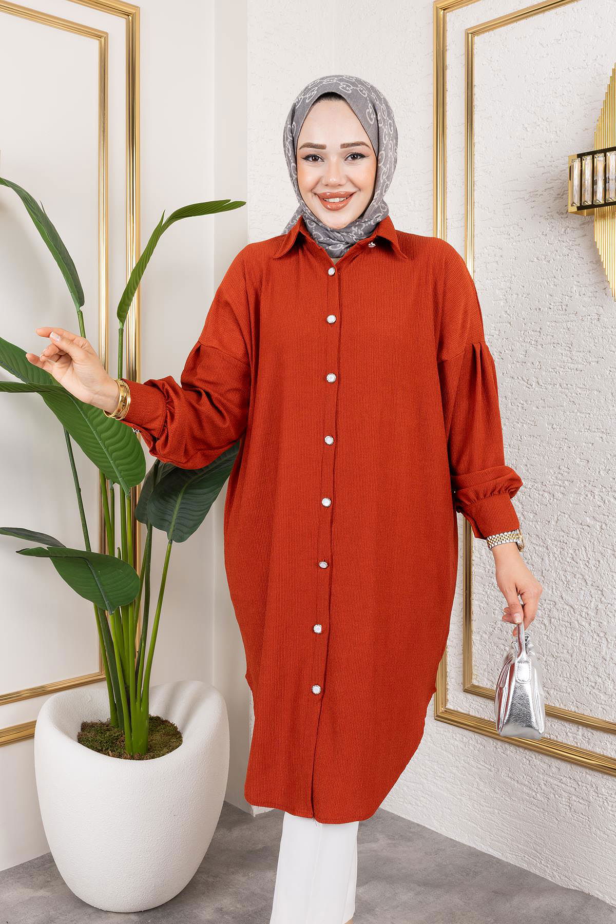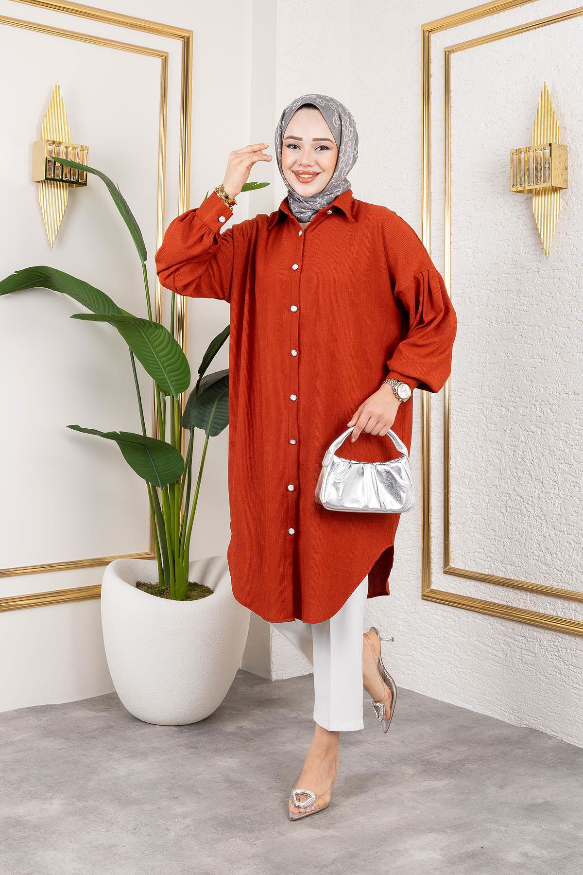 Düşük Kollu SalaşTunik-3034---Kiremit