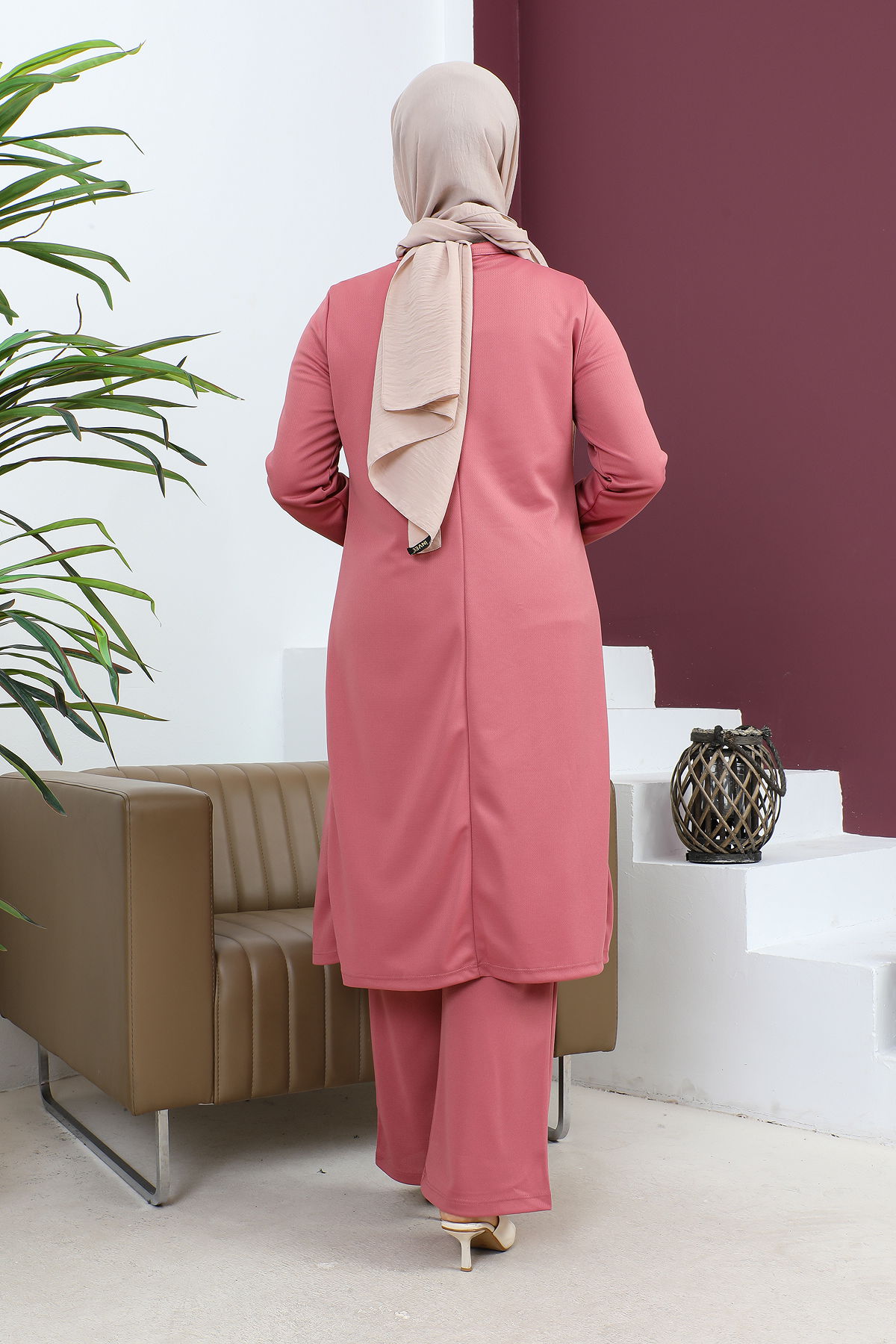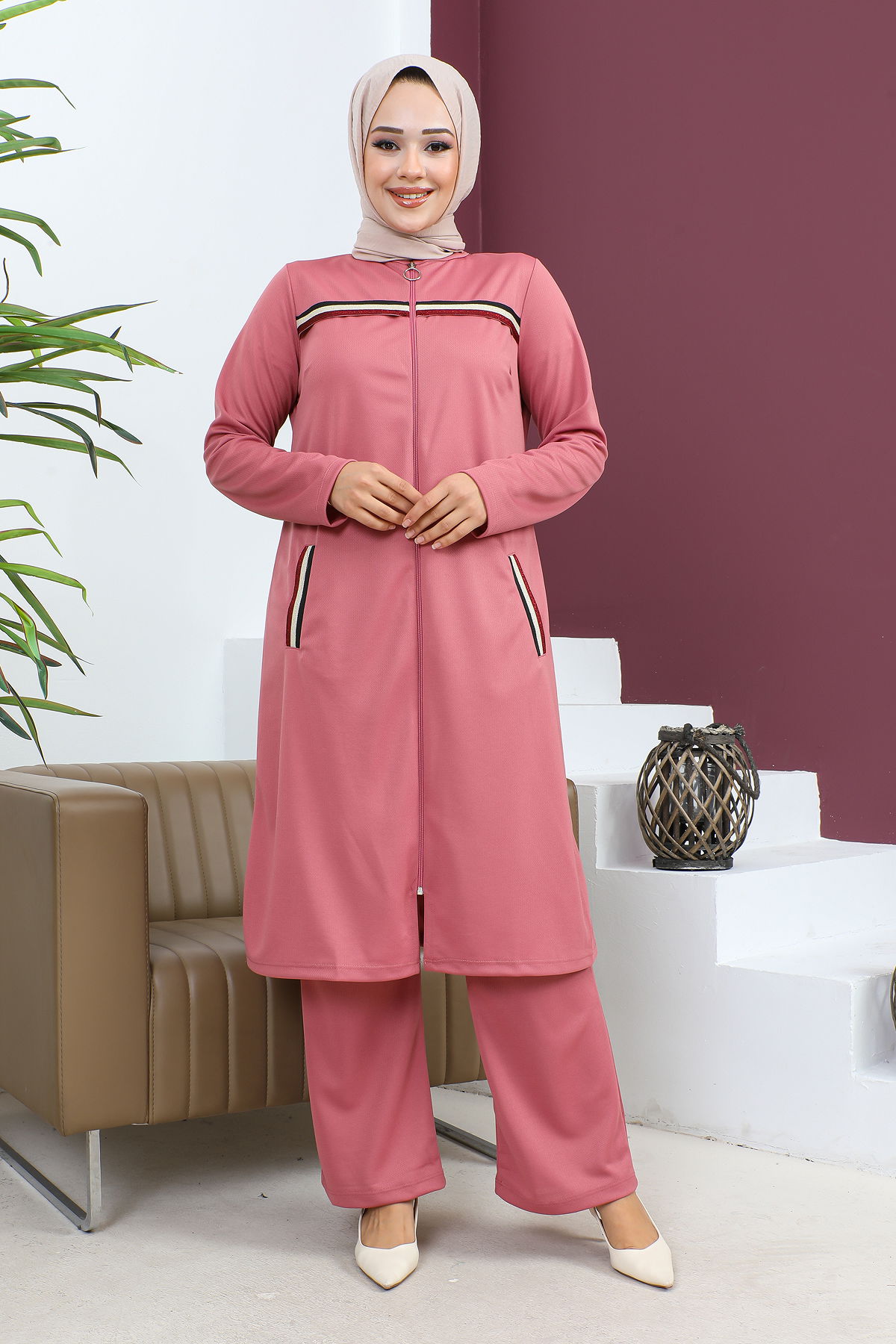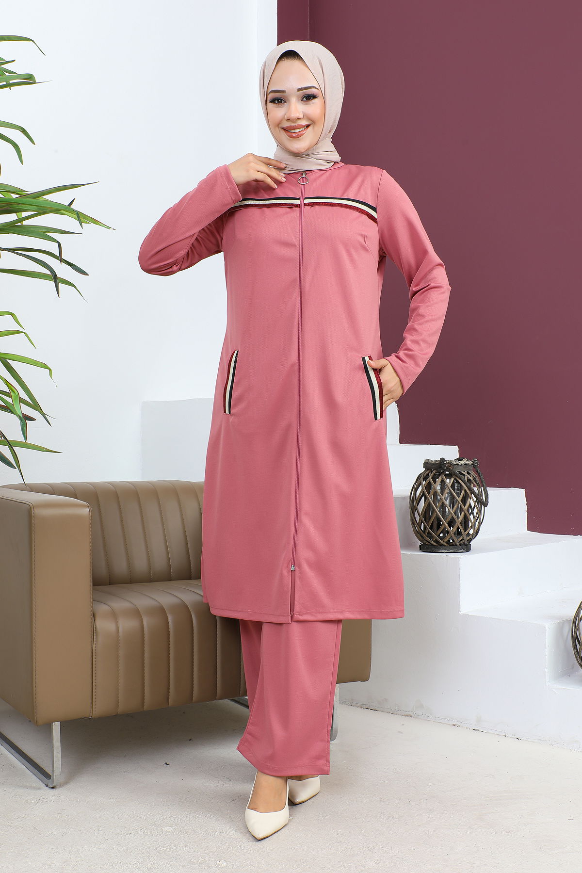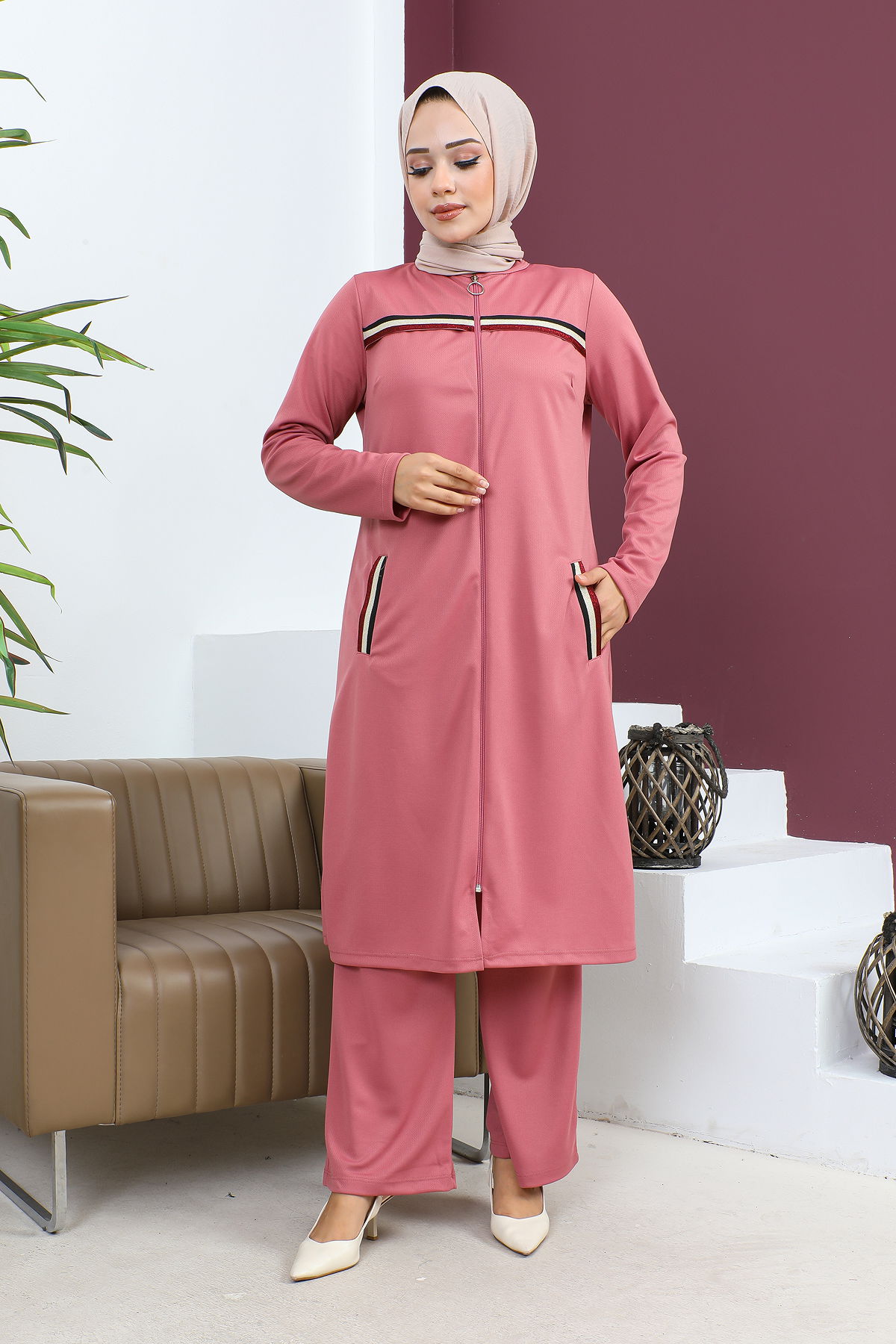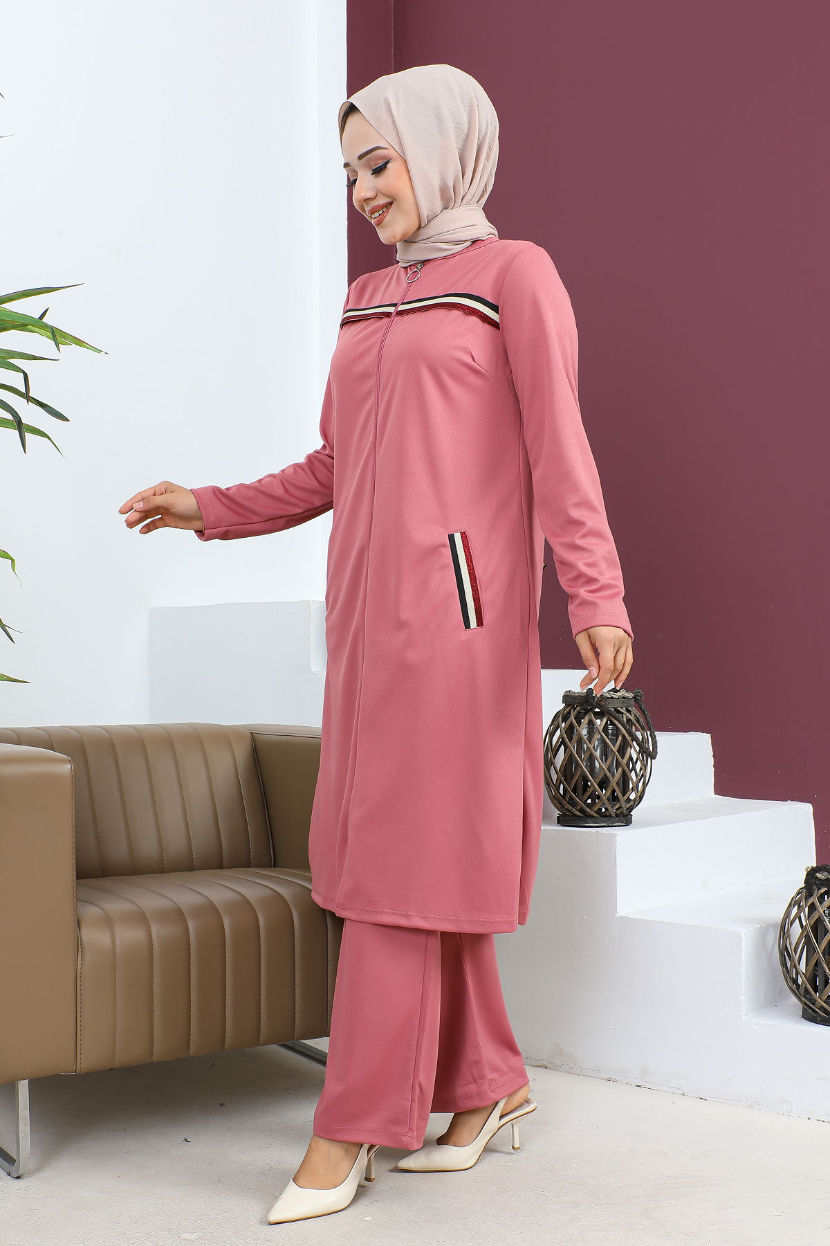 Fermuar Ve Cep Detaylı İkili Takım-3158 Gülkurusu