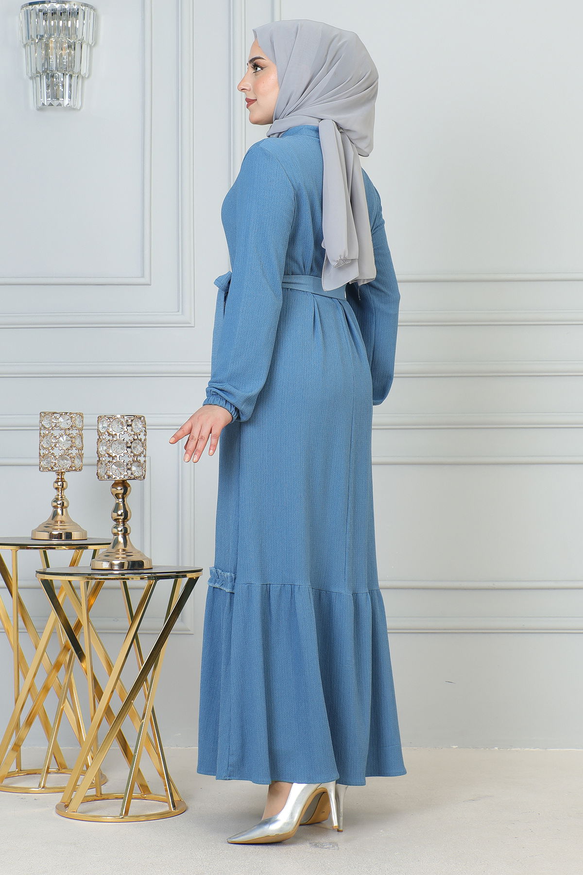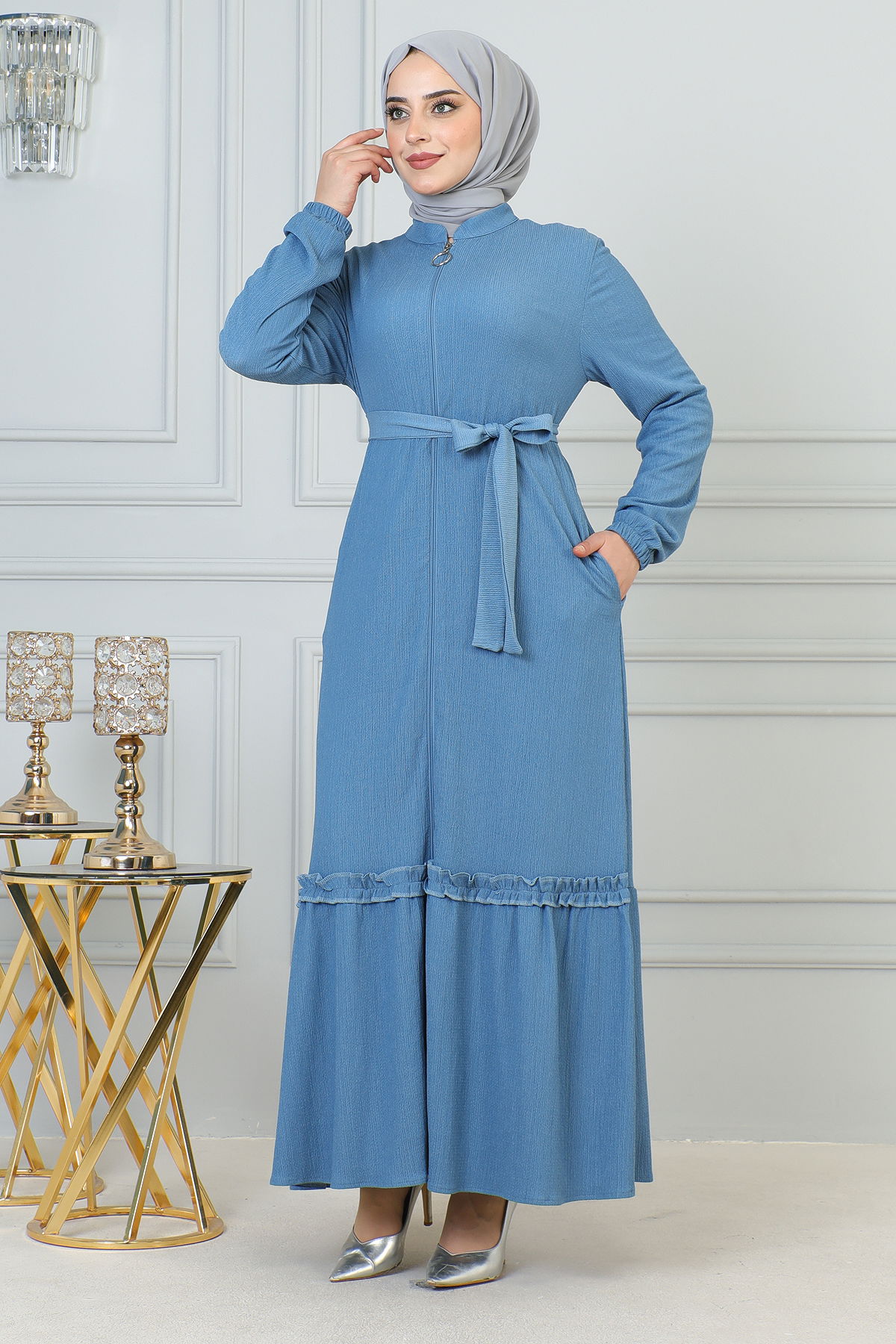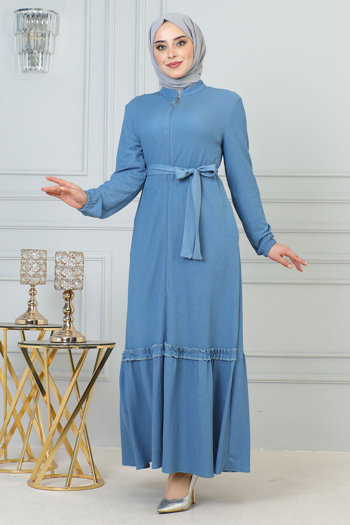 Fırfır Detay Fermuarlı Ferace-5544 Açık mavi