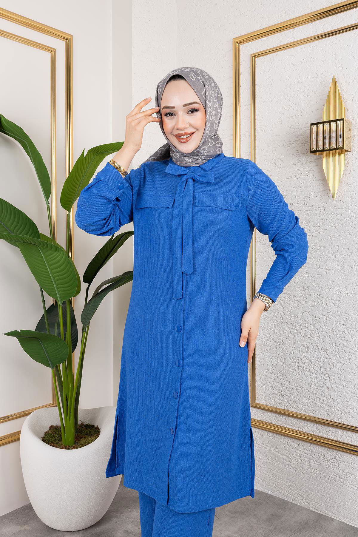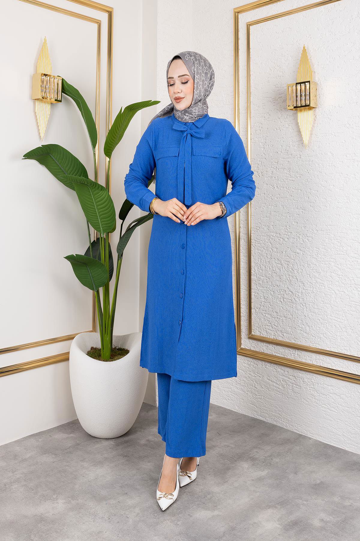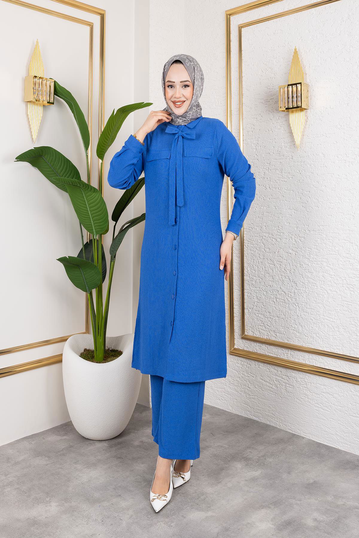 Ürün Özelliği : Yeni sezon tesettür moda ürünüdür.Öndeki düğmeler aktiftir,Flar yapışıktır.Pantolon beli lastiklidir.Ürün renginde konsept çekimlerinden dolayı ton farklılığı olabilir.