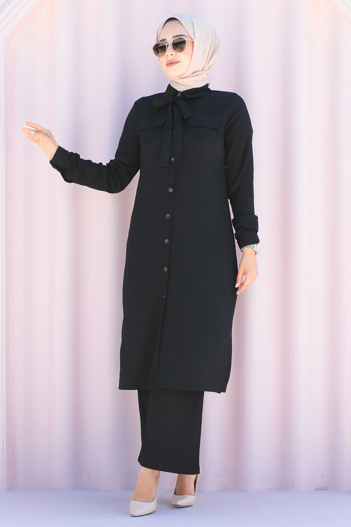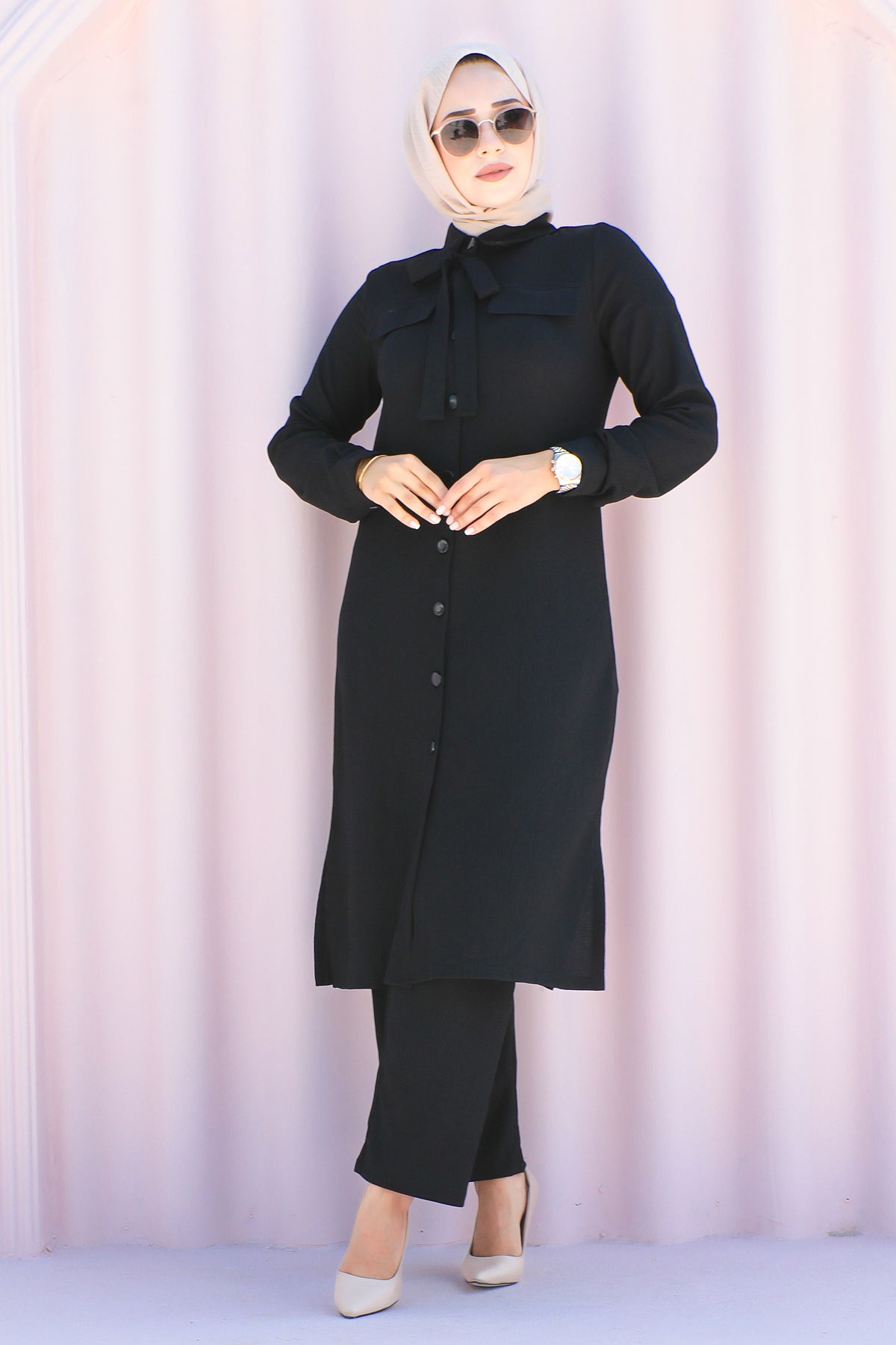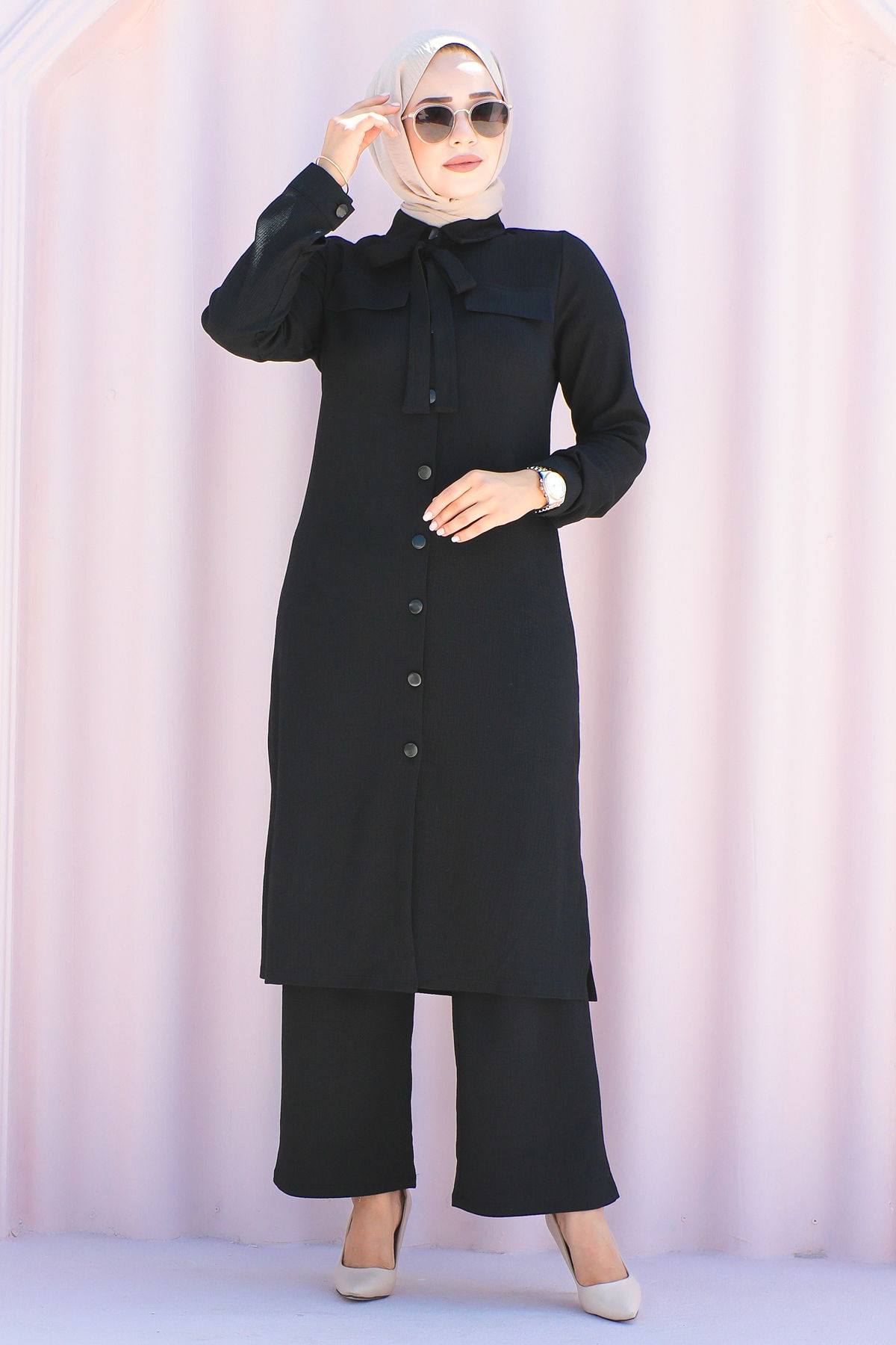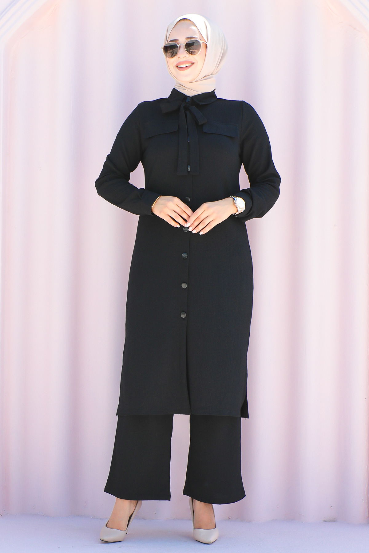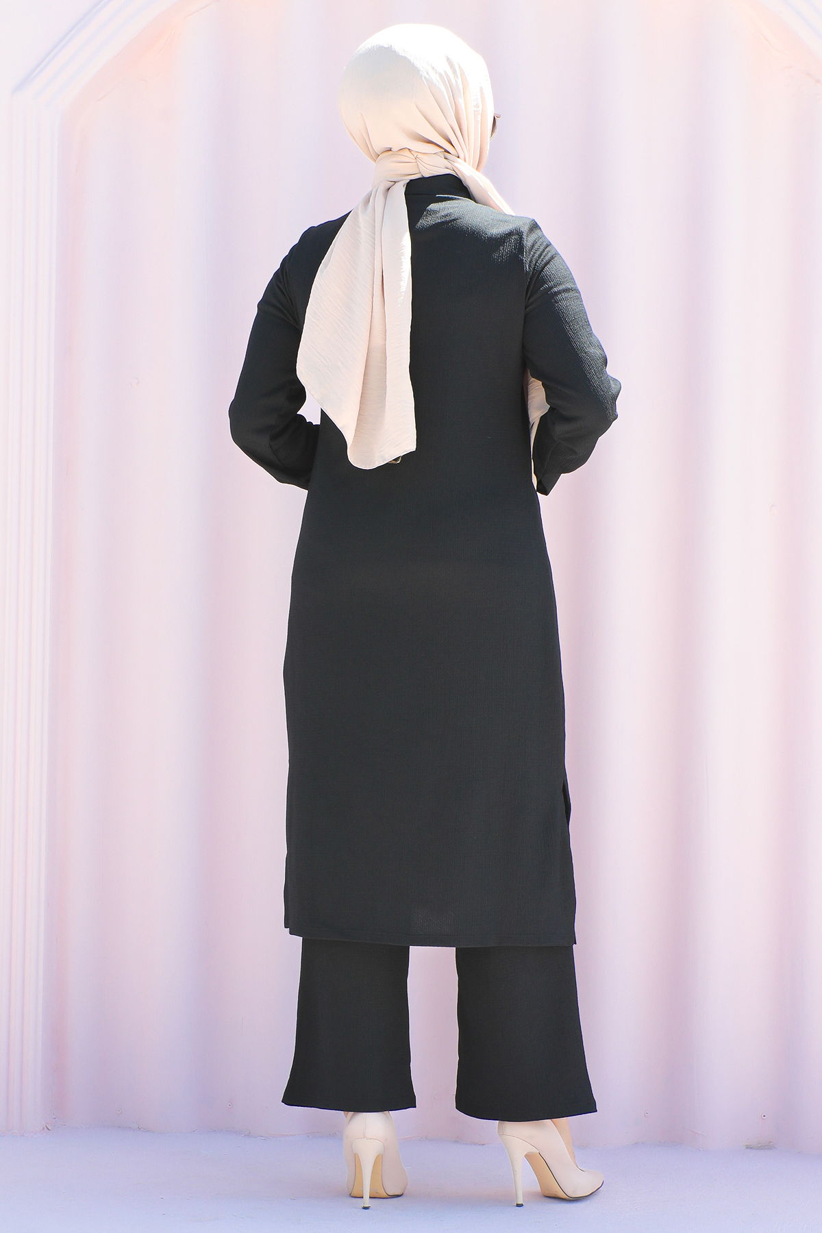 Flar Detaylı İkili Tesettür Takım-3151 Siyah