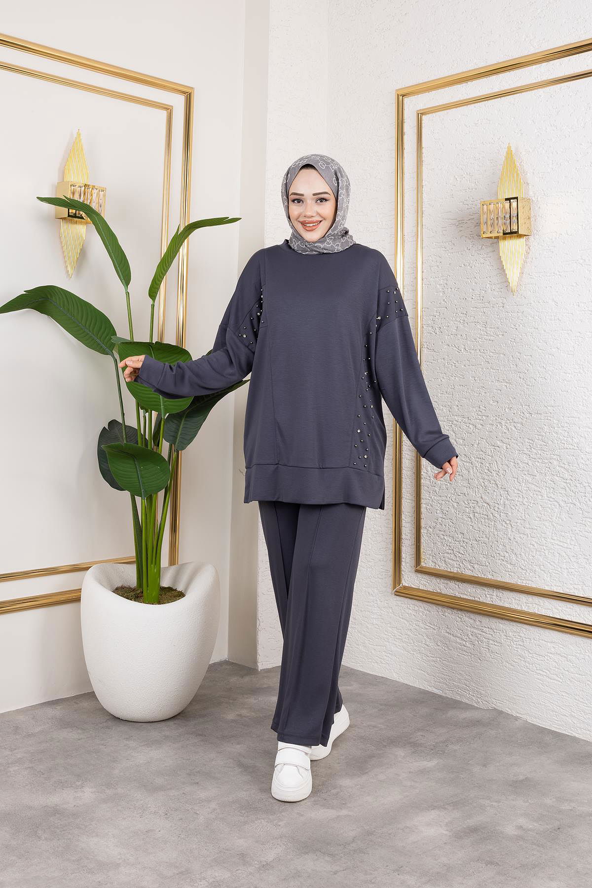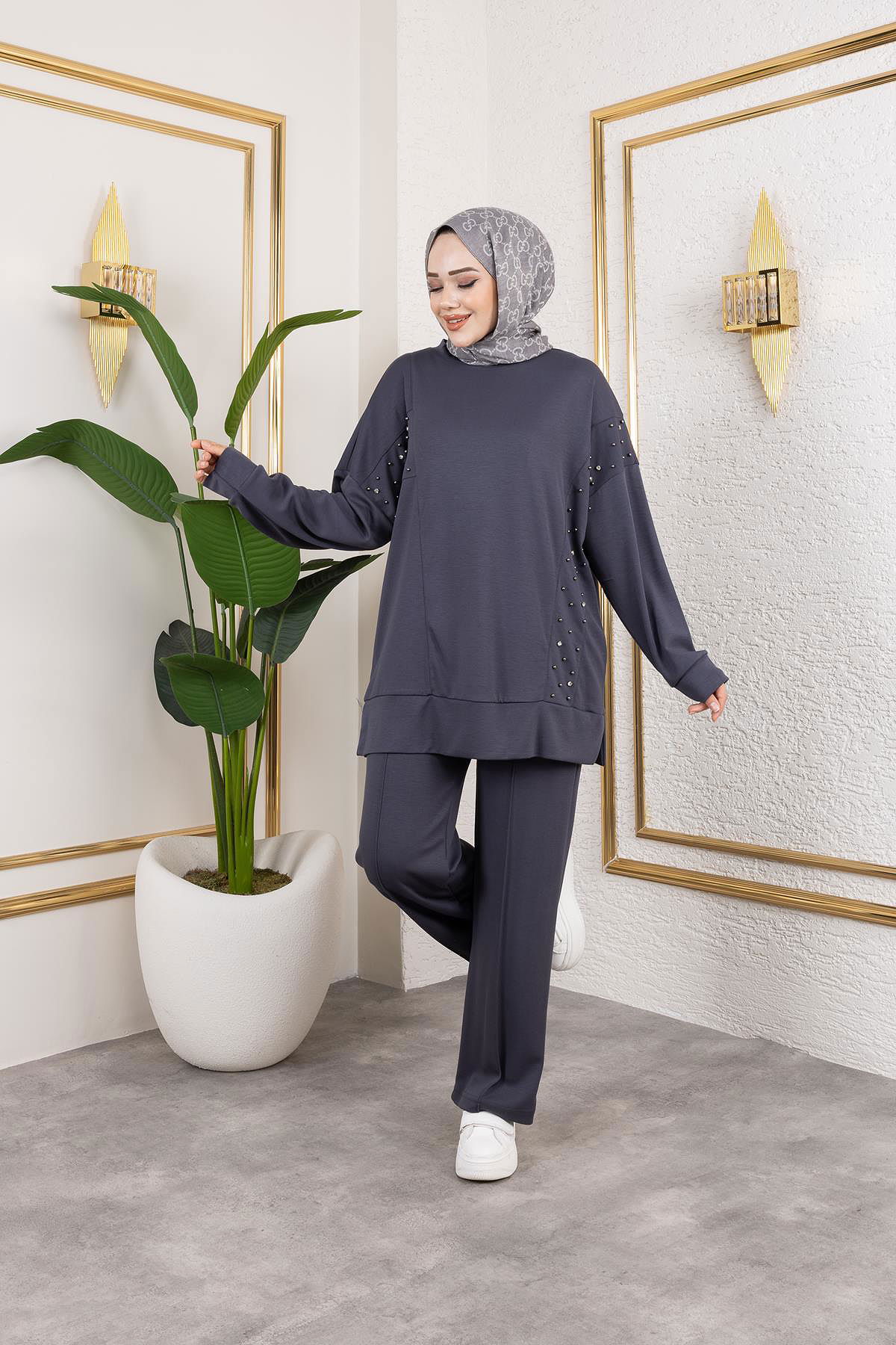 İnci Ve Taş Detaylı Oyşo İkili Takım-5060 Antrasit