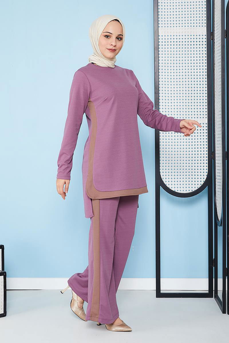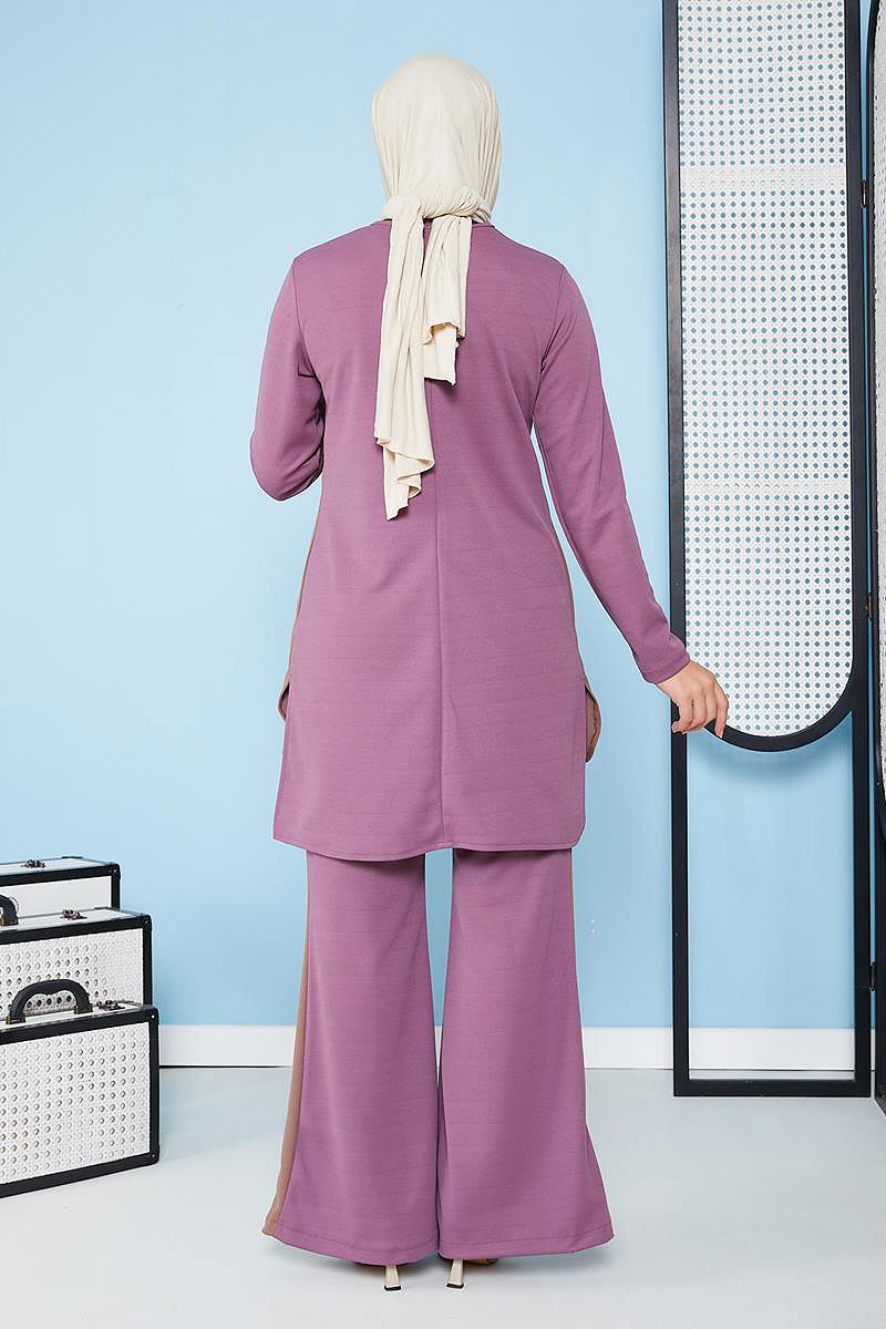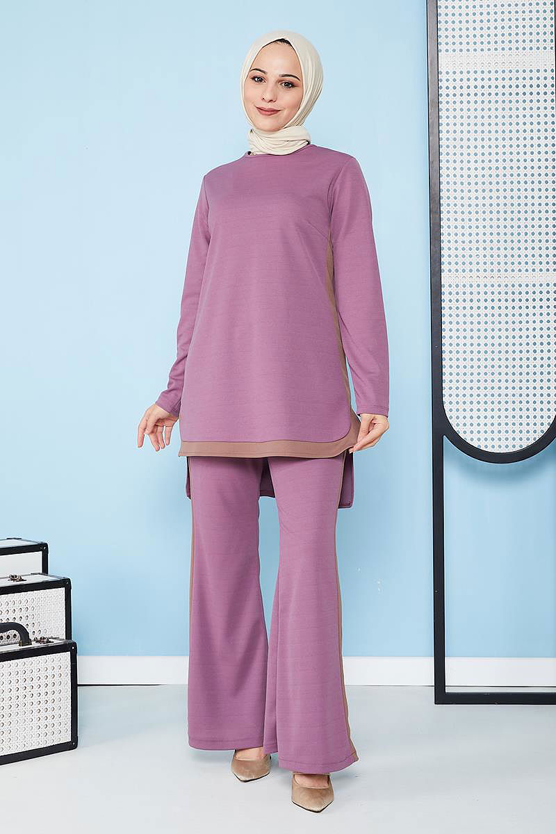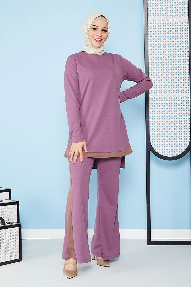 İspanyol Paça İkili Tesettür Kombin-5021 Gülkurusu