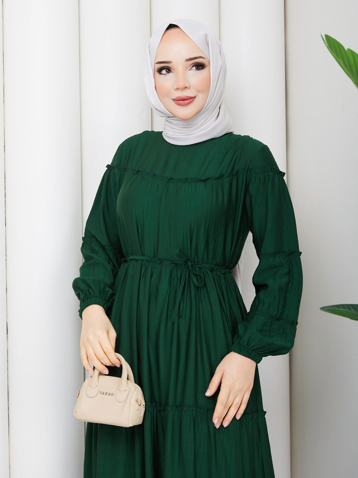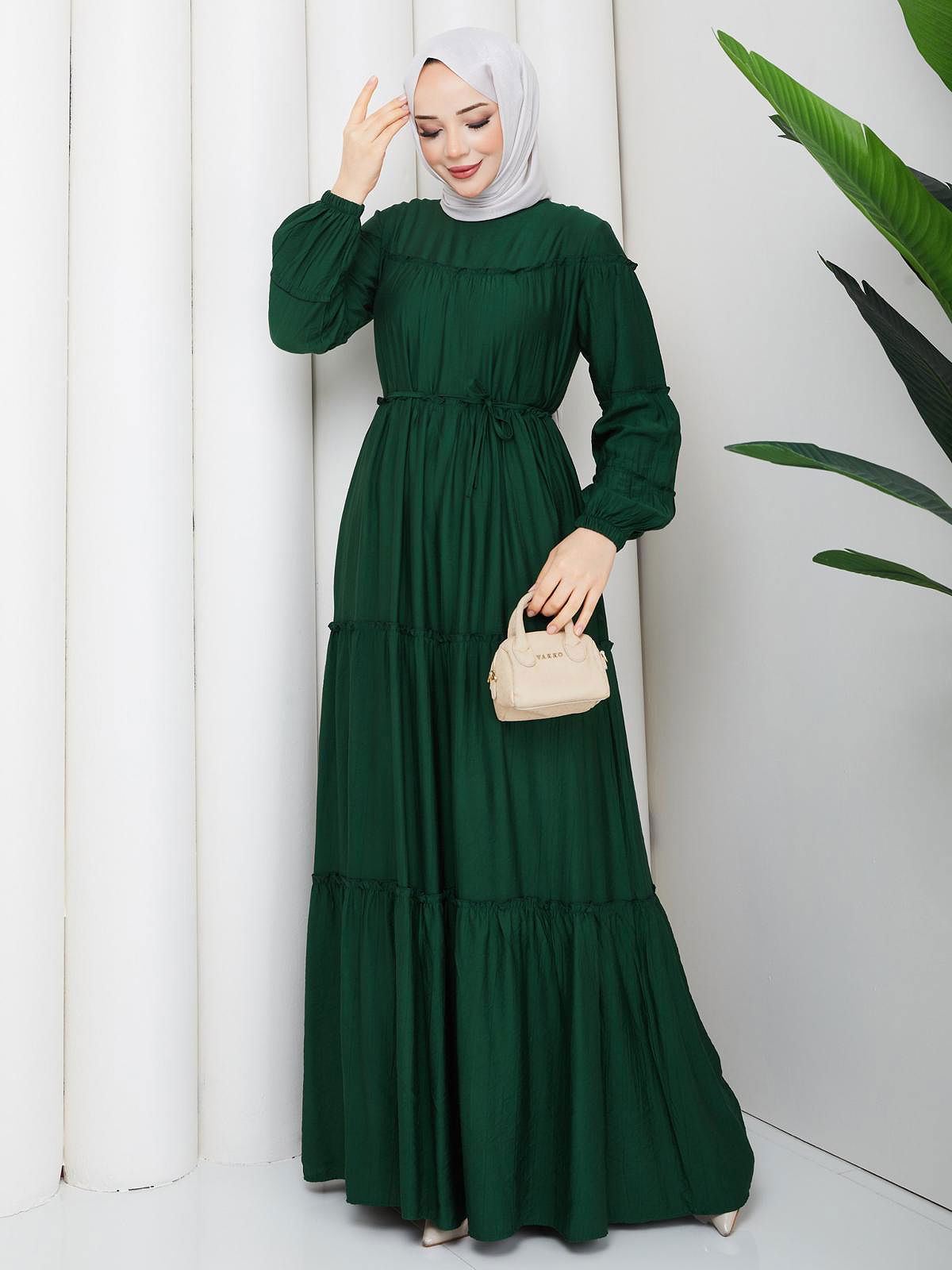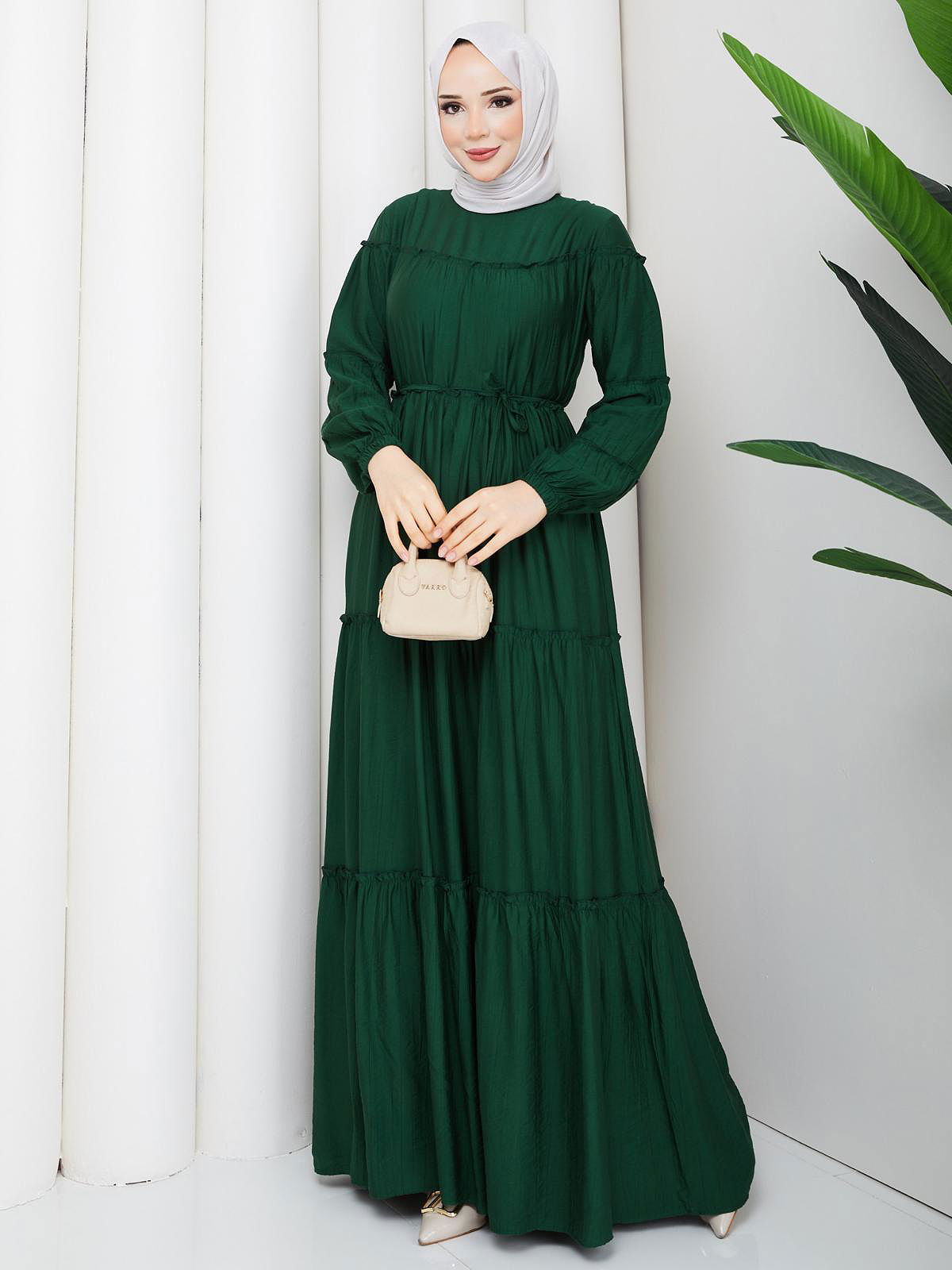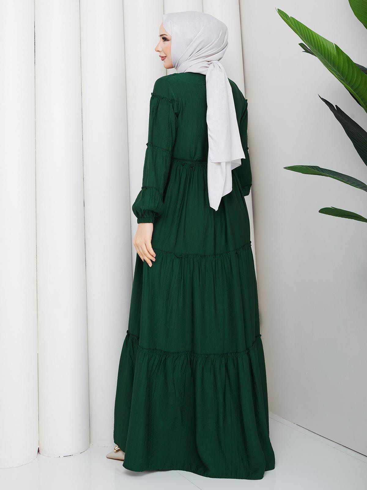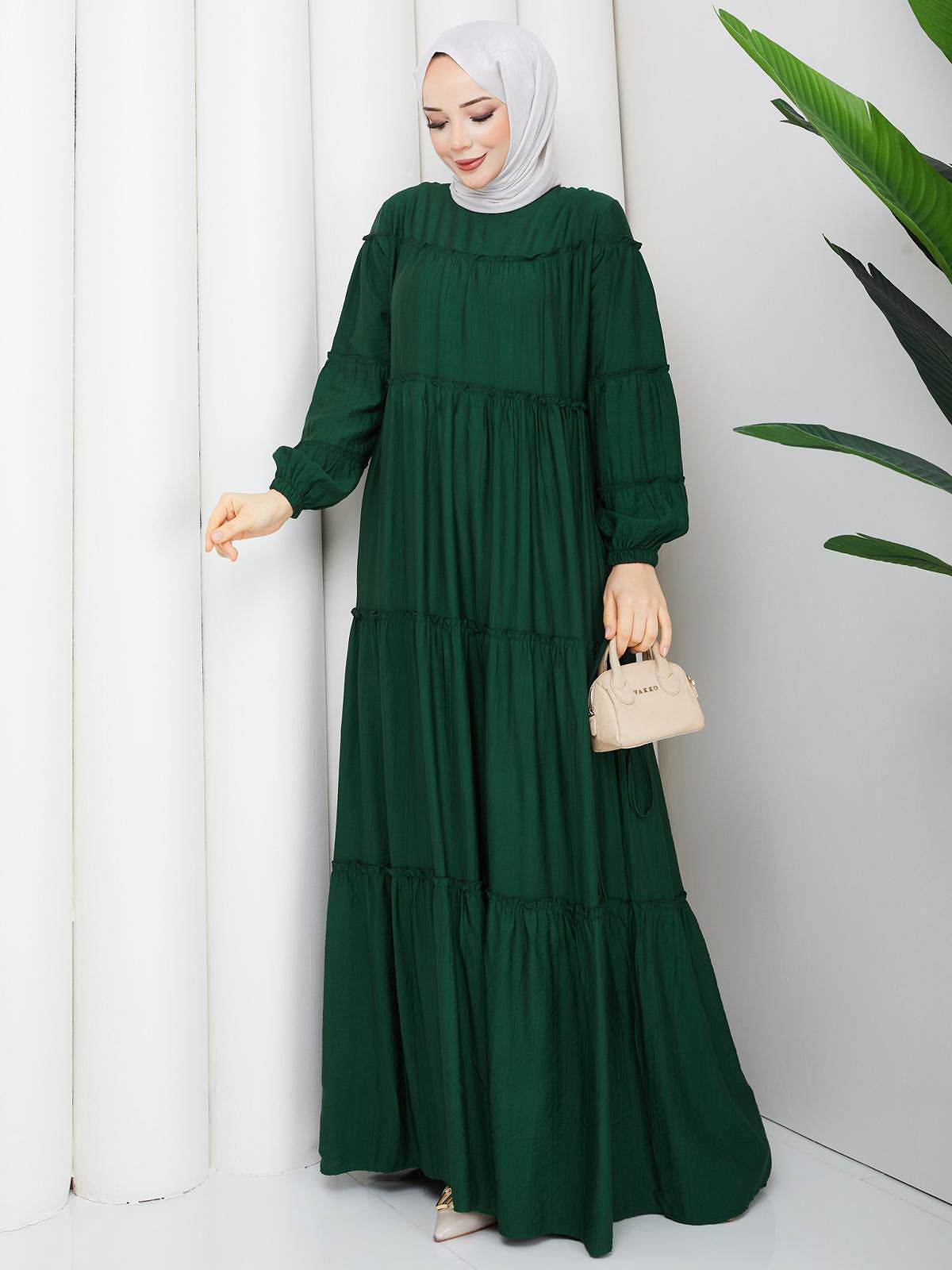 Kat Kat Çilek Kloş Elbise-5160 Zümrütyeşili