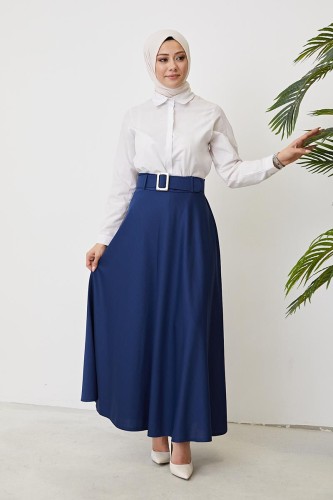 Kemerli Kloş Etek-3078 Gülkurusu