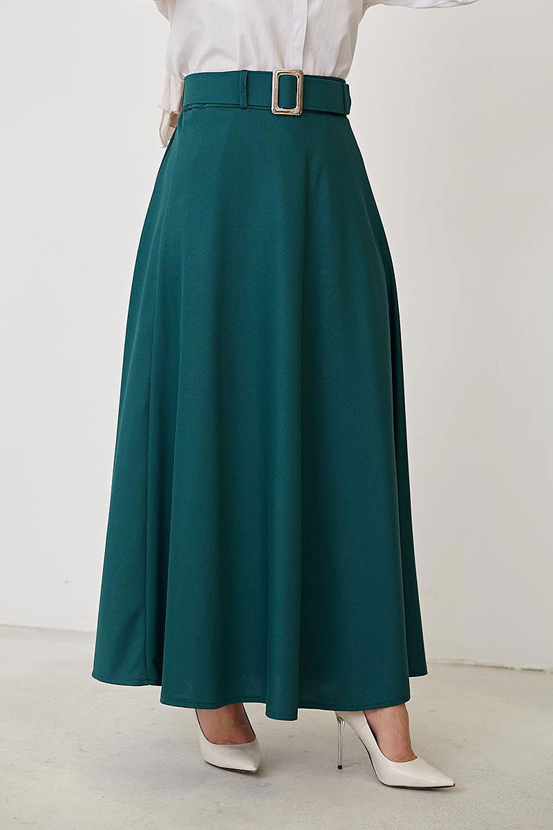 Kemerli Kloş Etek-3078 Zümrütyeşili