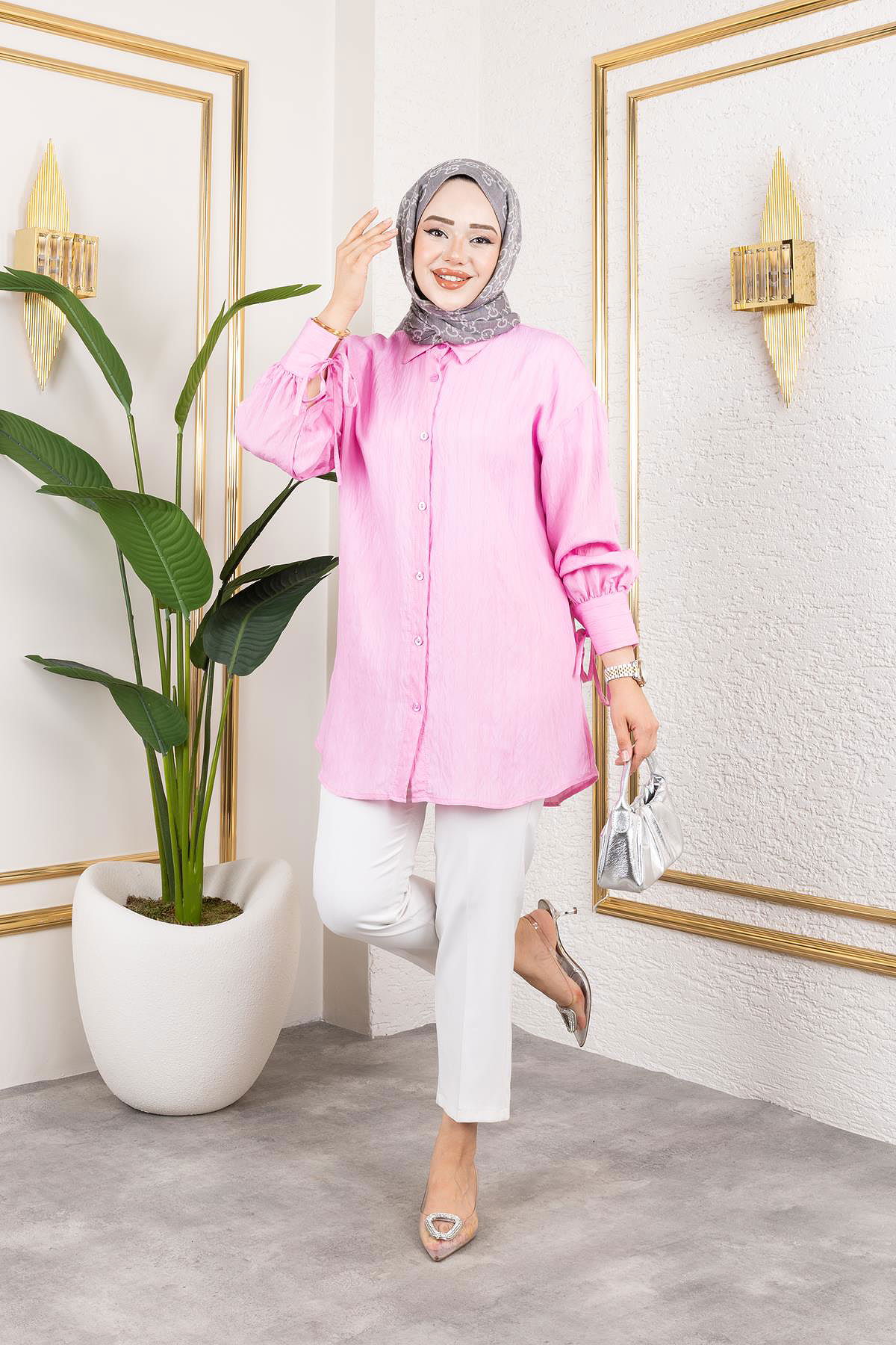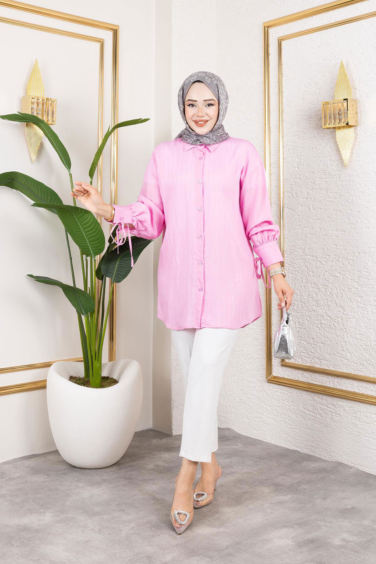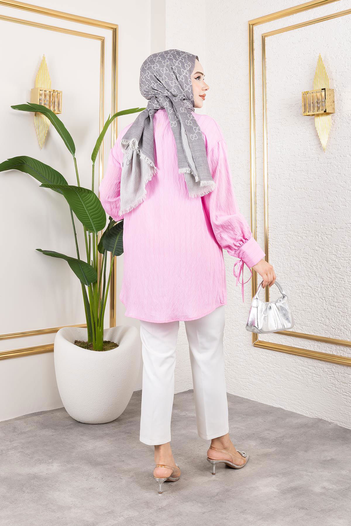 Kolları Bağcık Detaylı Tesettür Tunik-5218 Pembe