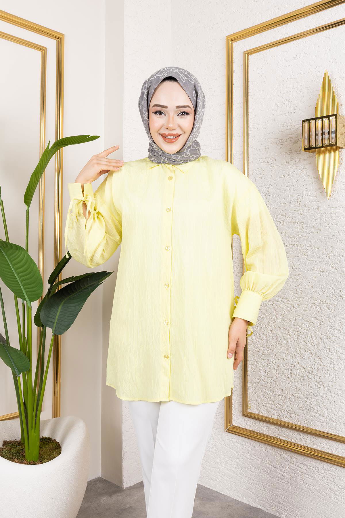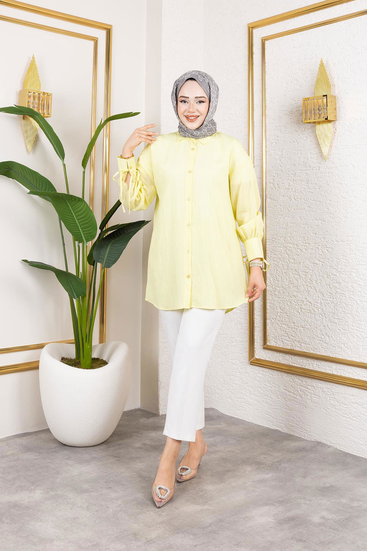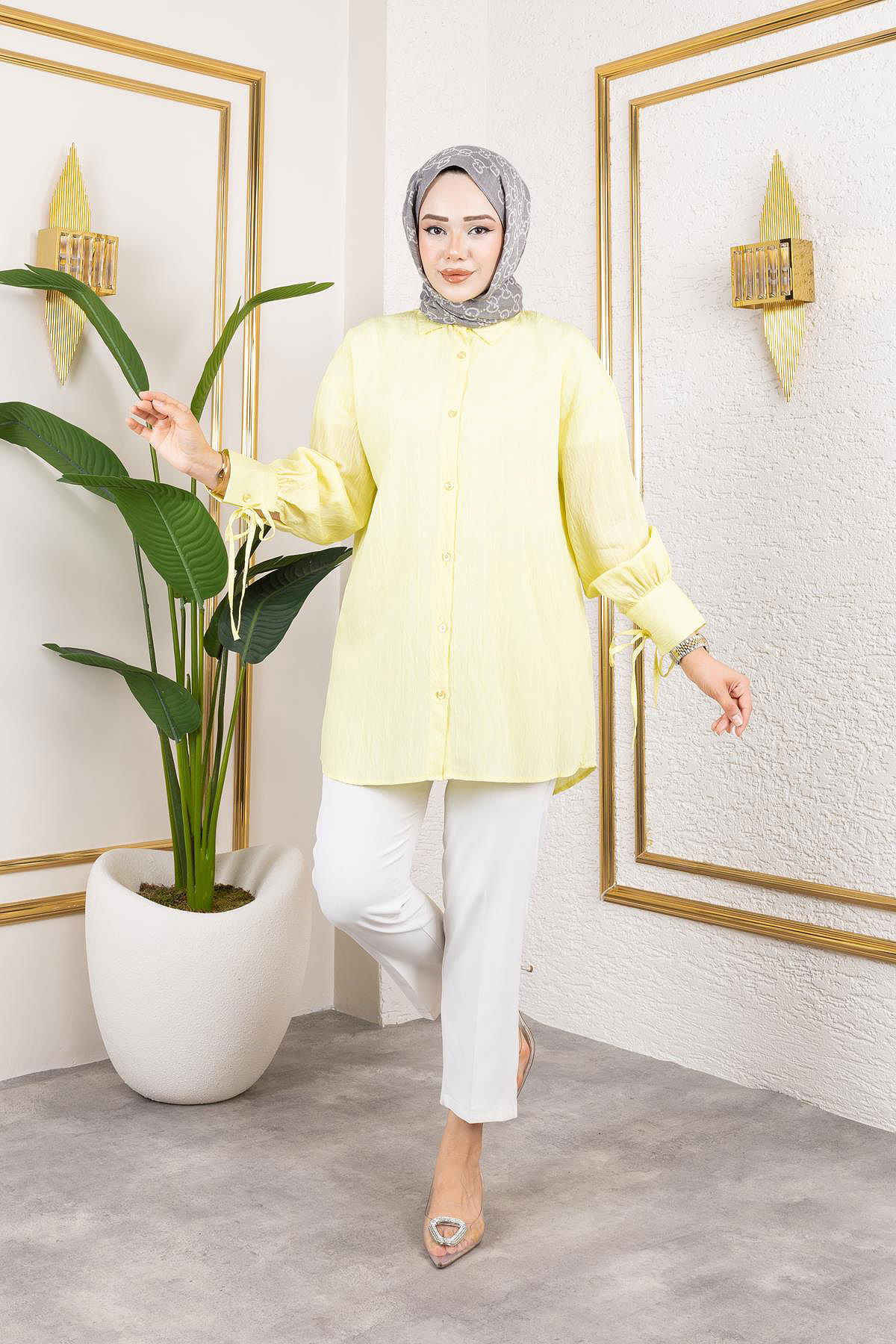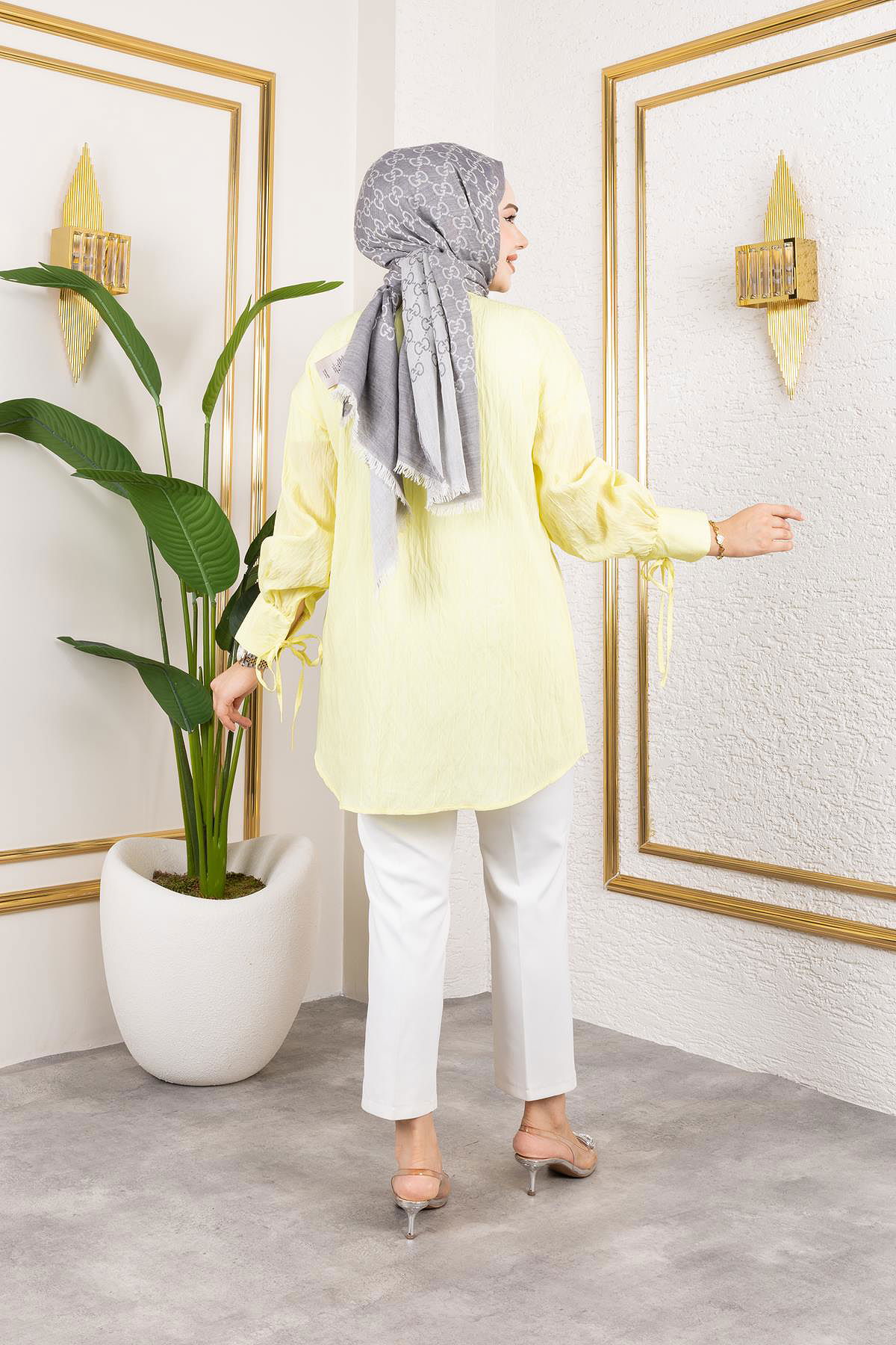 Kolları Bağcık Detaylı Tesettür Tunik-5218 Sarı