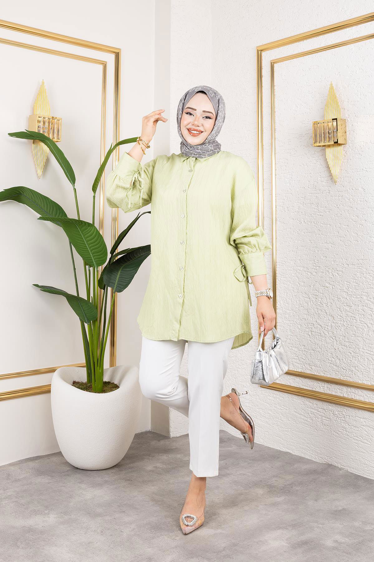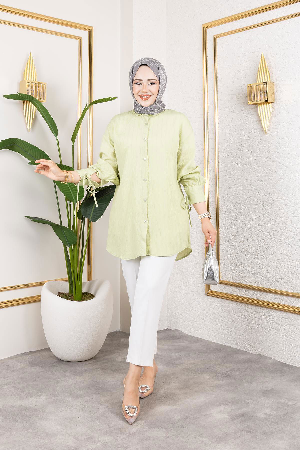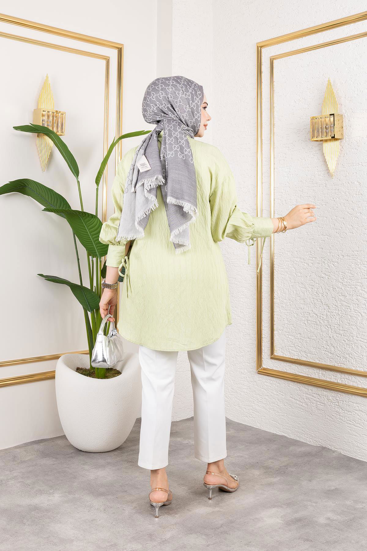 Kolları Bağcık Detaylı Tesettür Tunik-5218 Yeşil