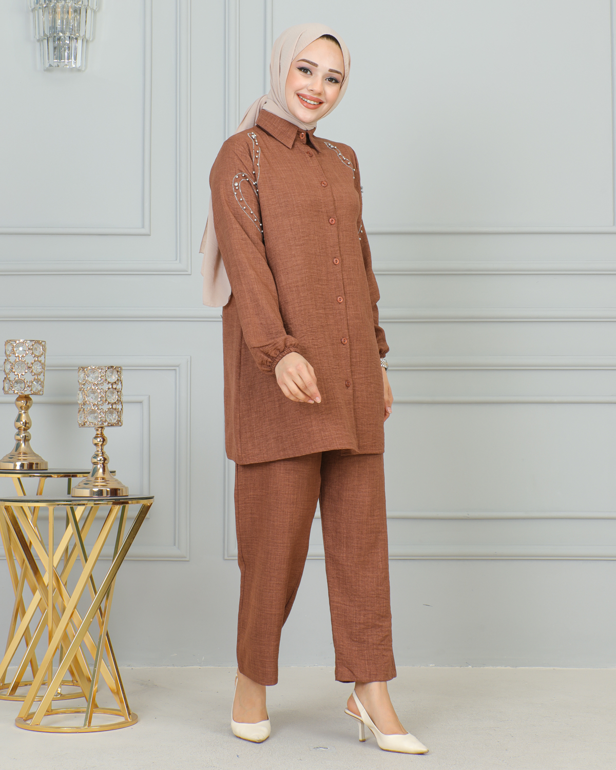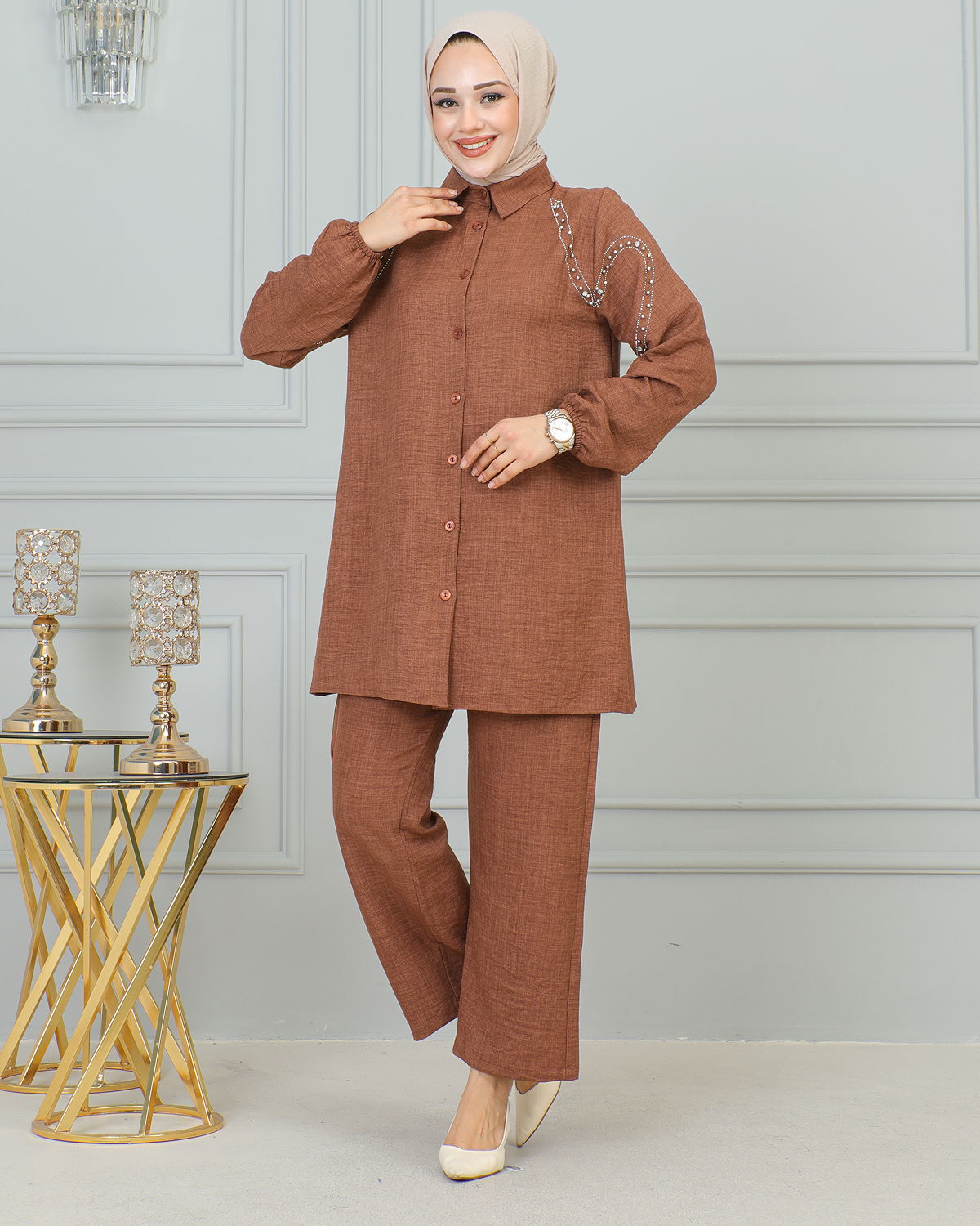 Ürün Özelliği : Yeni sezon tesettür moda ürünüdür. Ön düğmeler aktiftir.Kolları lastiklidir. .Pantolon beli lastiklidir .Ürün renginde konsept çekimlerinden dolayı ton farklılığı olabilir.
