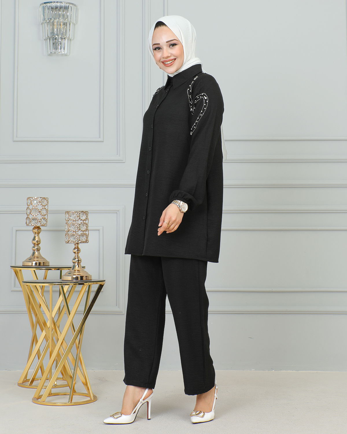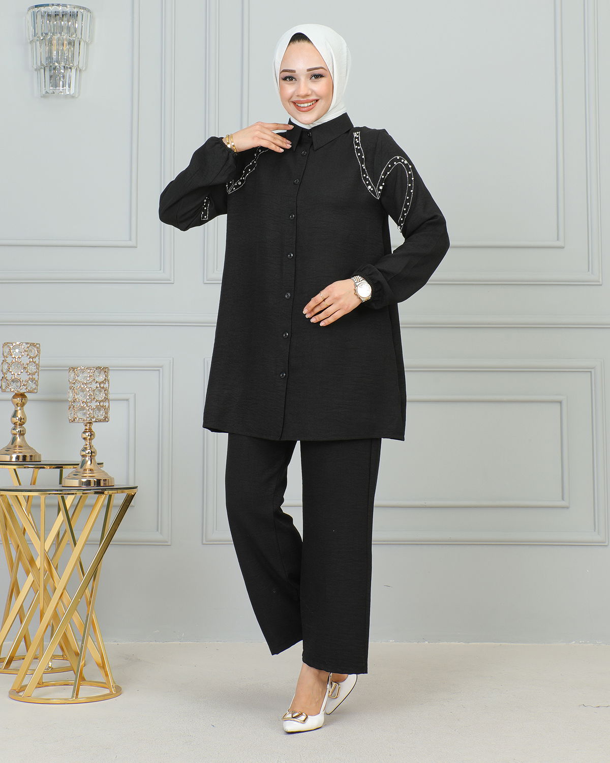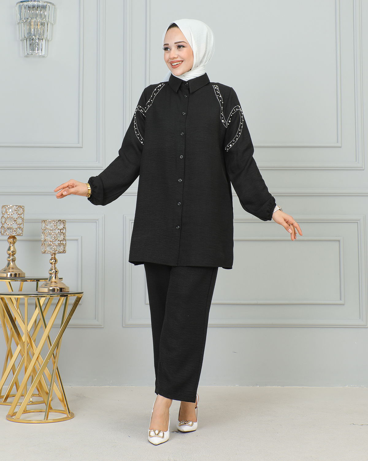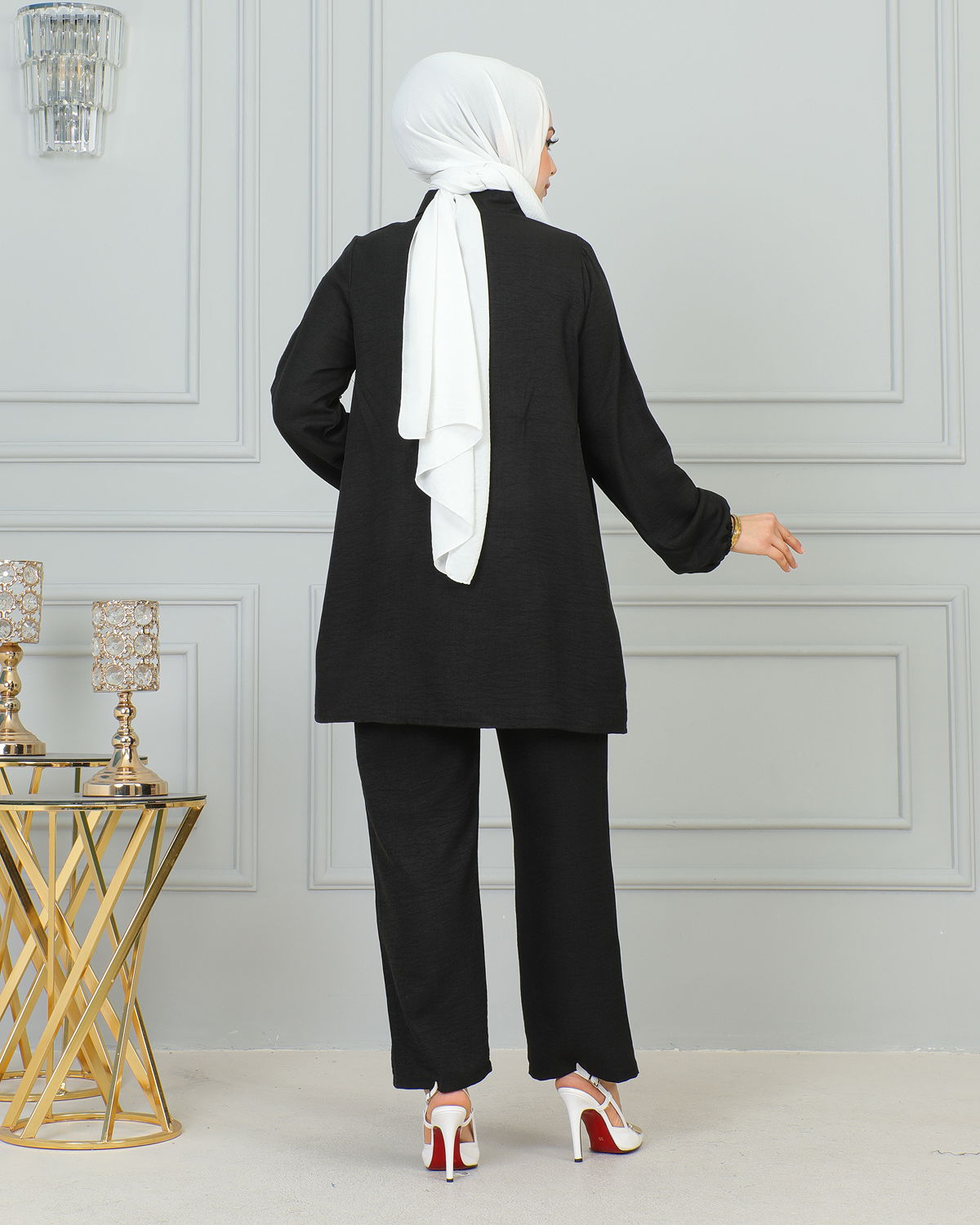 Ürün Özelliği : Yeni sezon tesettür moda ürünüdür. Ön düğmeler aktiftir.Kolları lastiklidir. .Pantolon beli lastiklidir .Ürün renginde konsept çekimlerinden dolayı ton farklılığı olabilir.