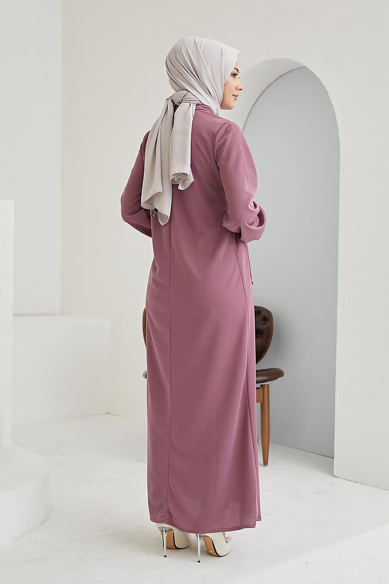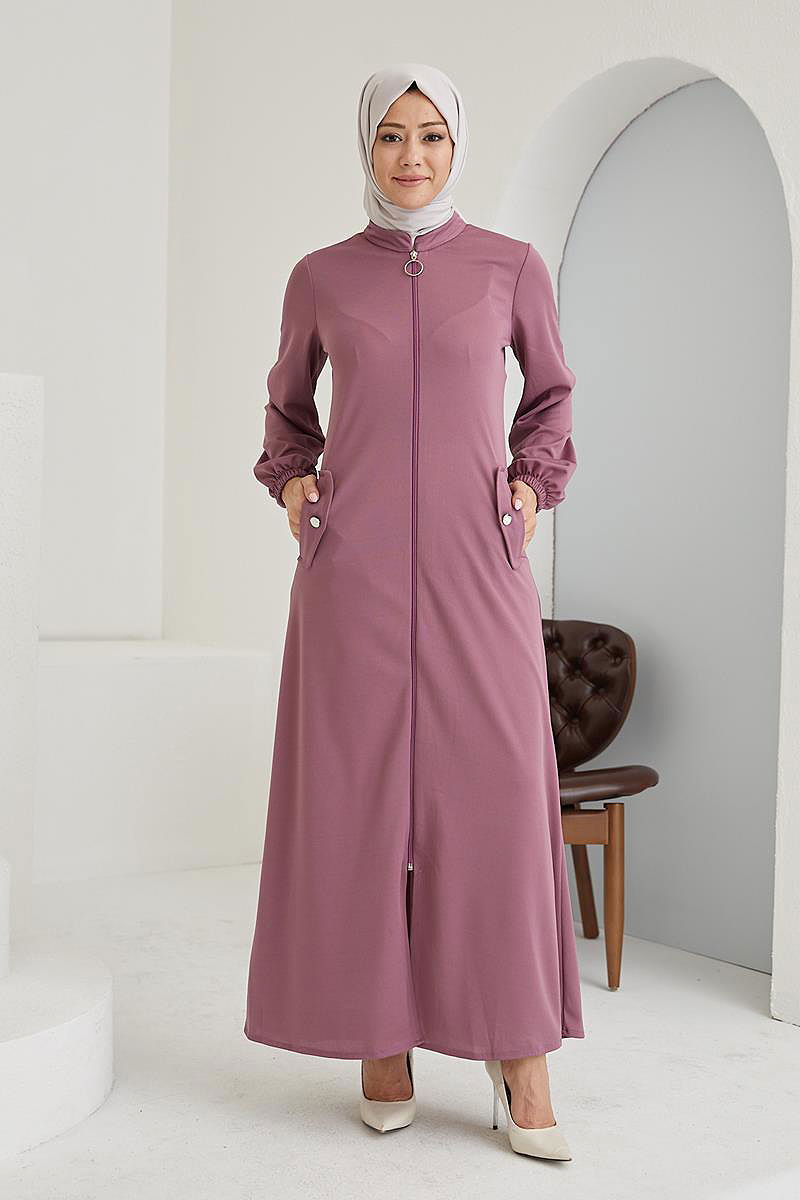 Kolu Lastikli Fermuarlı Ferace-3053 Gülkurusu