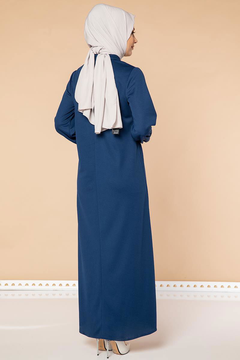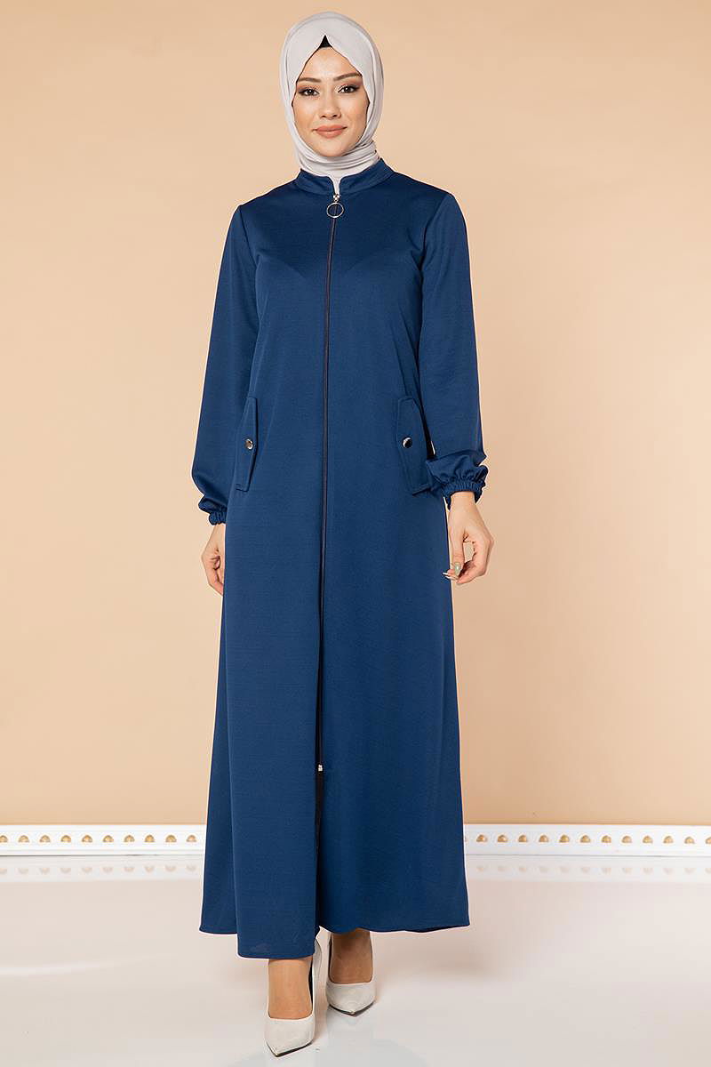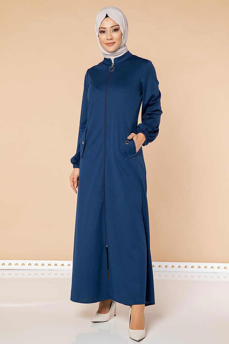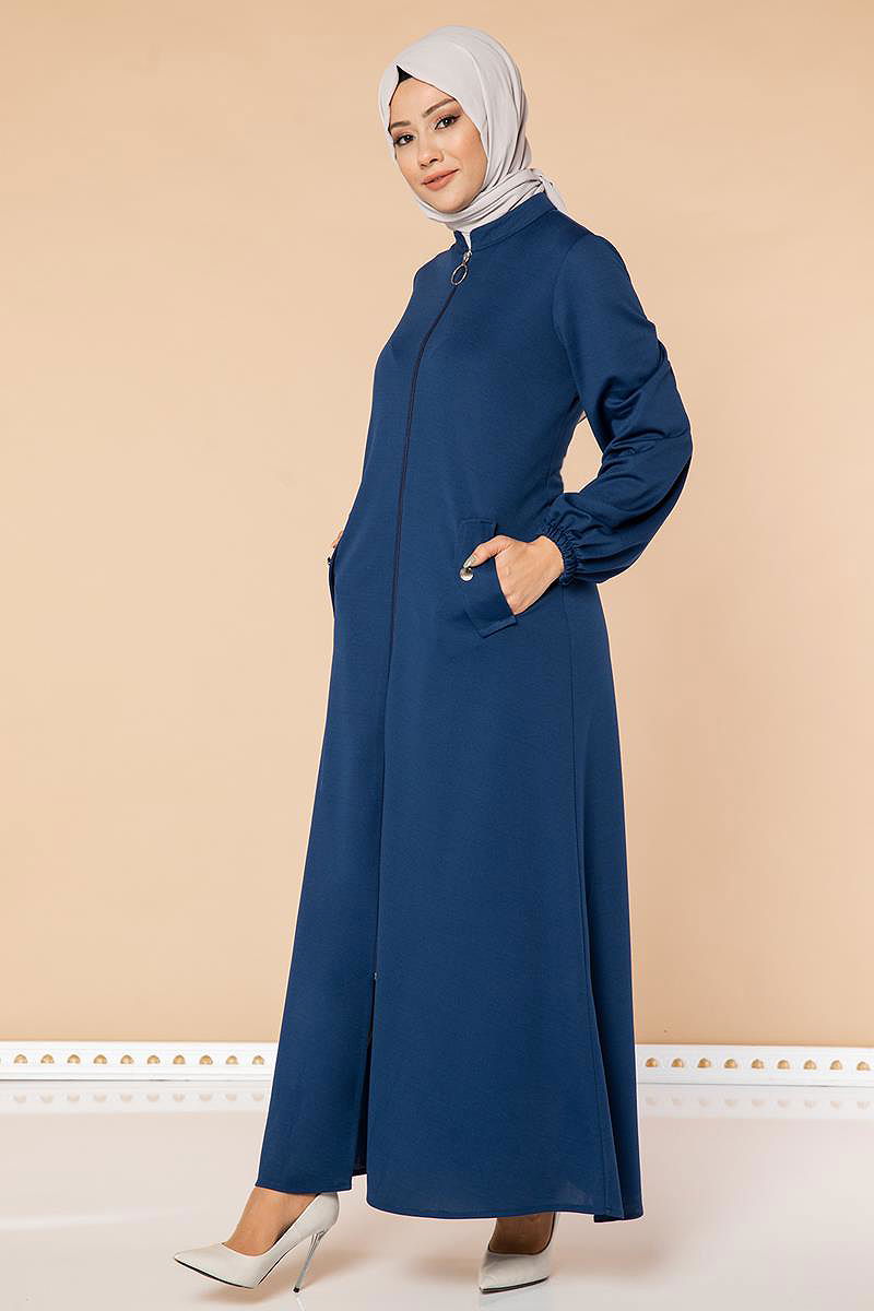 Kolu Lastikli Fermuarlı Ferace-3053 İndigo