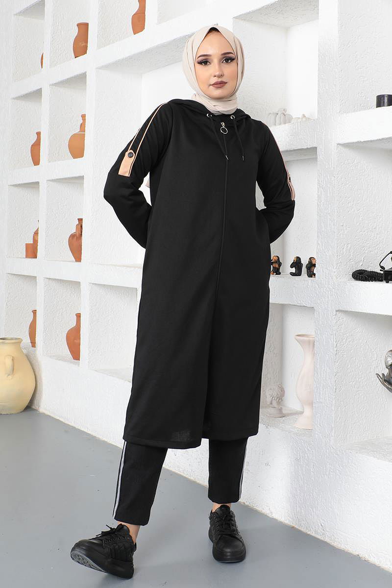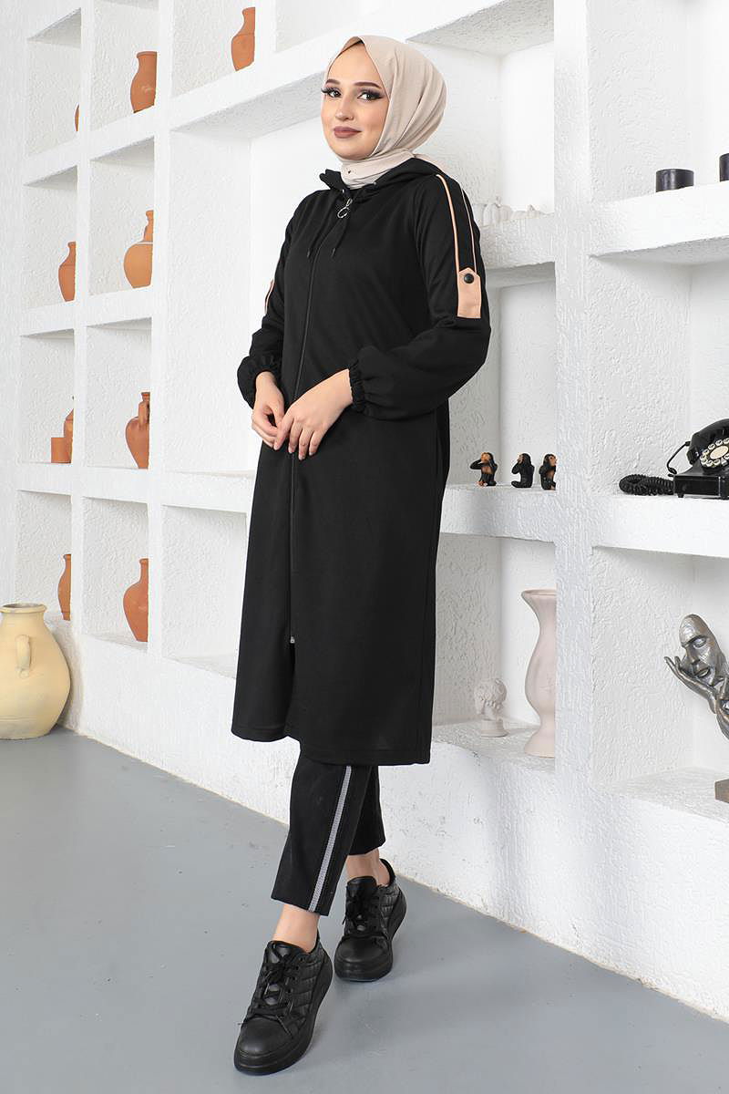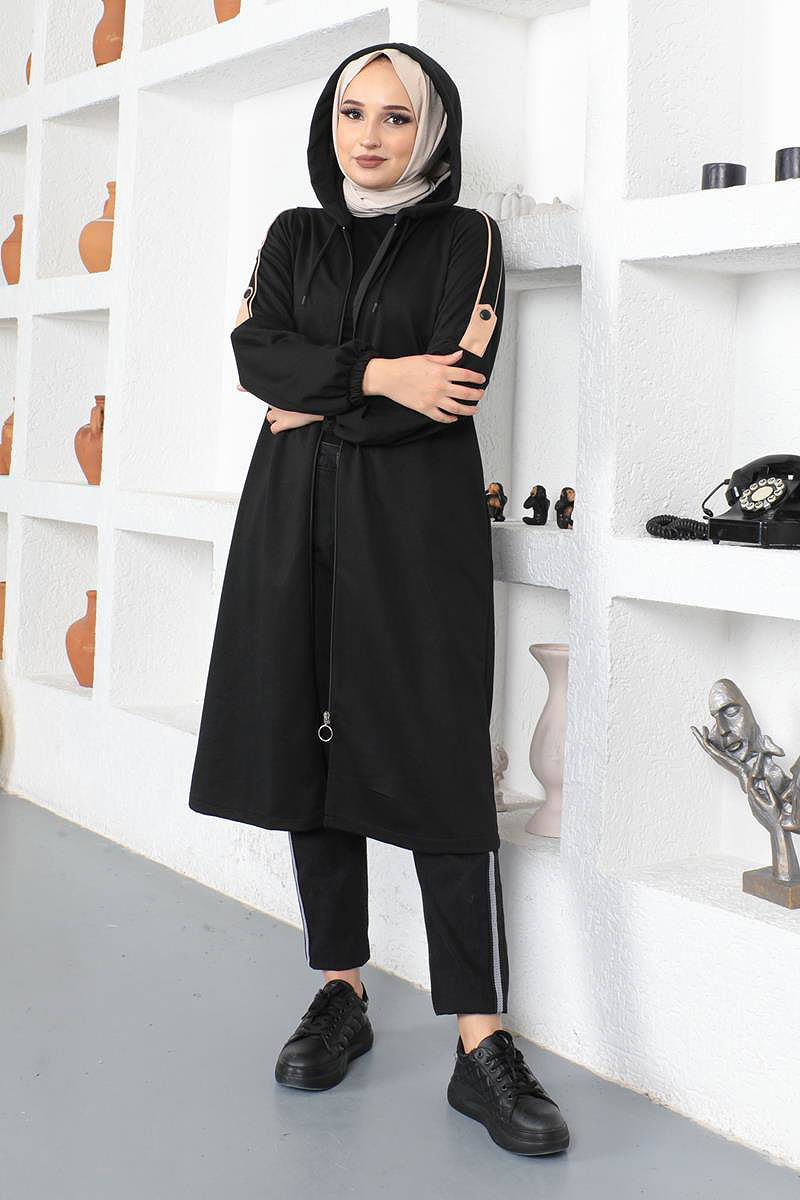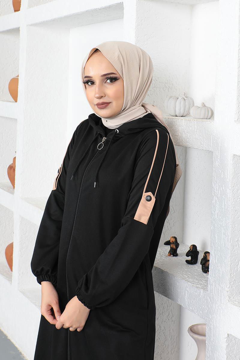 Kolu Lastikli Kapüşonlu Tesettür Kap-3113 Siyah