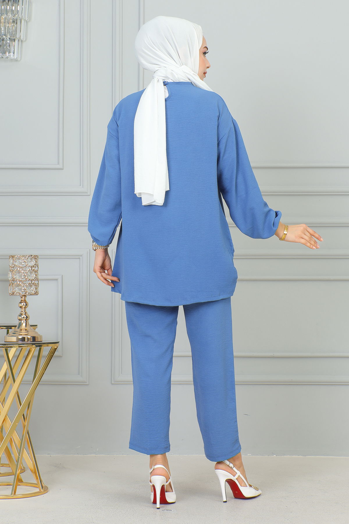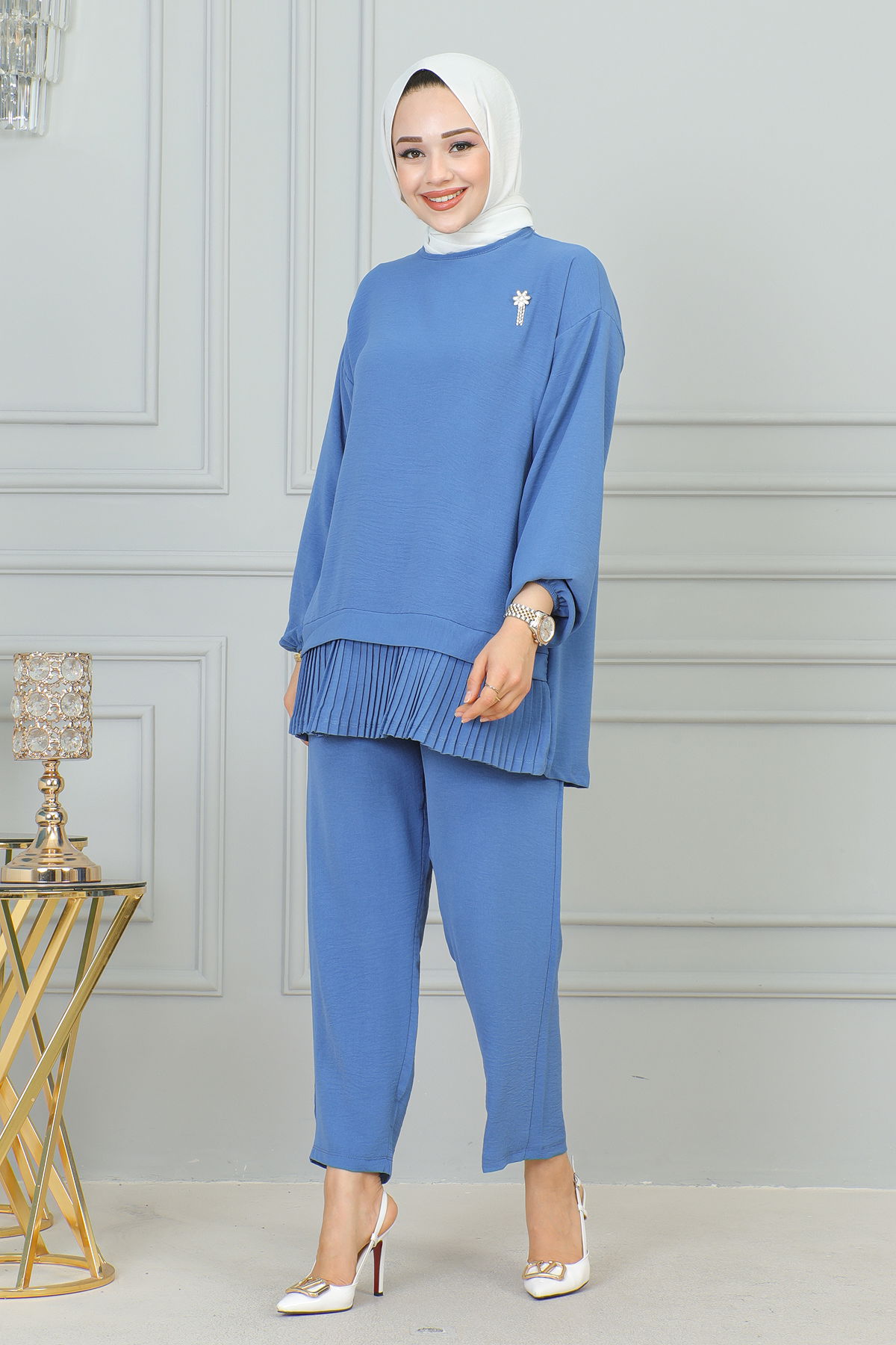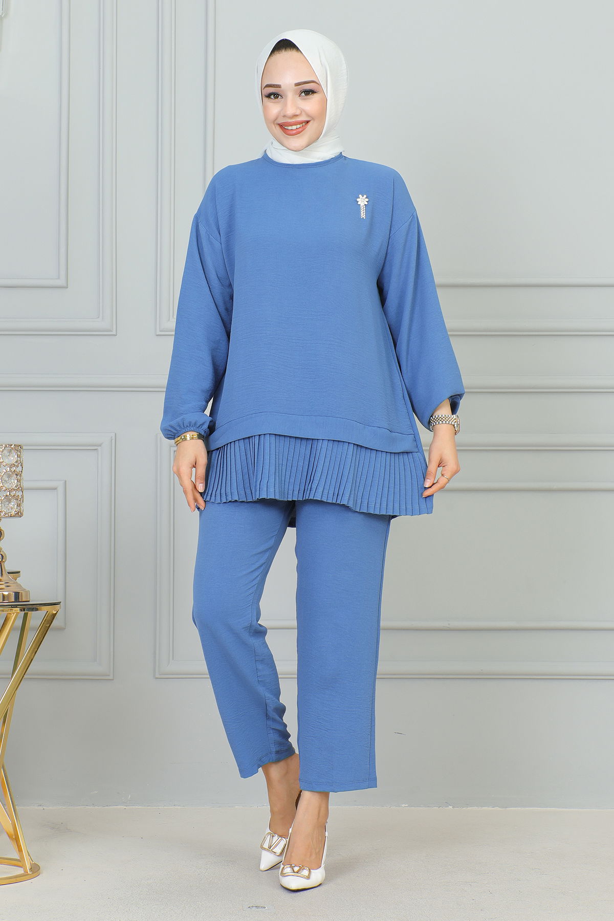 Kolu Lastikli Piliseli Broşlu İkili takım-3895 Bebe mavisi