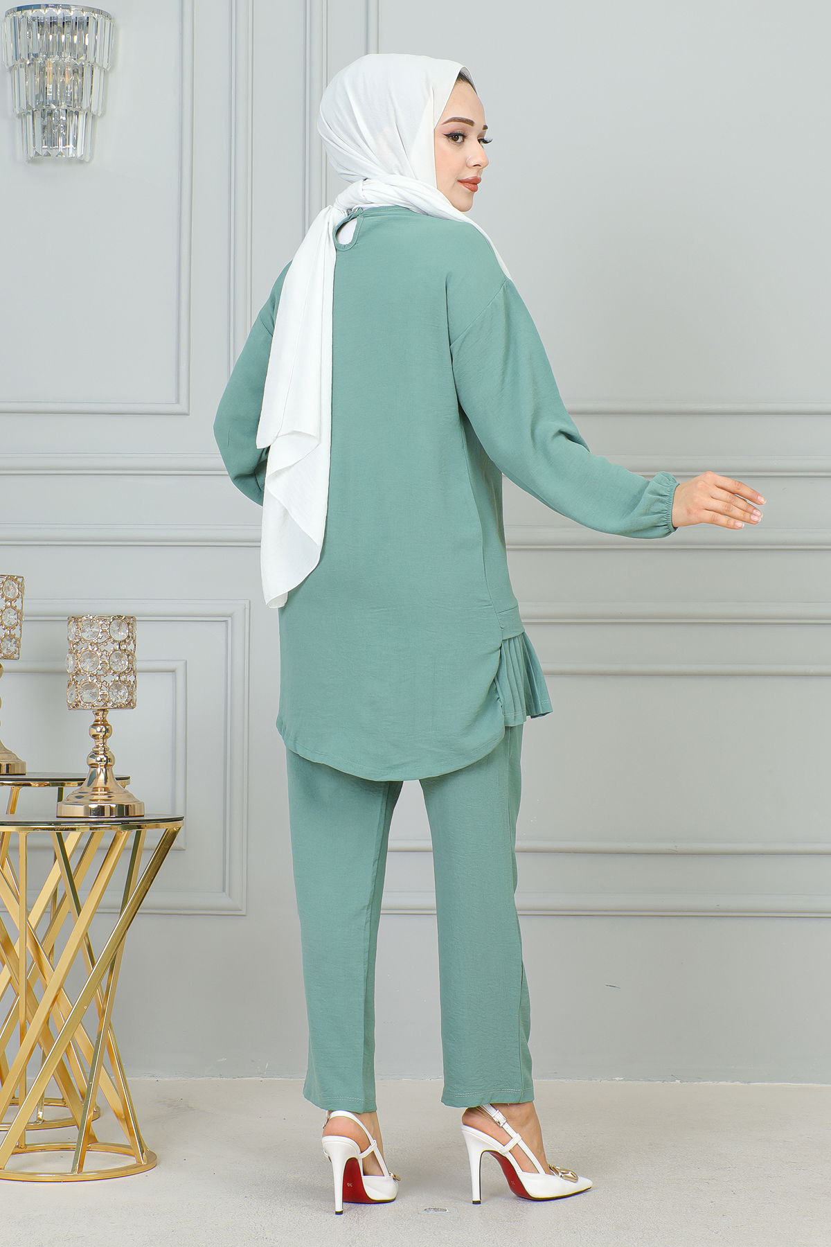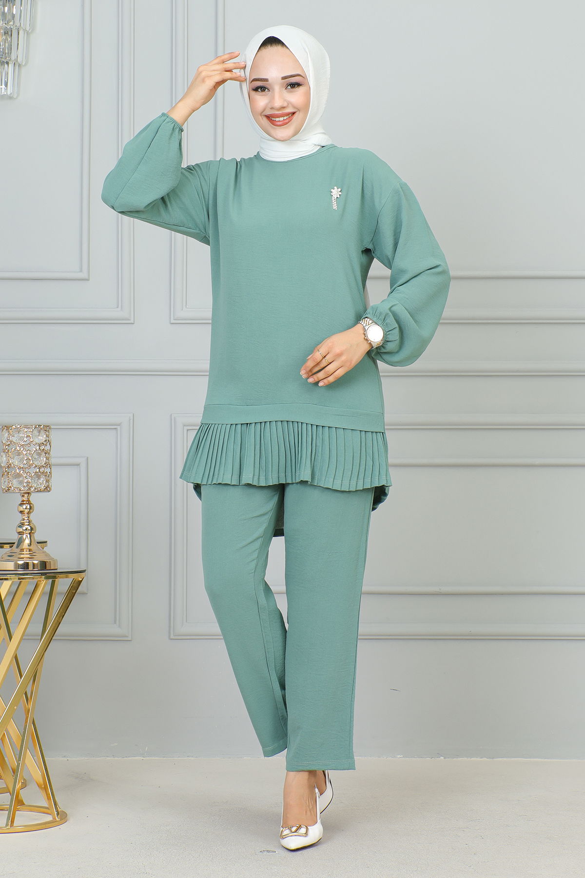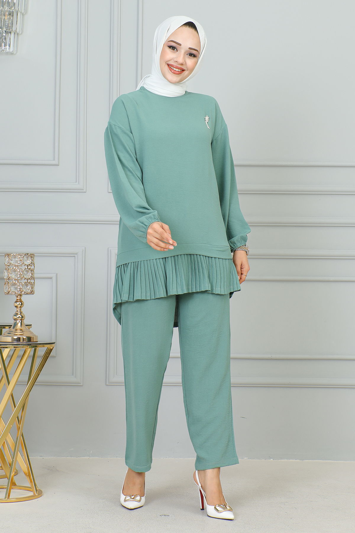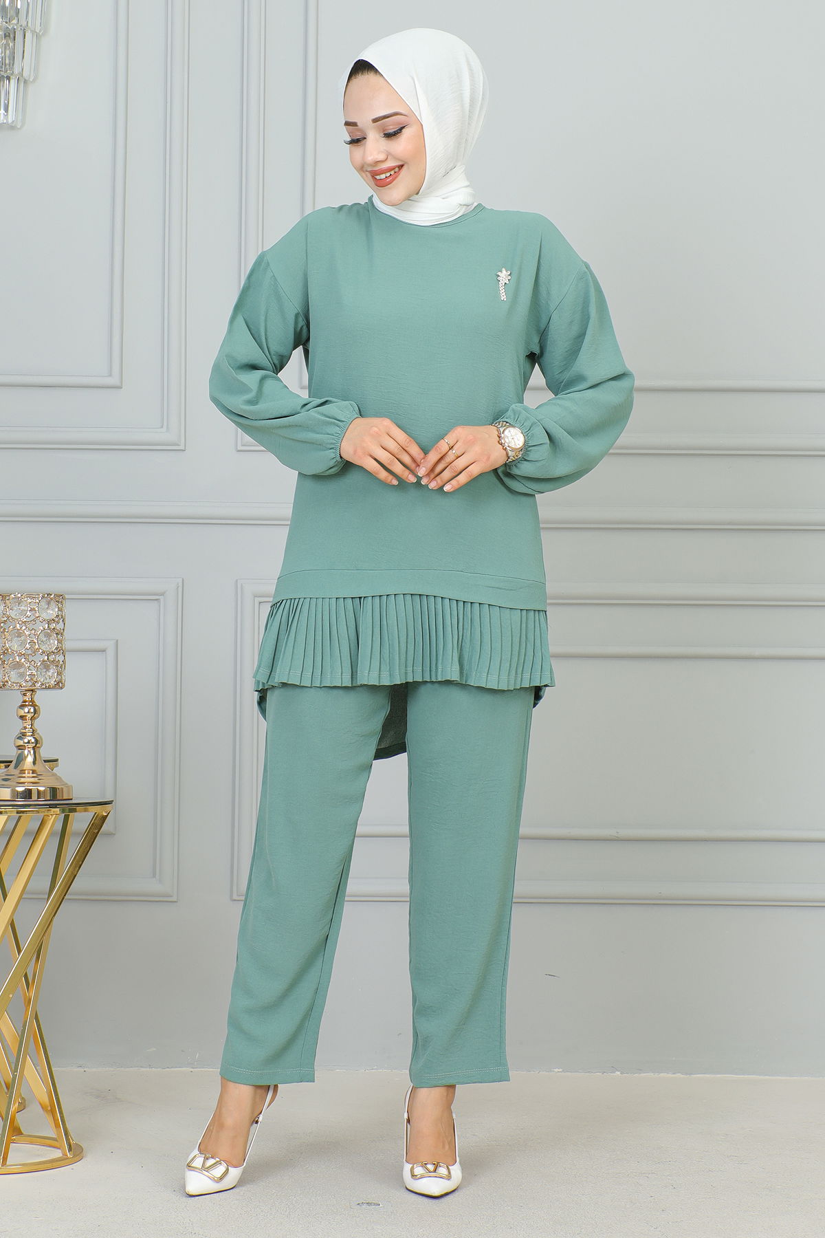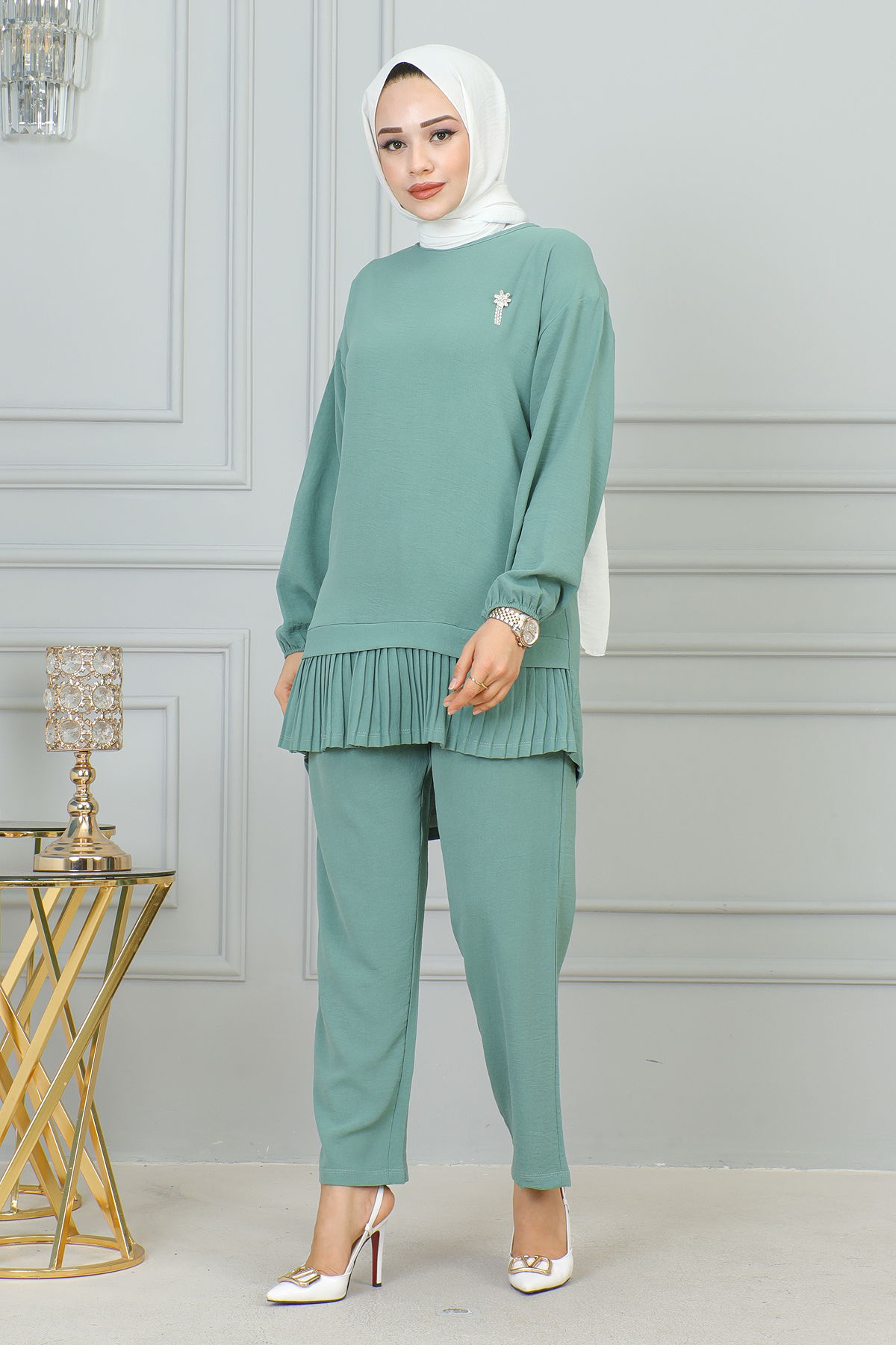 Kolu Lastikli Piliseli Broşlu İkili takım-3895 Mintyeşili