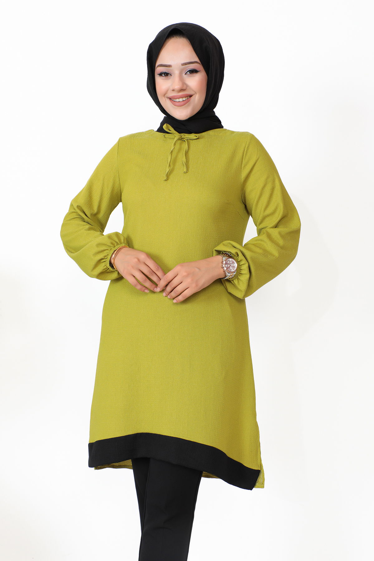 Kolu Lastikli Tesettür Tunik-3160 Fıstıkyeşili