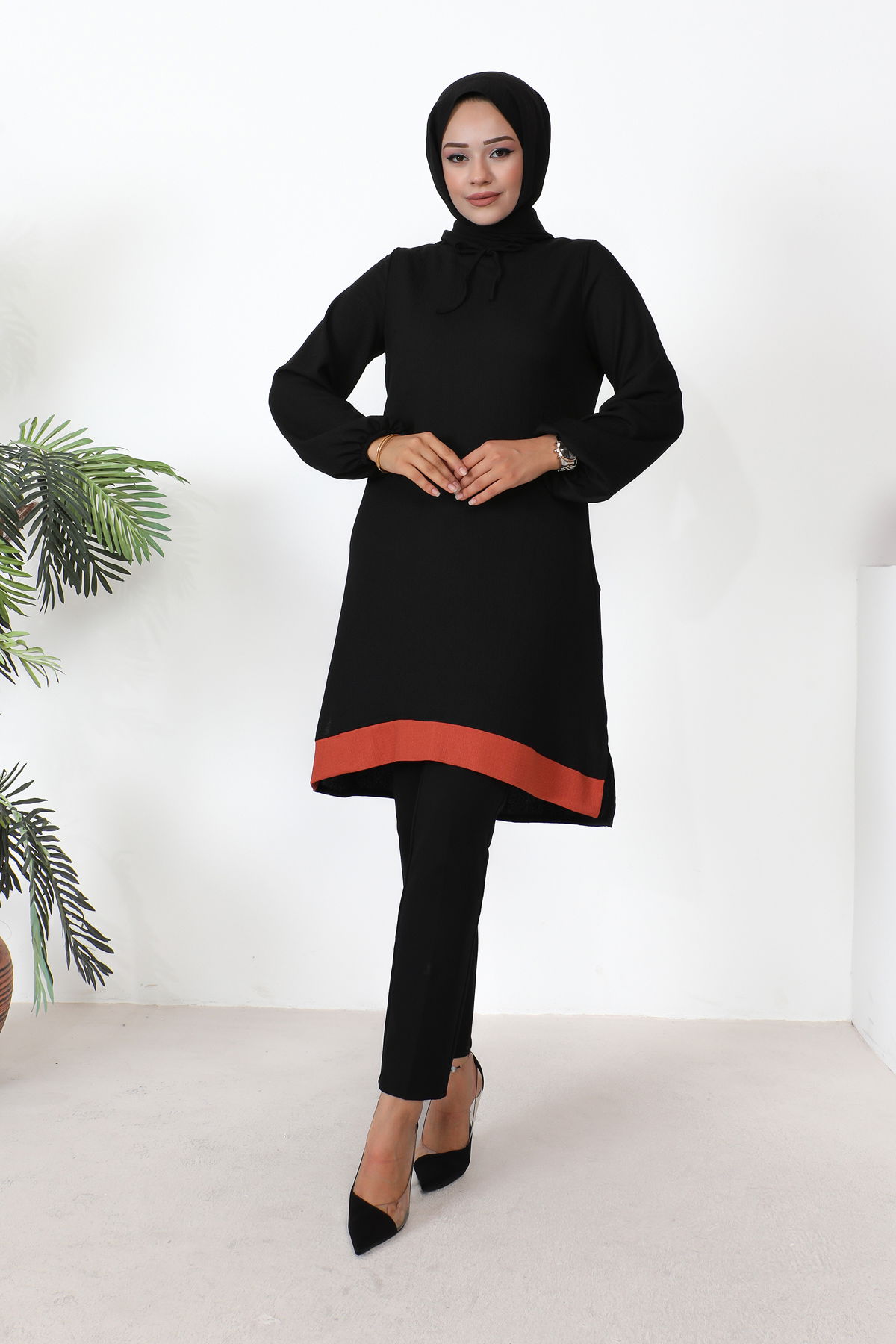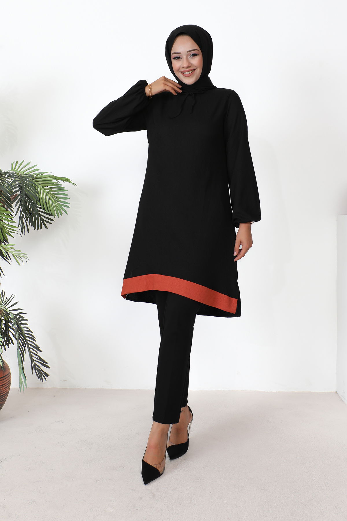 Kolu Lastikli Tesettür Tunik-3160 Siyah