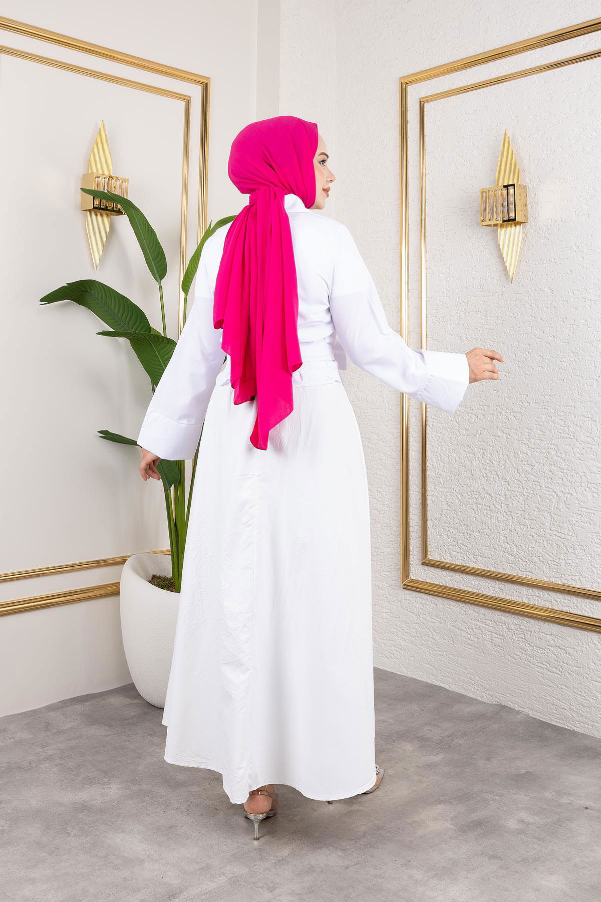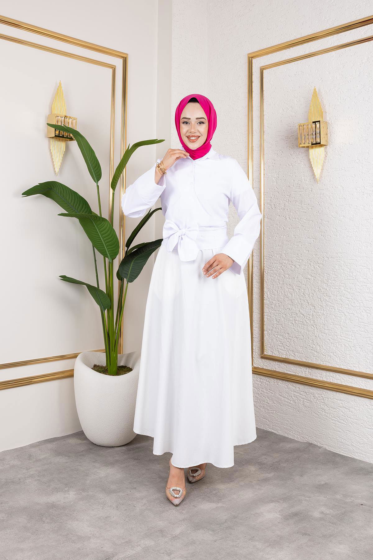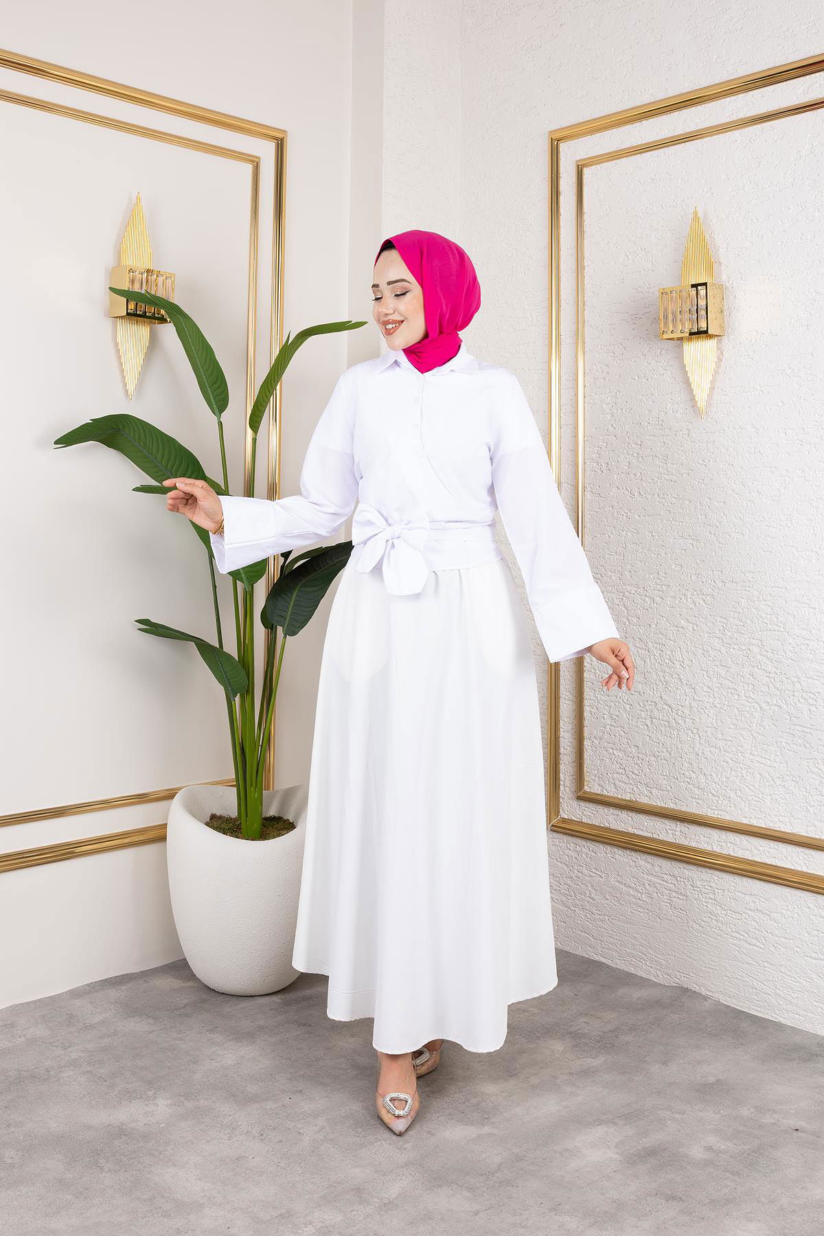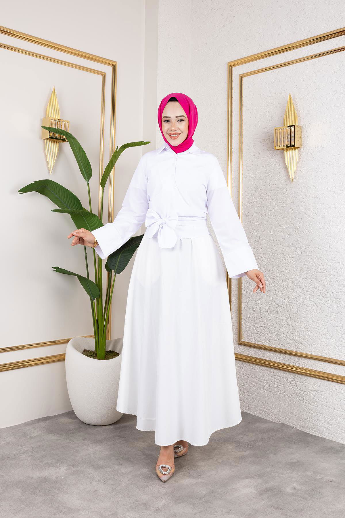 Kuşak Bağlamalı Gömlek-3040 Beyaz