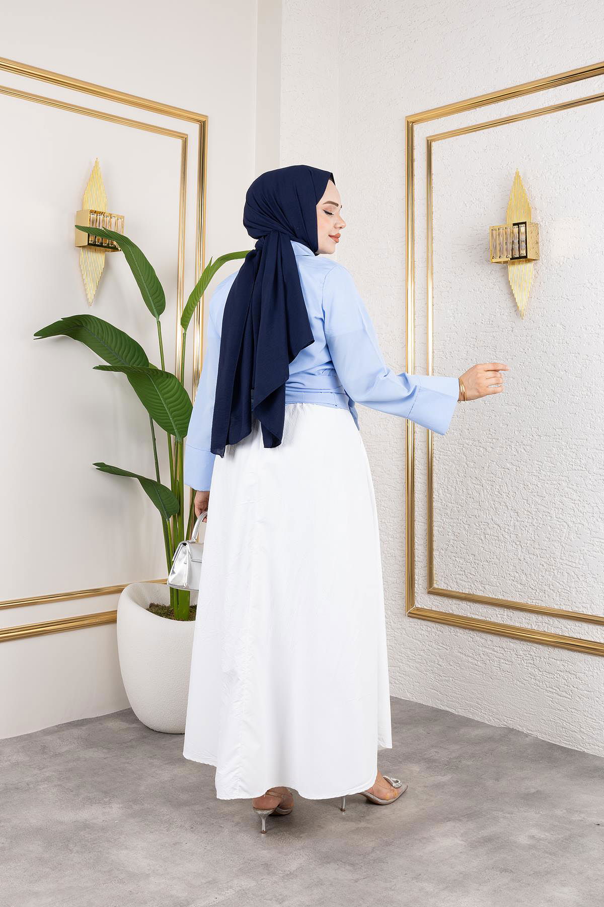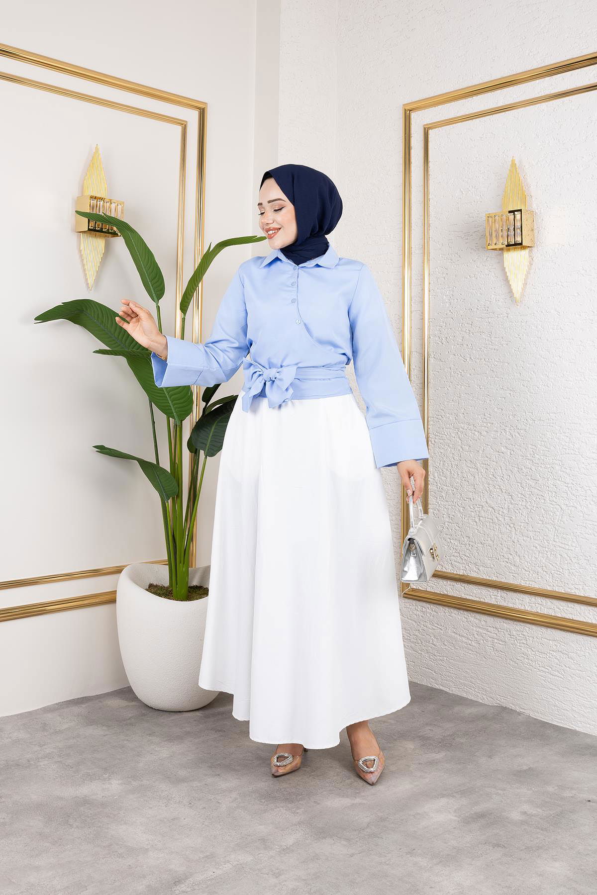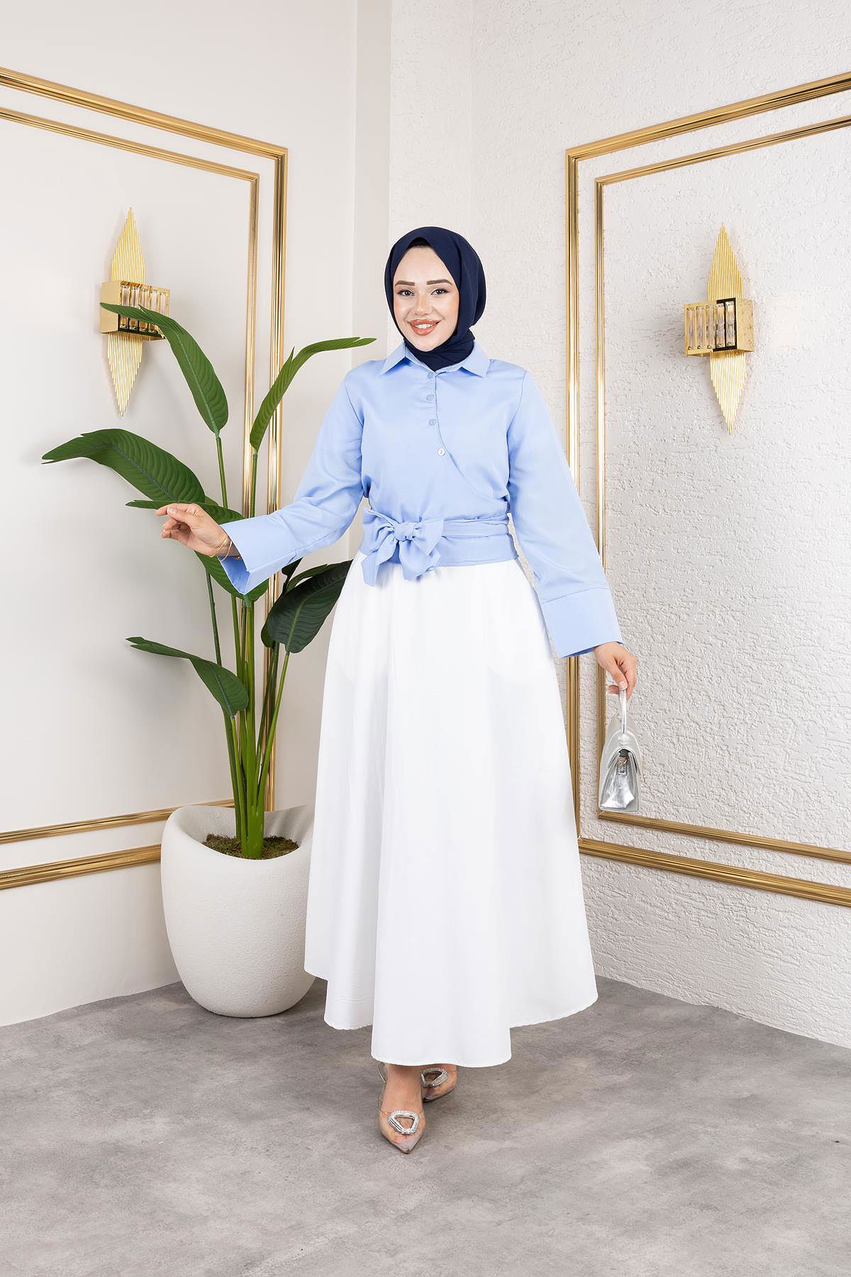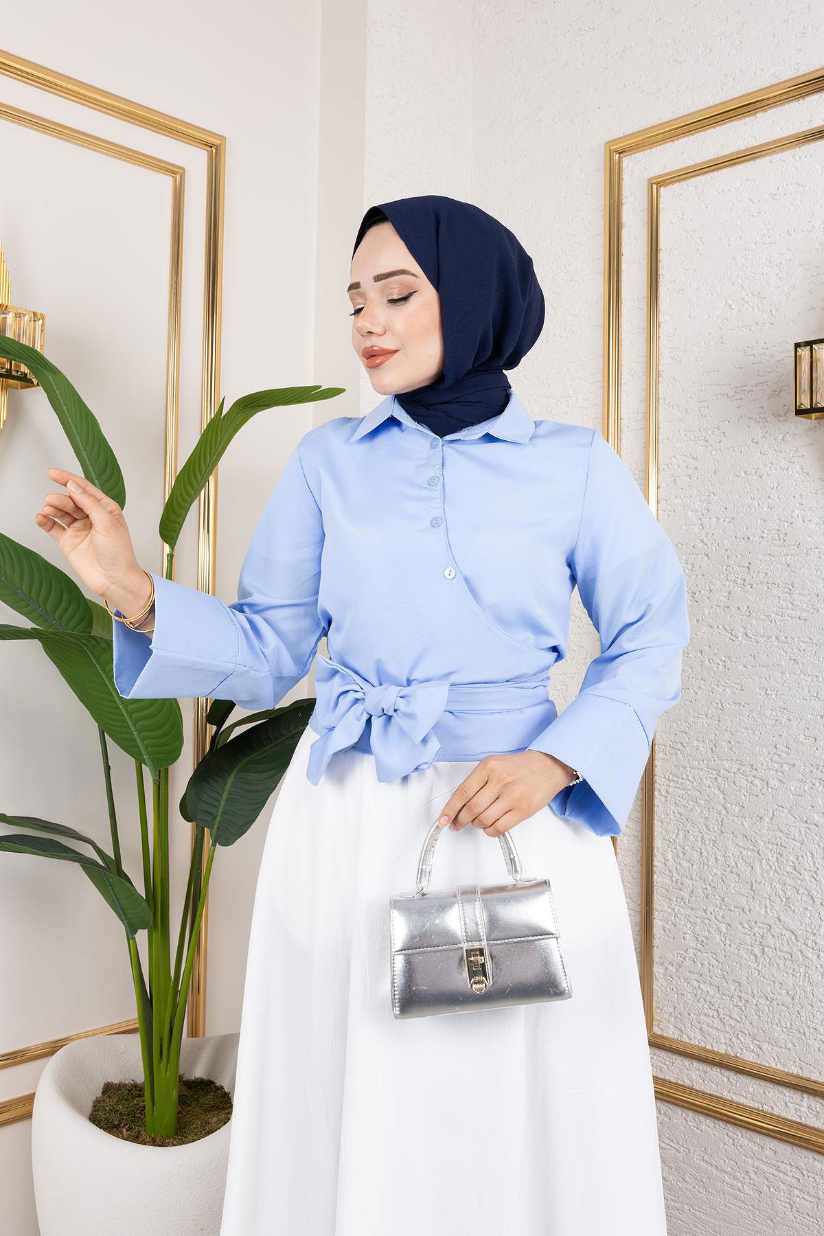 Kuşak Bağlamalı Gömlek-3040 Mavi