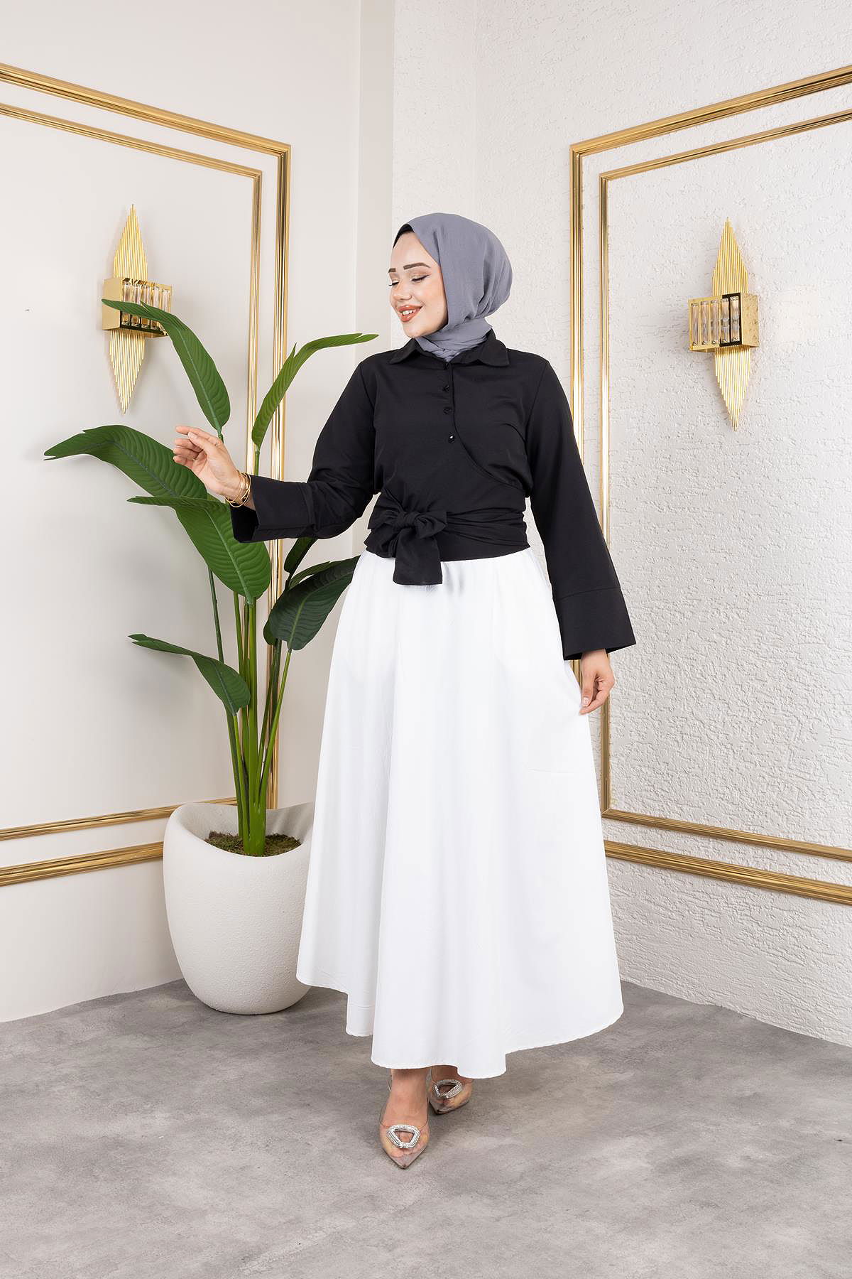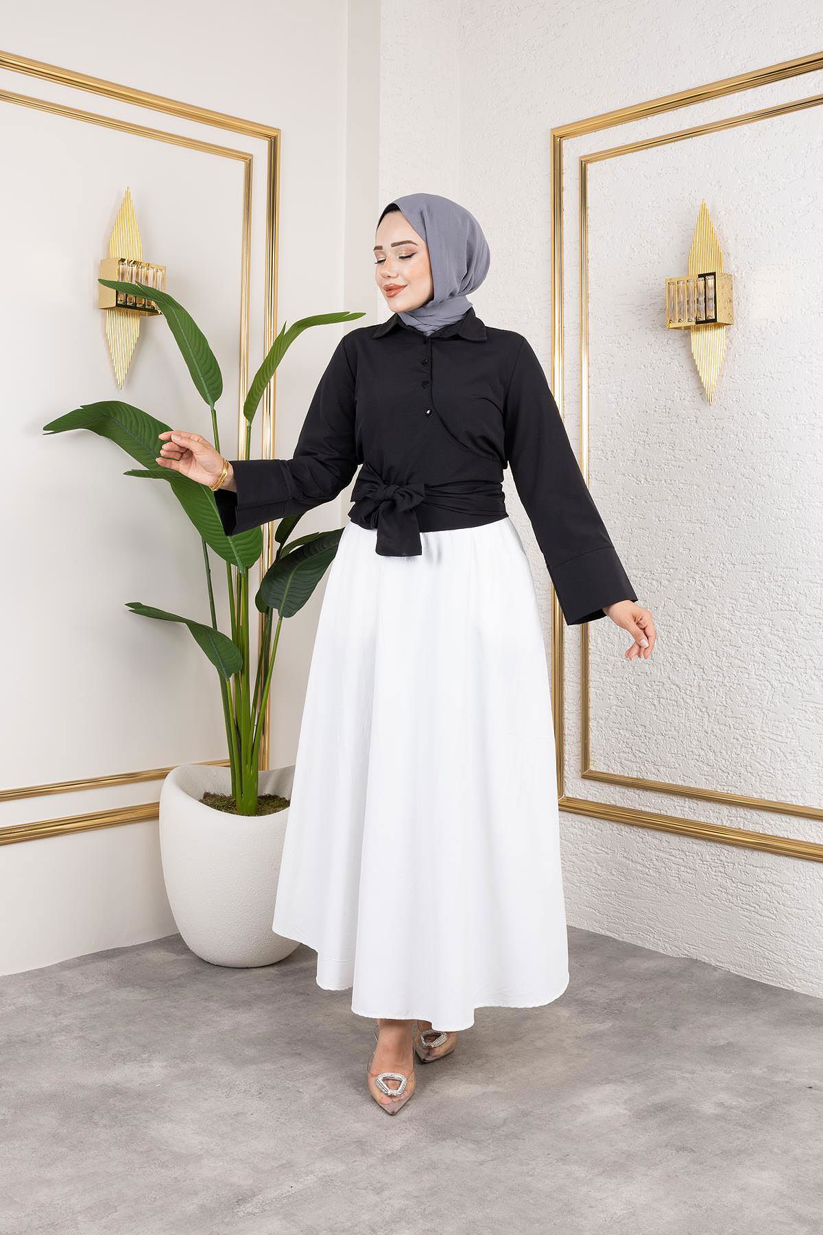 Kuşak Bağlamalı Gömlek-3040 Siyah