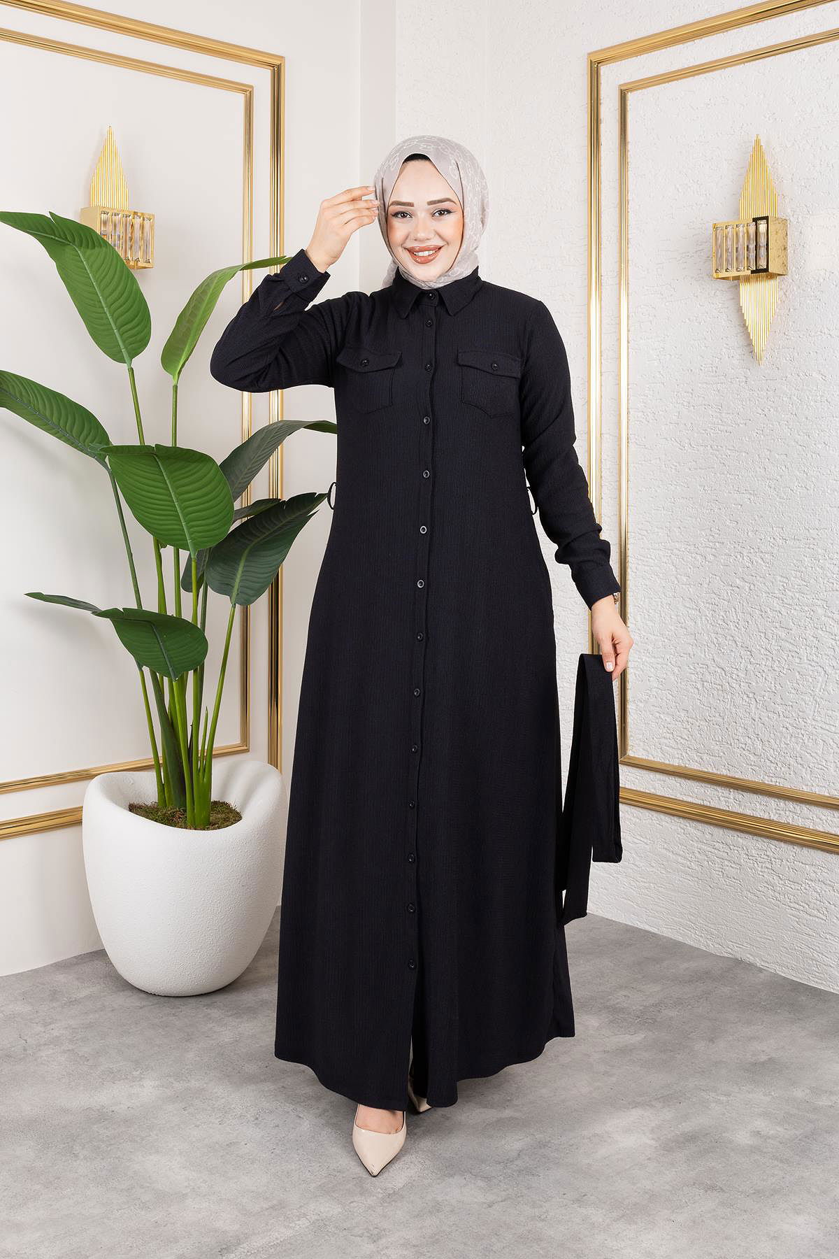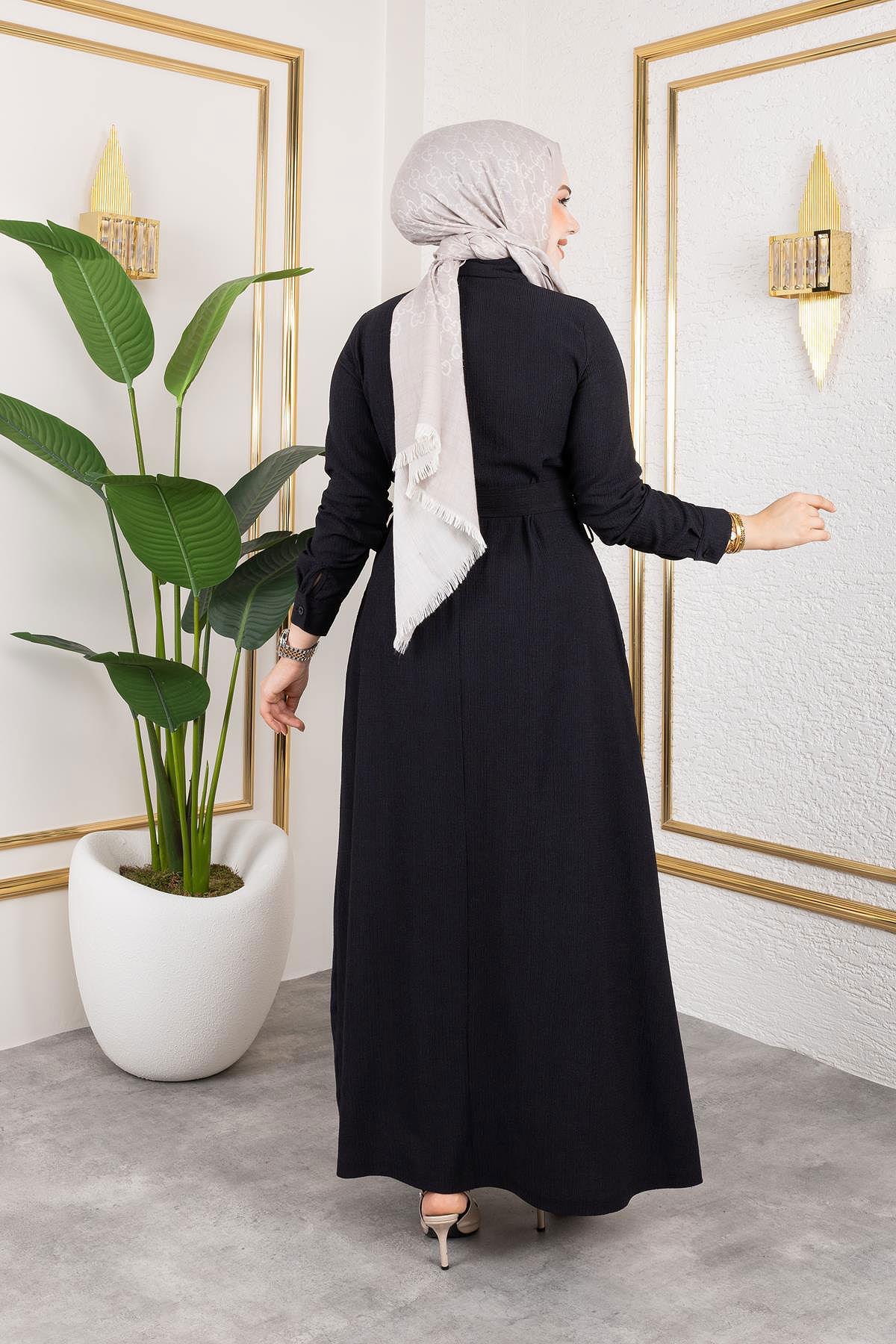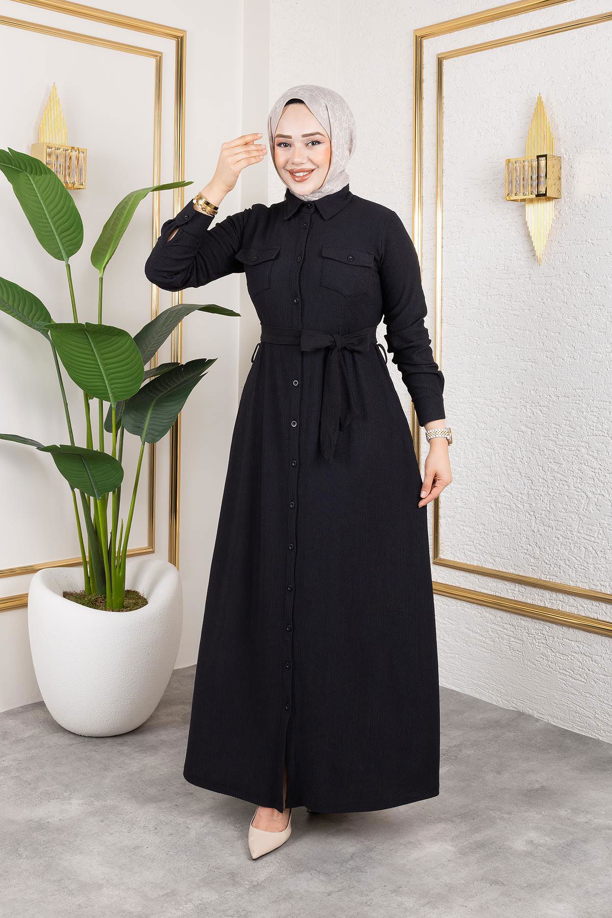 Ön Düğmeli Gizli Cep Detaylı Elbise-5029 Siyah