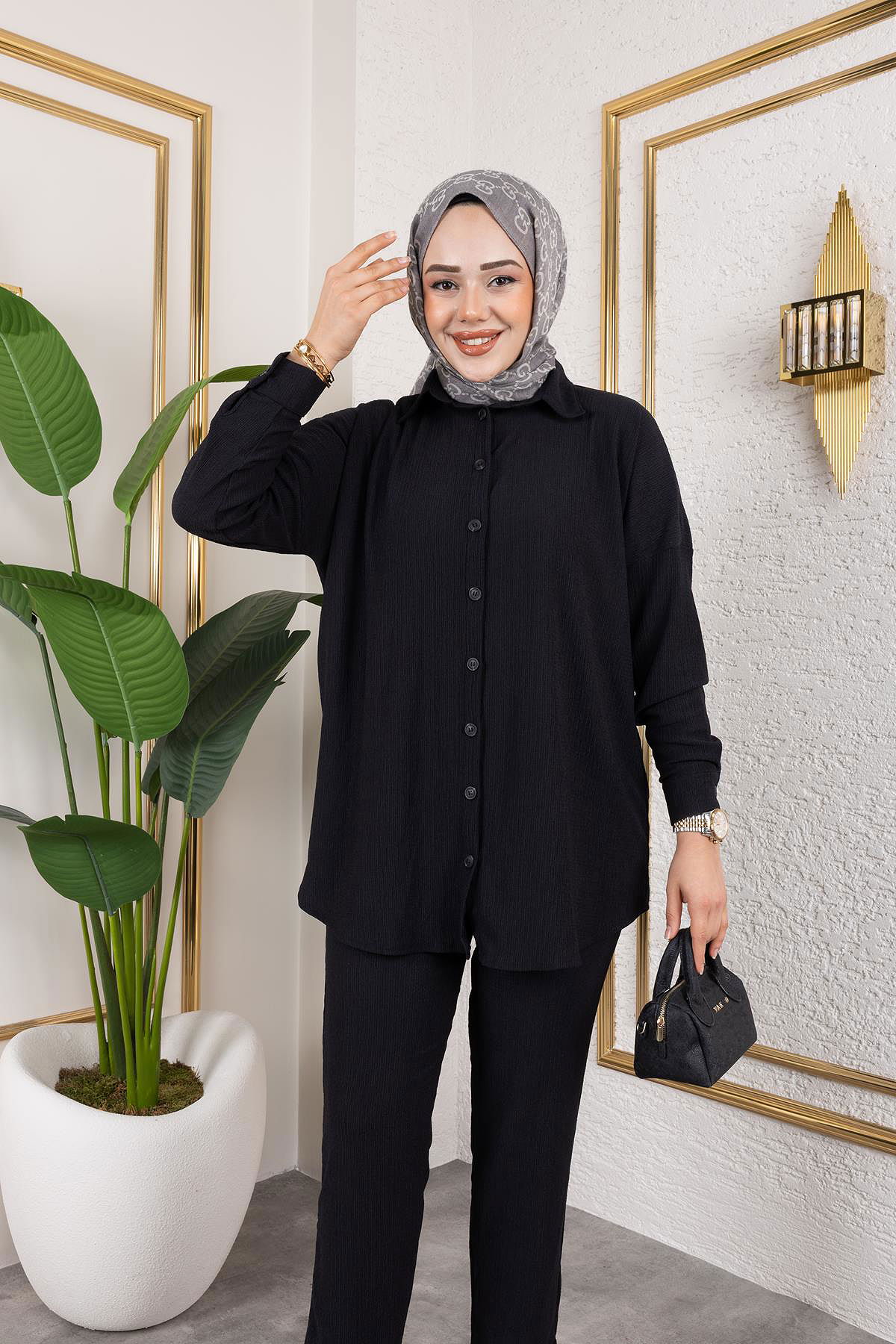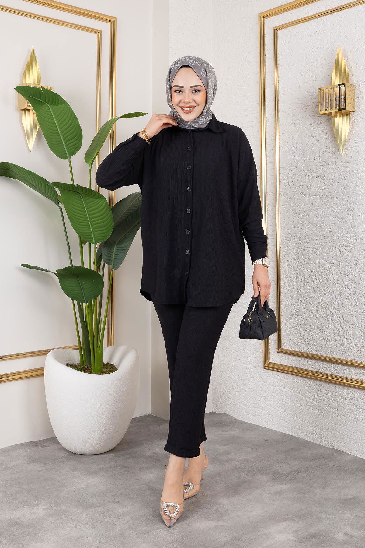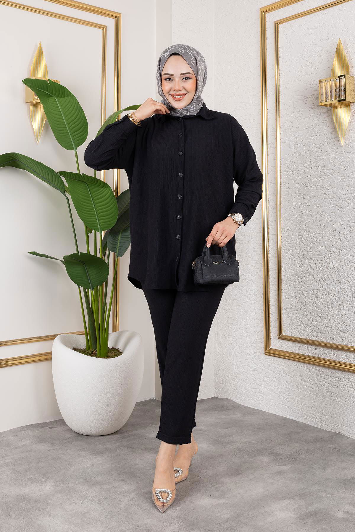 Ürün Özelliği : Yeni sezon tesettür moda ürünüdür.Öndeki düğmeler aktiftir.Pantolon beli lastiklidir.Ürün renginde konsept çekimlerinden dolayı ton farklılığı olabilir.
