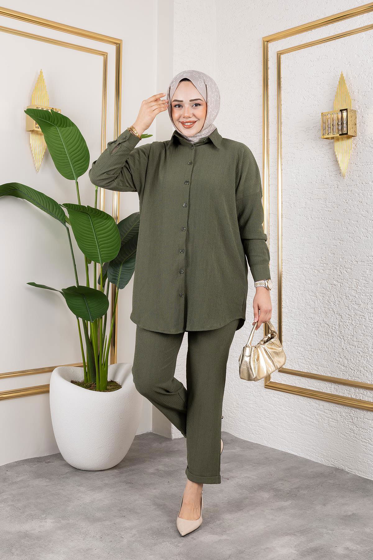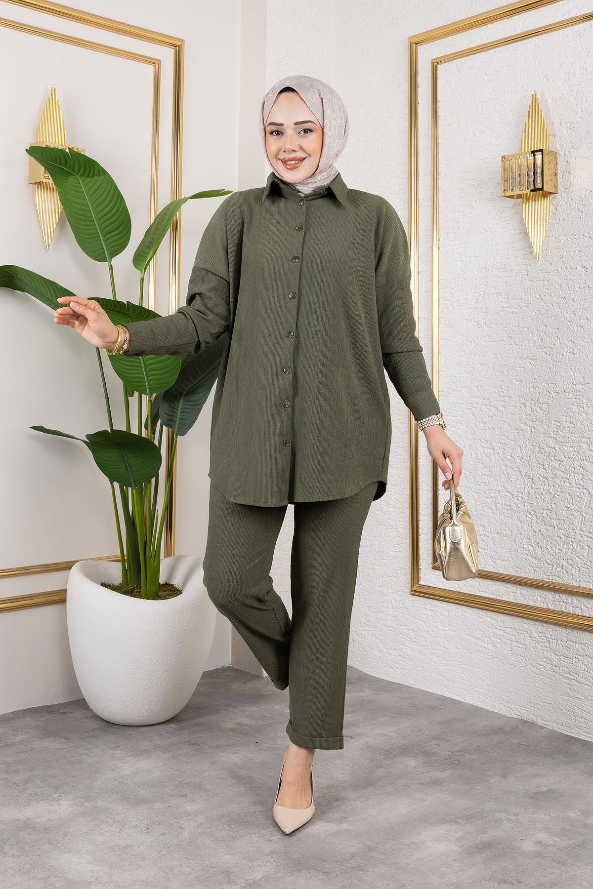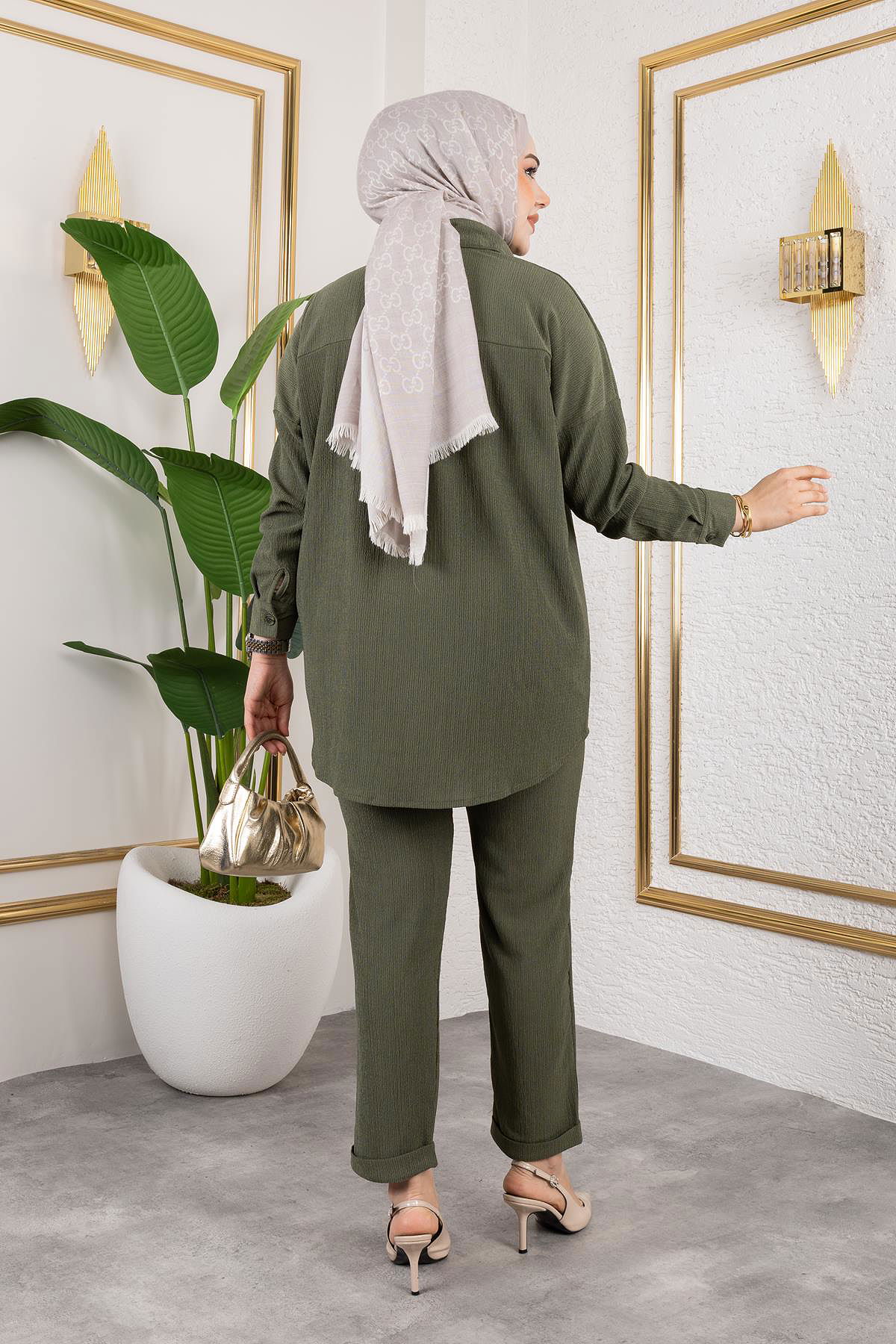 Önden Düğmeli İkili Takım-5027 Hakiyeşili