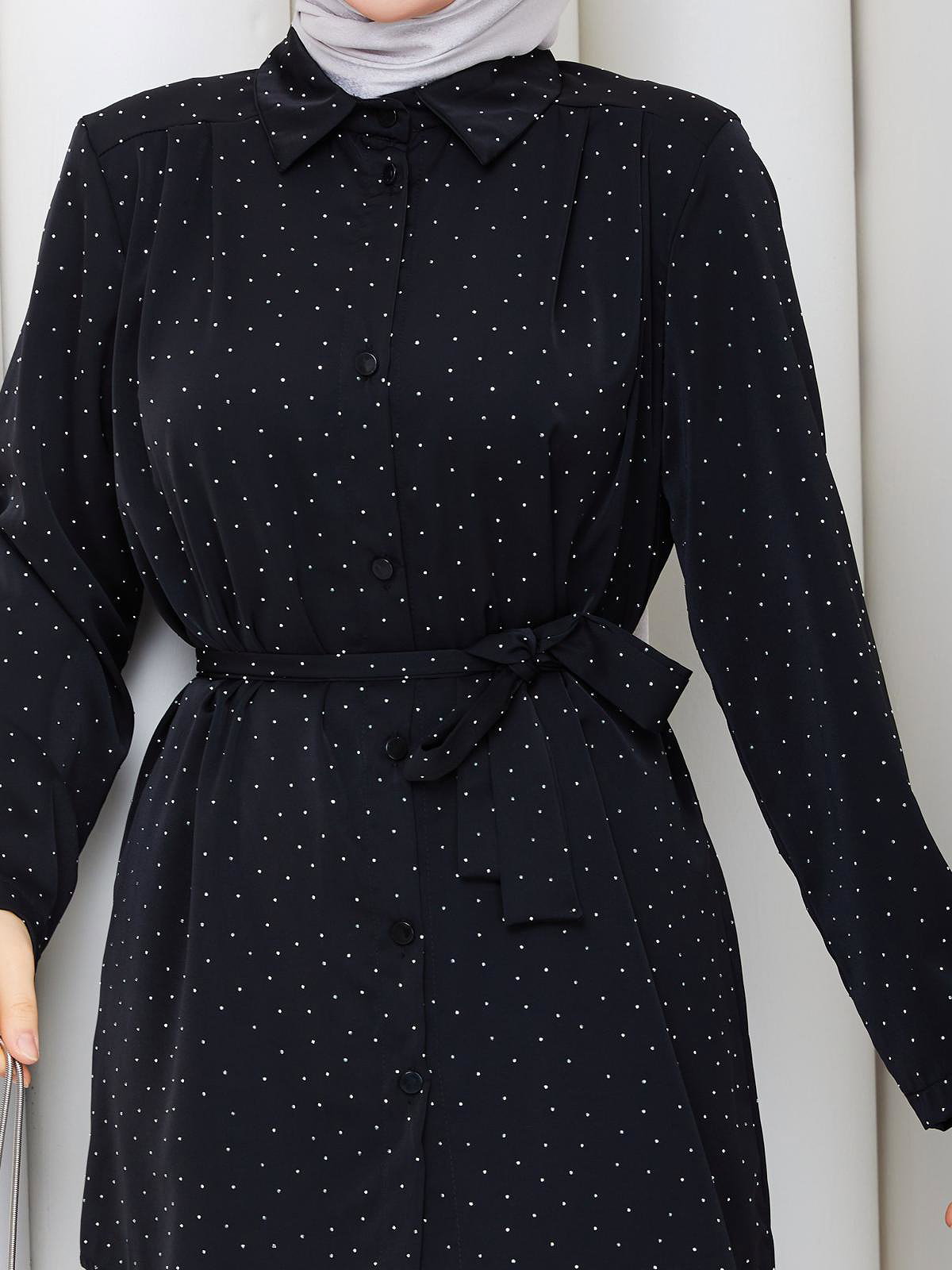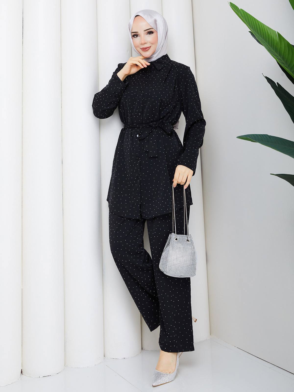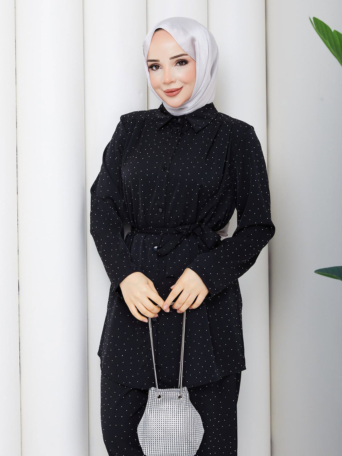 Önden Düğmeli Taşlı İkili Takım-5192 Siyah