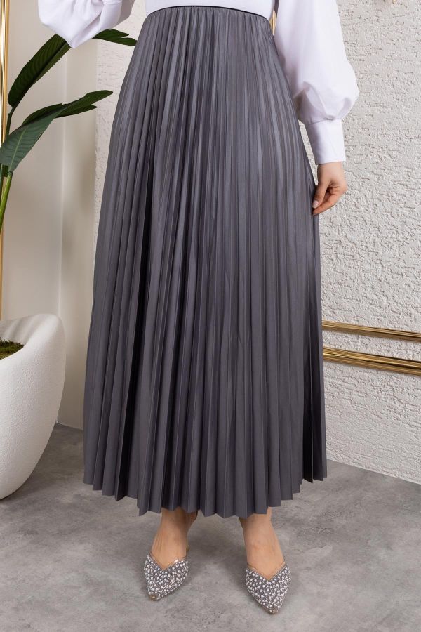 Pliseli Tesettür Etek-2034 Gri