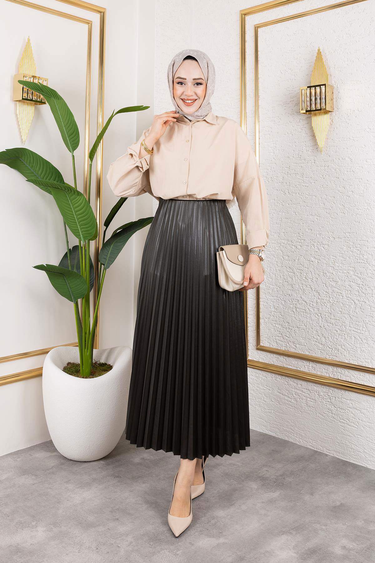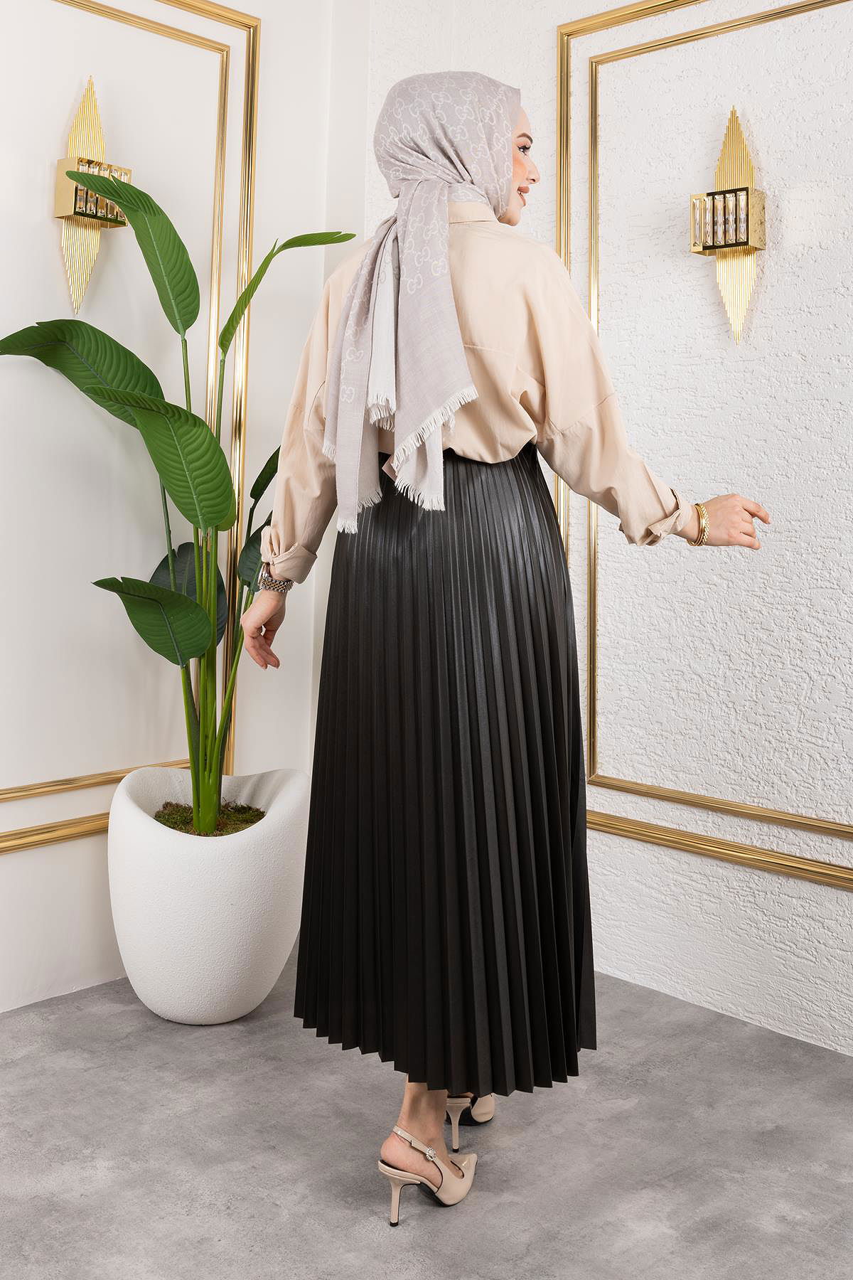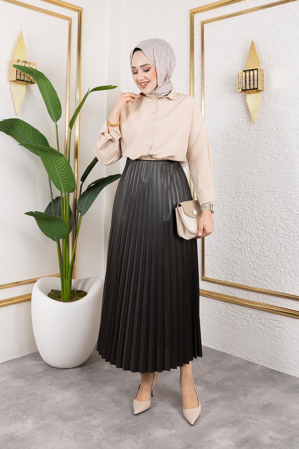 Pliseli Tesettür Etek-2034 Koyu hakiyeşil