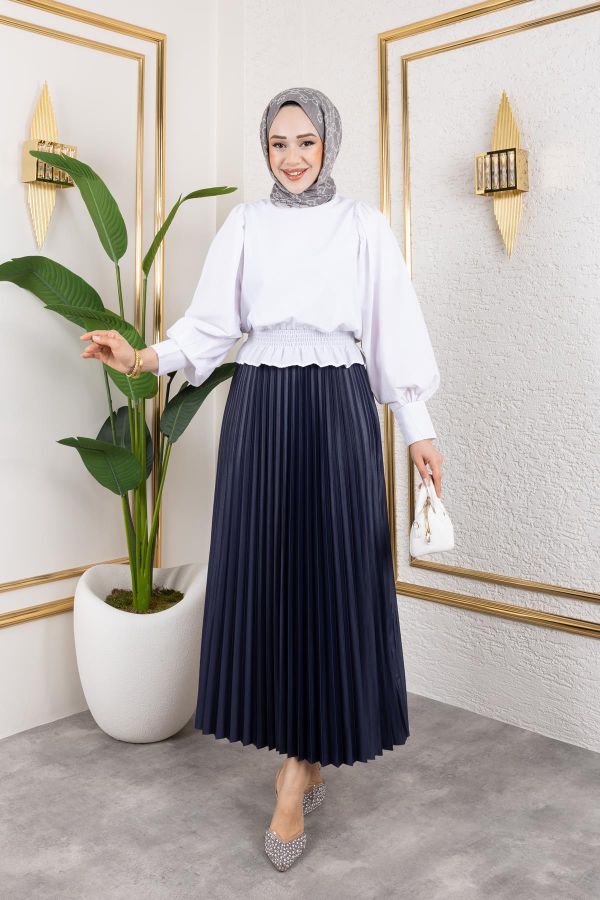 Pliseli Tesettür Etek-2034 Lacivert