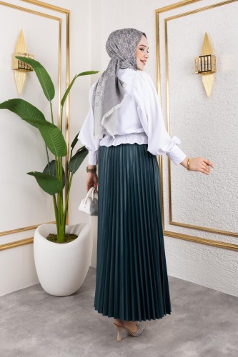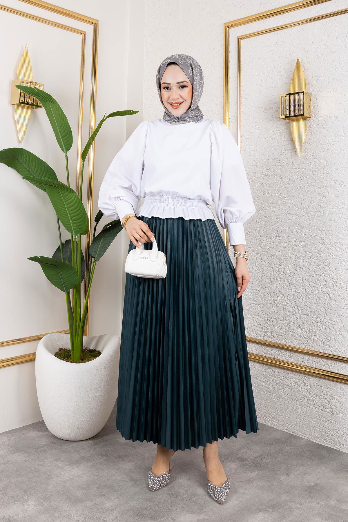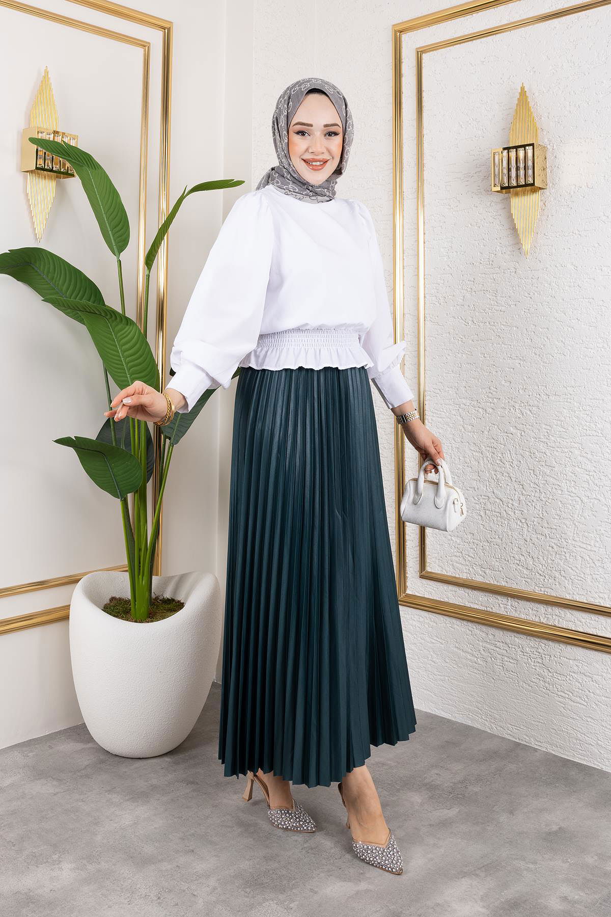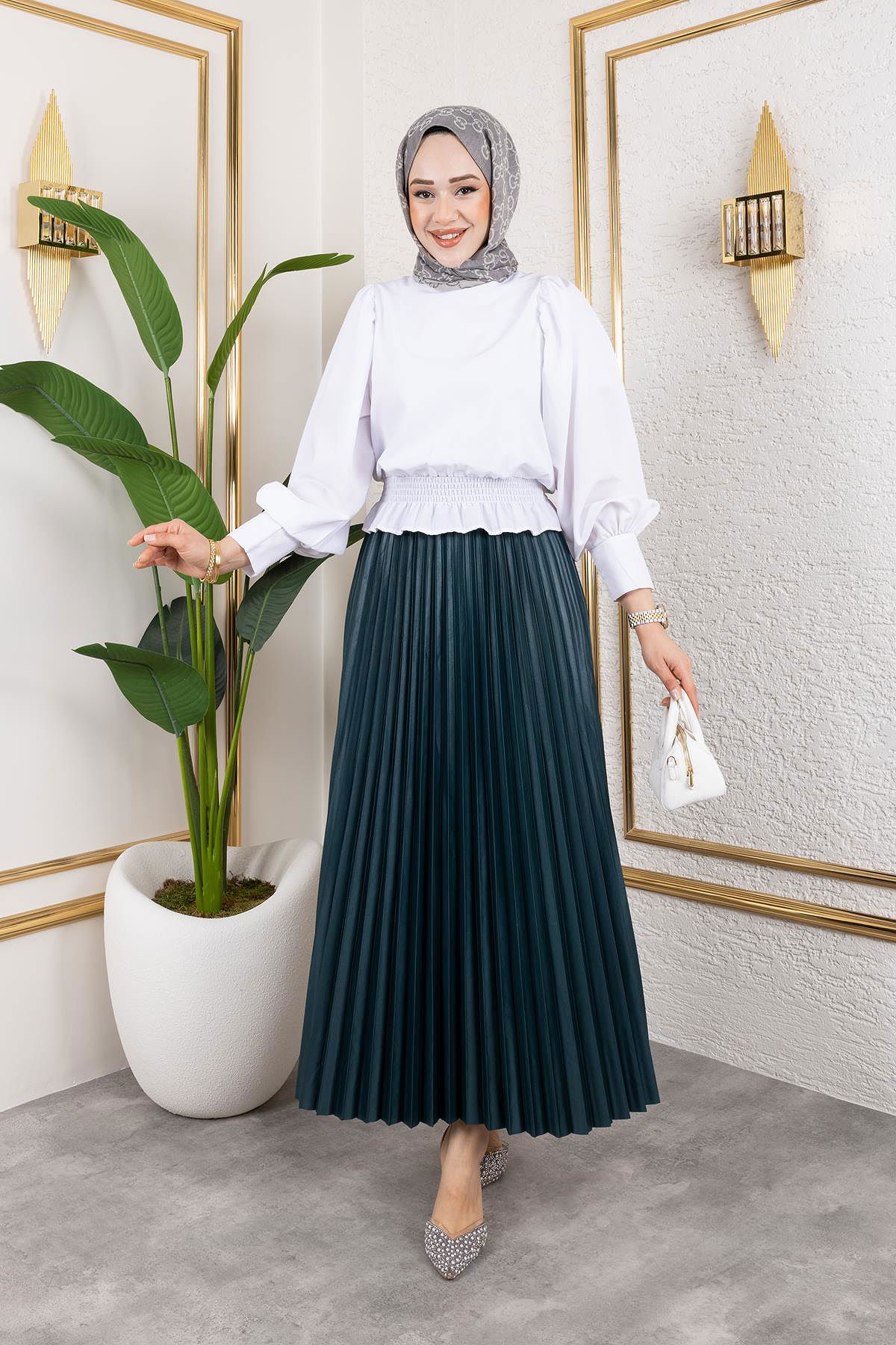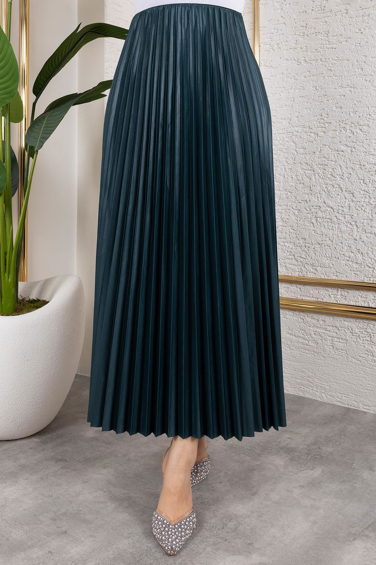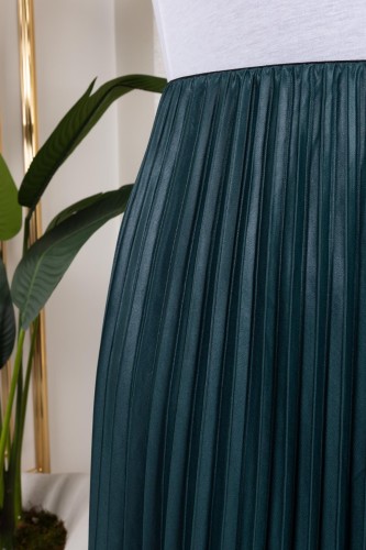 Pliseli Tesettür Etek-2034 Zümrüt yeşili