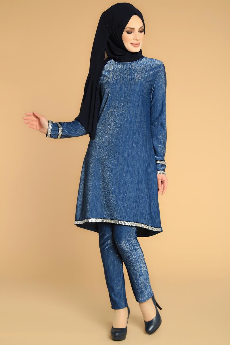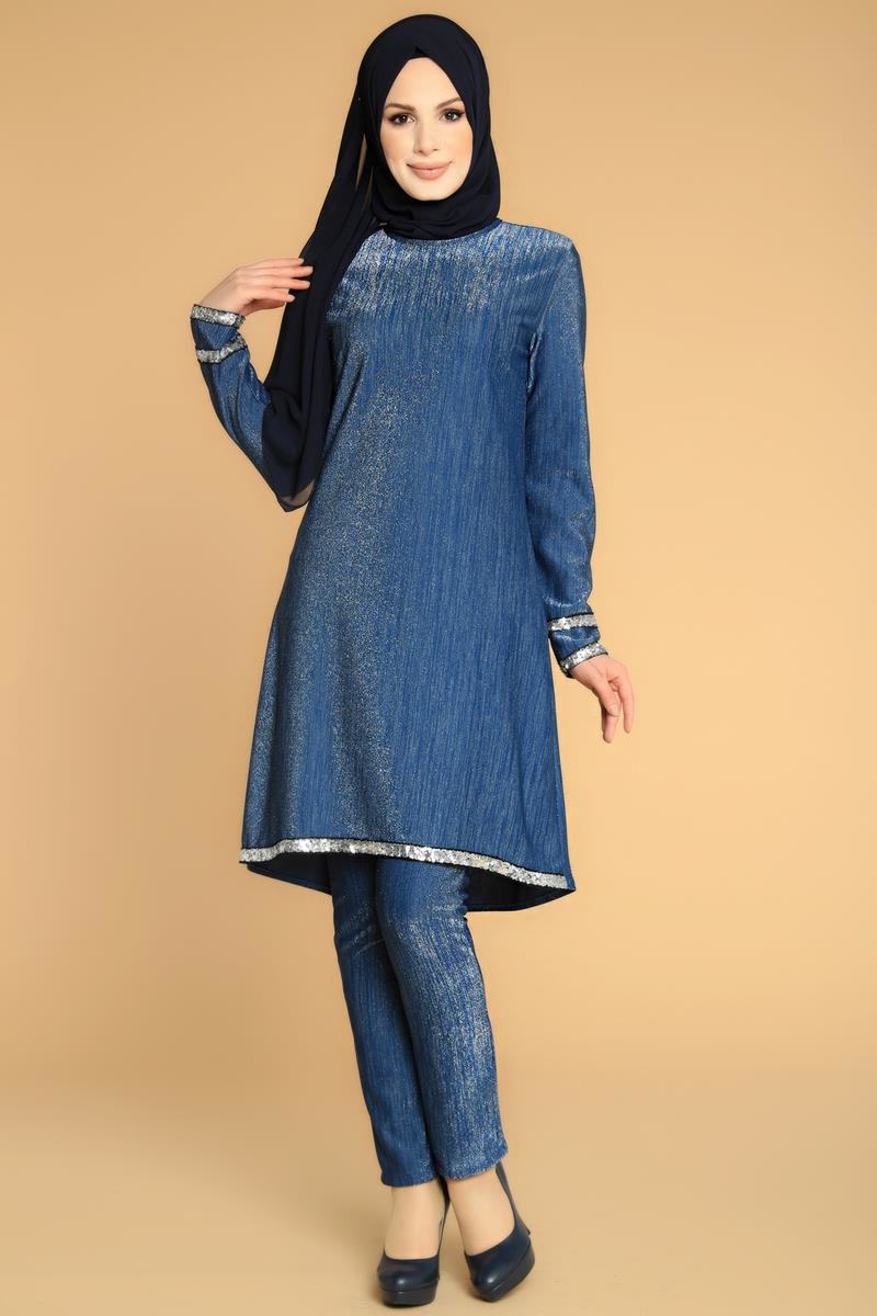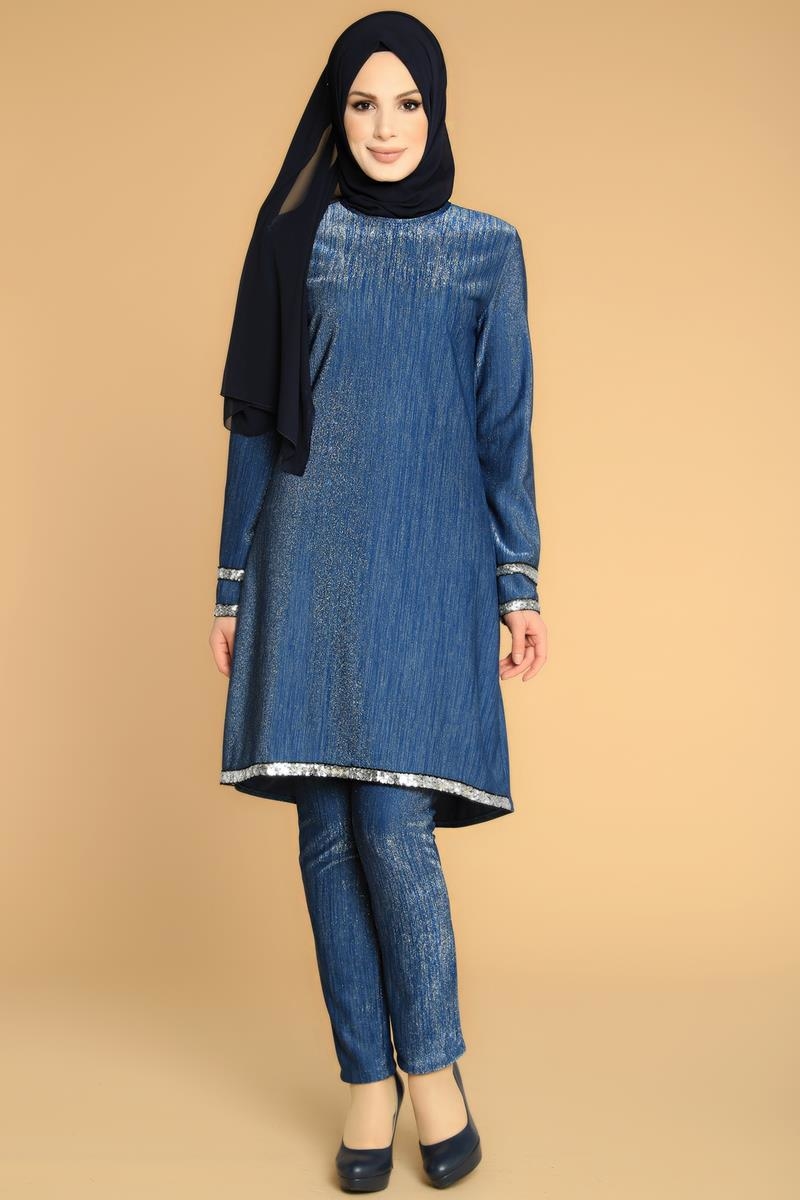 Ürün Özelliği : Yeni sezon tesettür moda ürünü olup astarsızdır. Sırttan kullanılabilir fermuarı bulunmaktadır. Tunik ucu ve kol manşetinde pul payet detaylar mevcuttur.Pantolon beli lastiklidir. Ürün renginde konsept çekimlerinden dolayı ton farklılığı olabilir.