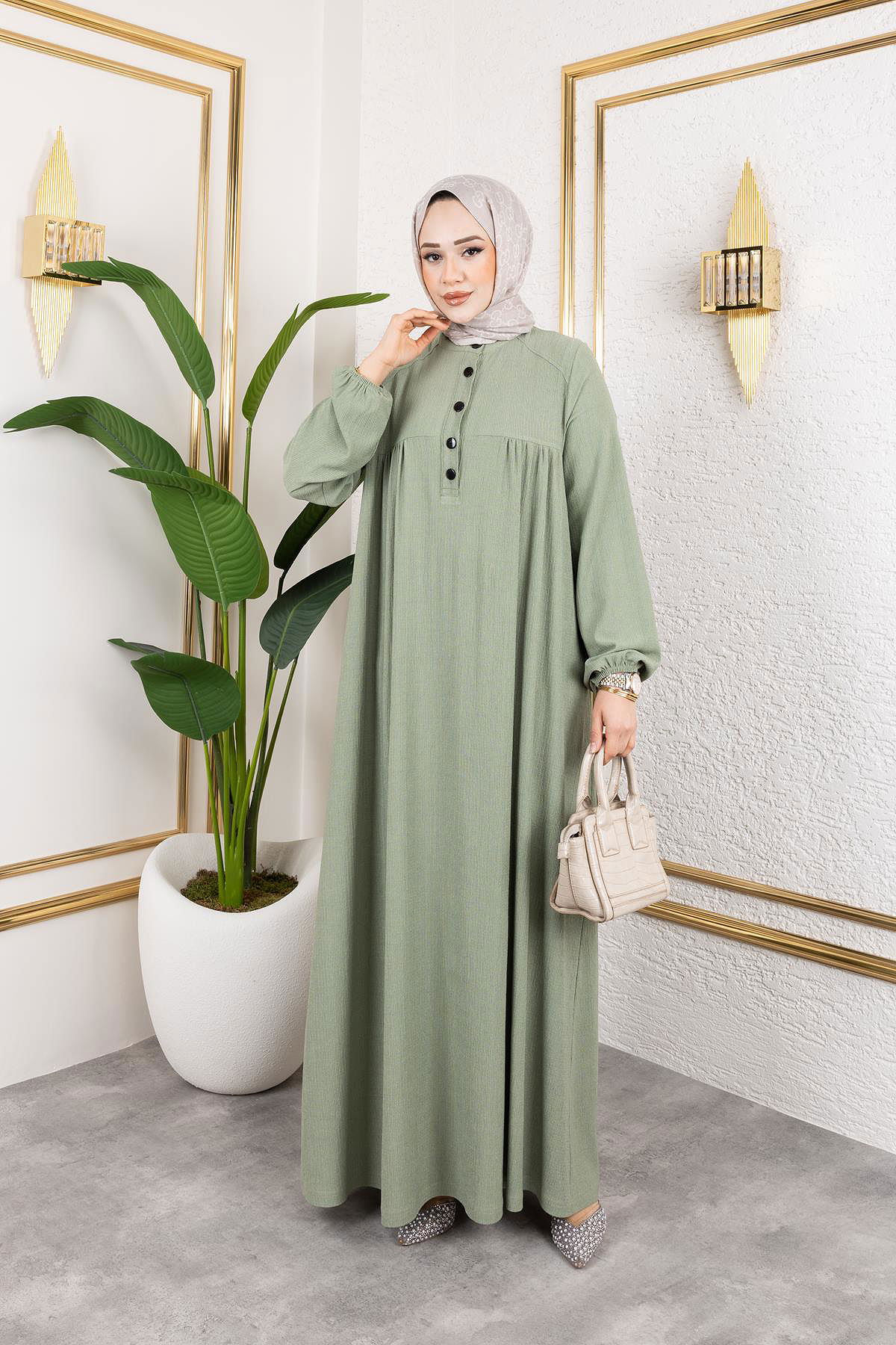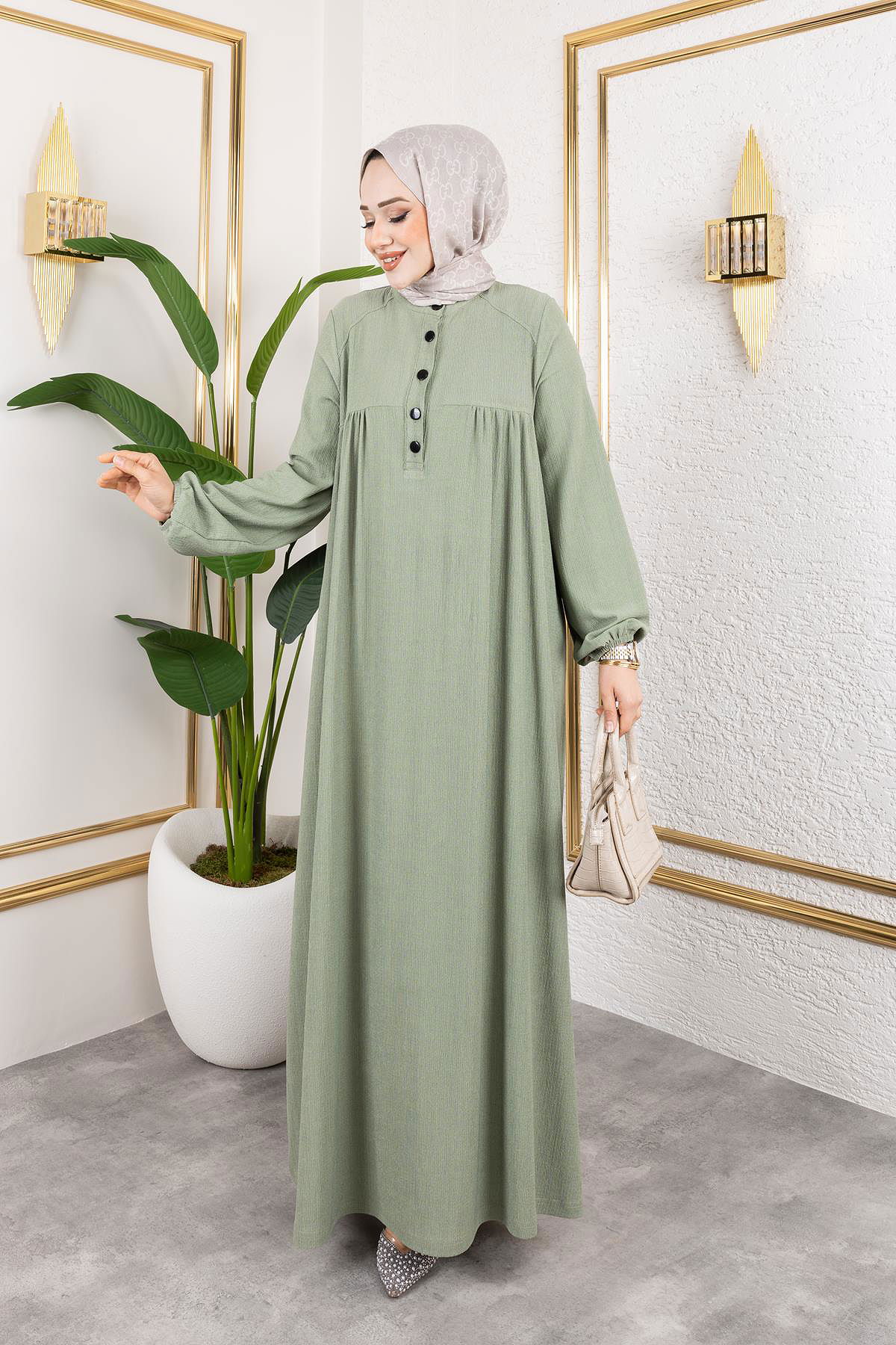 Robalı Tesettür Elbise-5023 Su yeşili